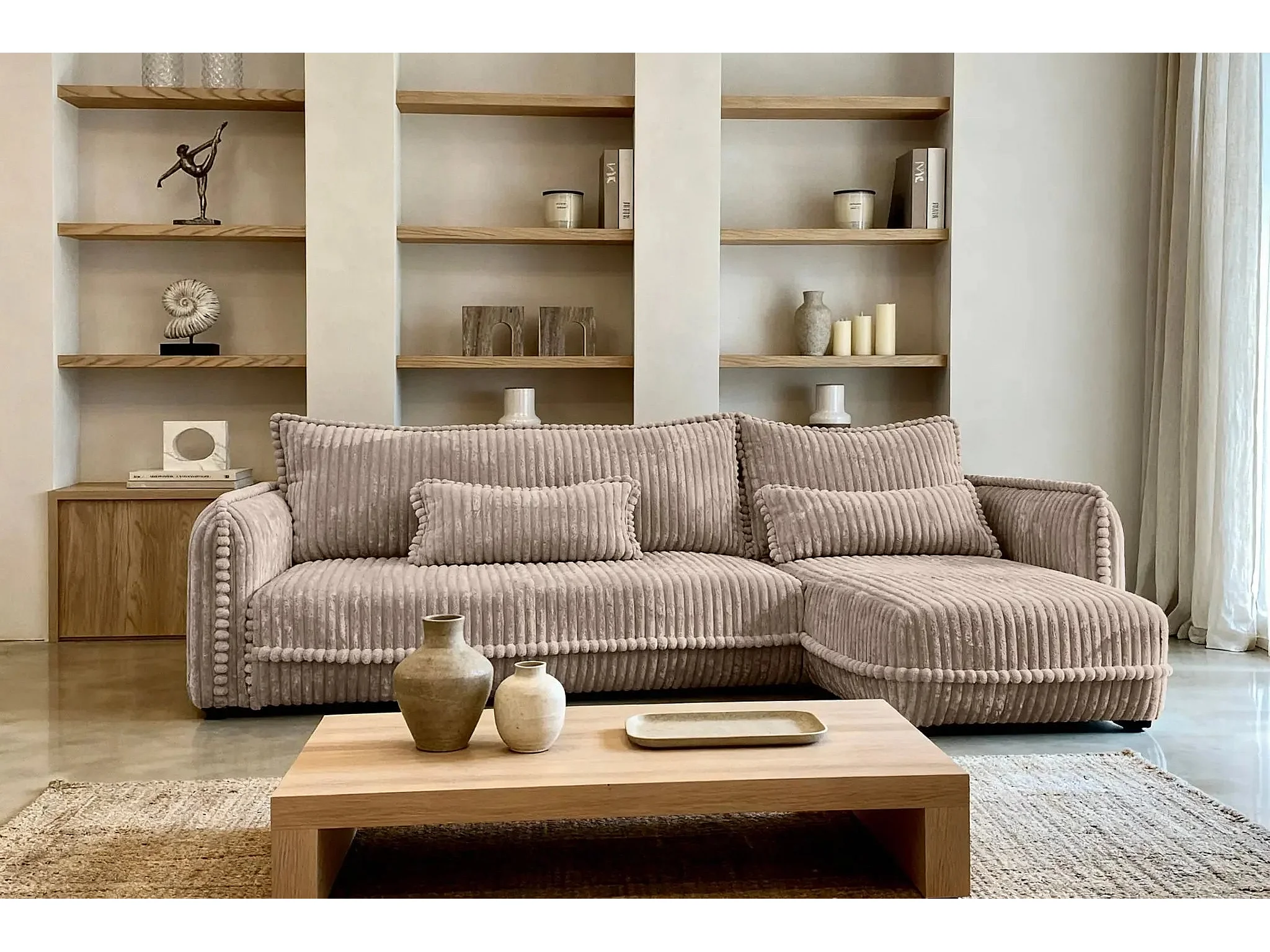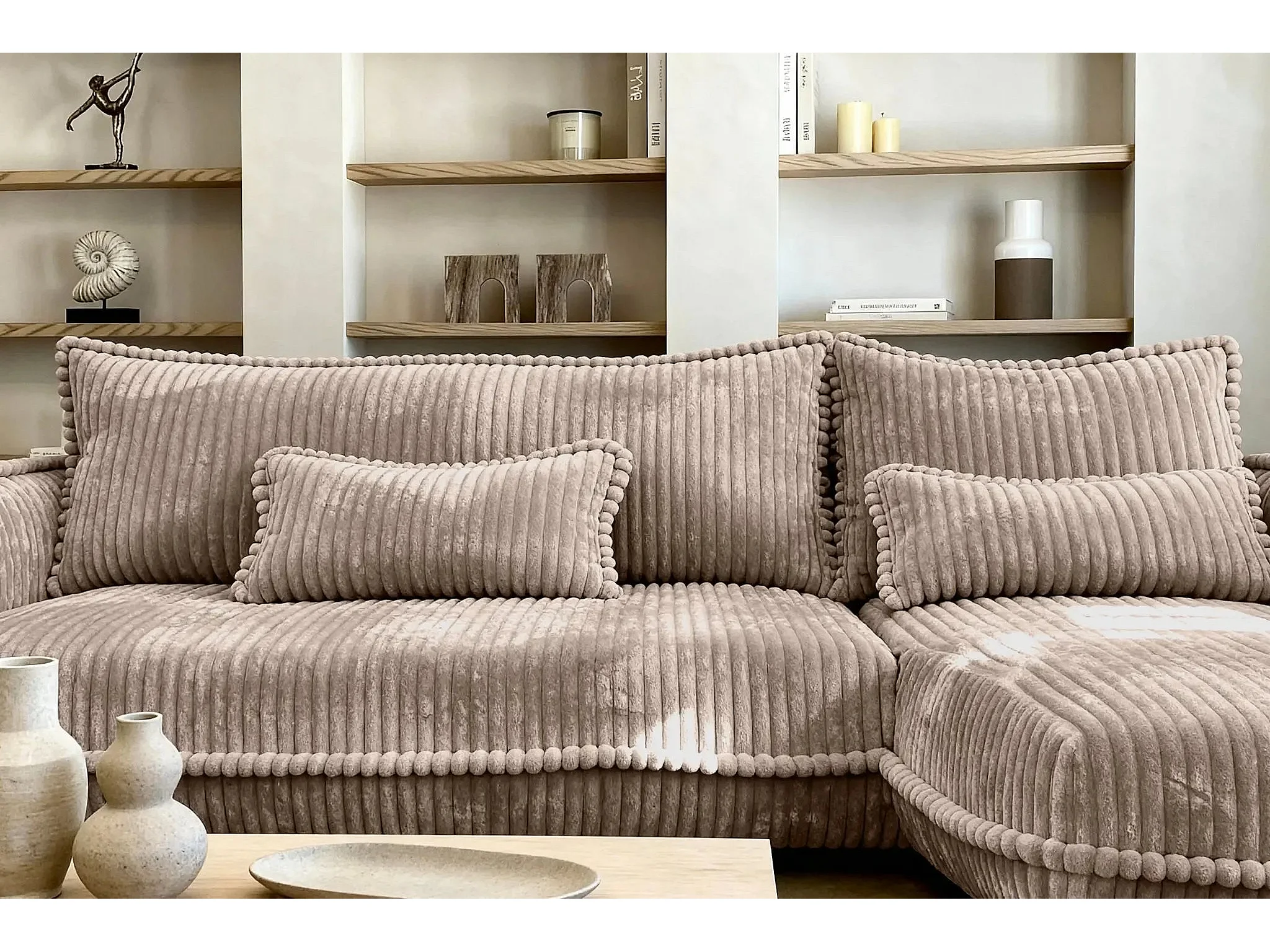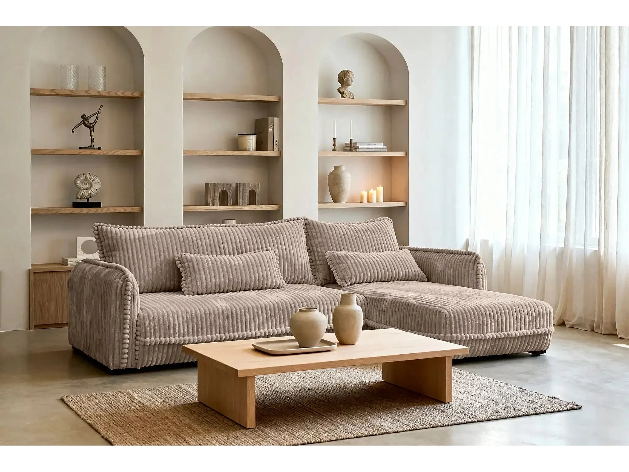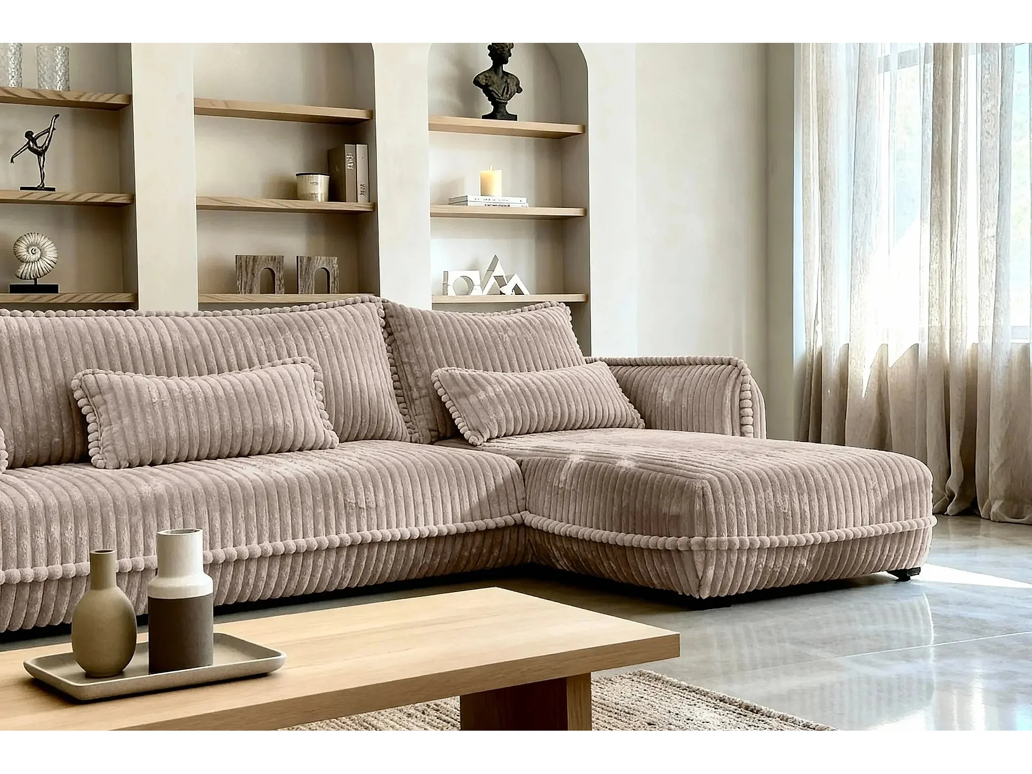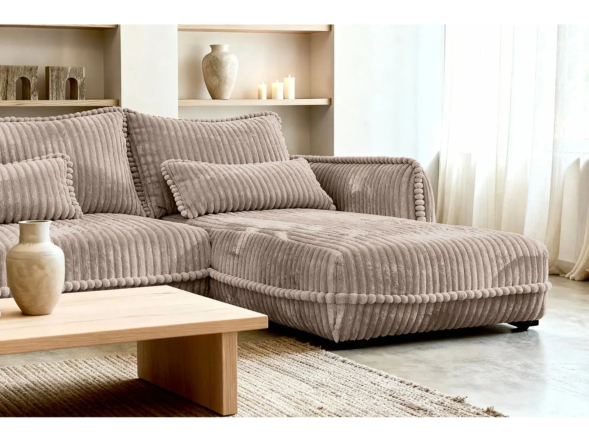 CALIE - Canapé d'angle velours côtelé 3 places - Café - Droit