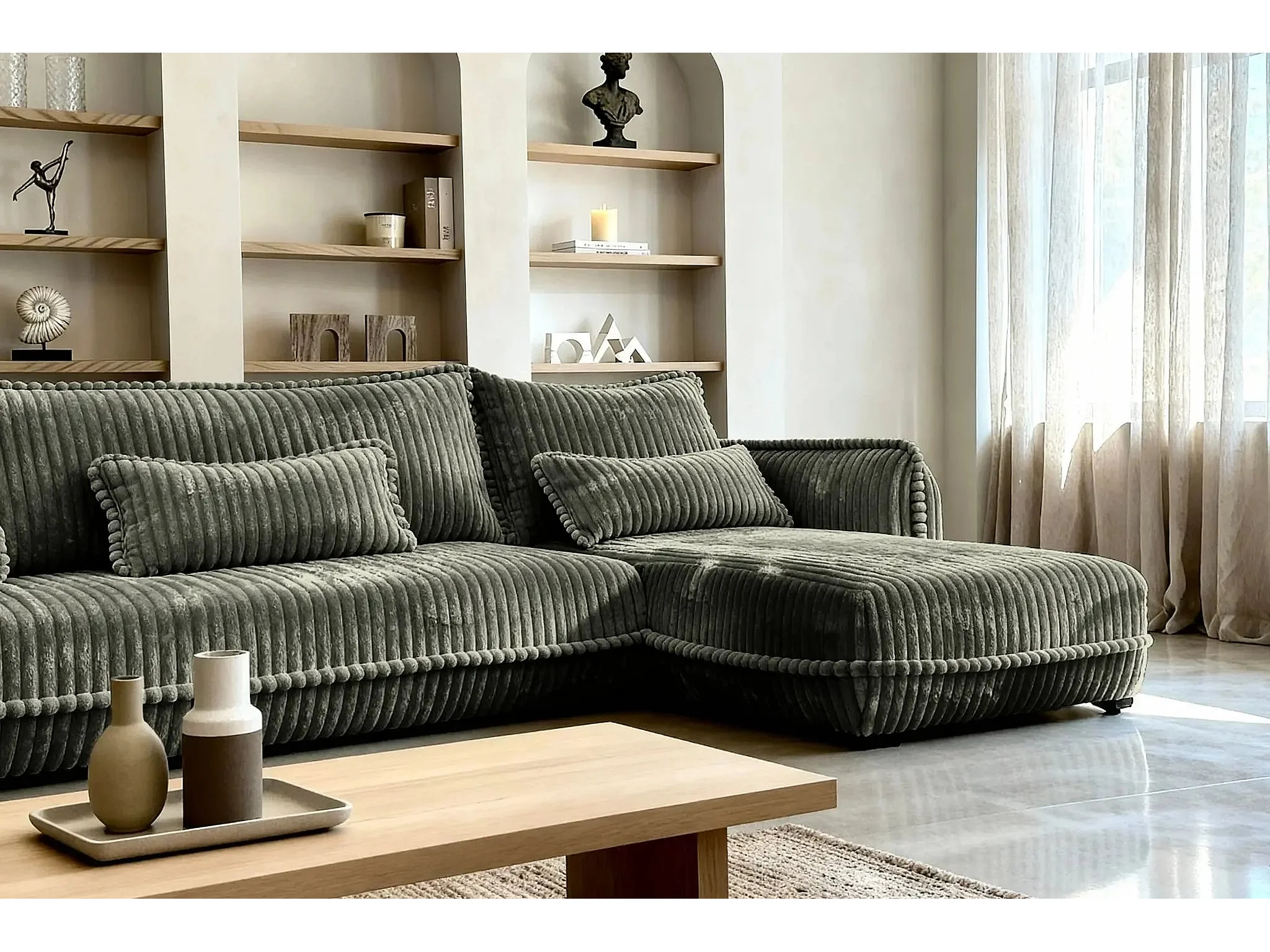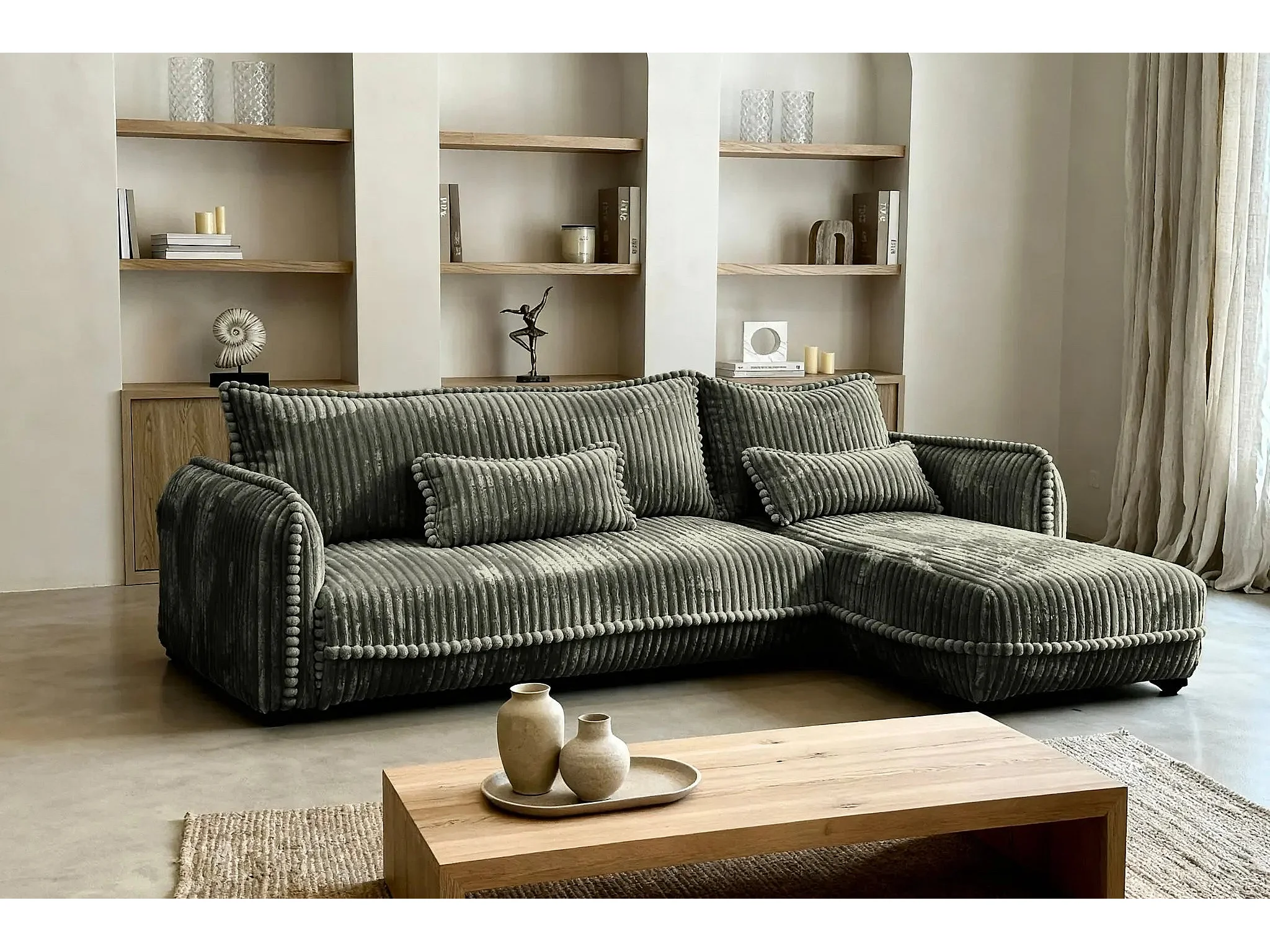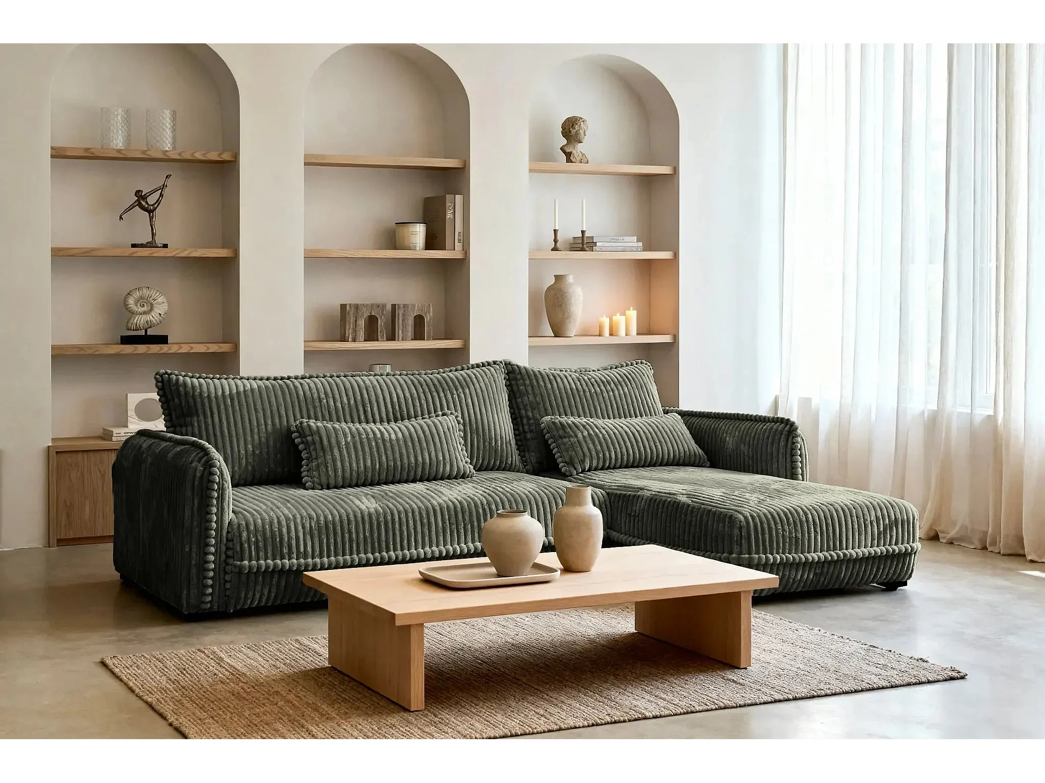 CALIE - Canapé d'angle velours côtelé 3 places - Vert - Droit