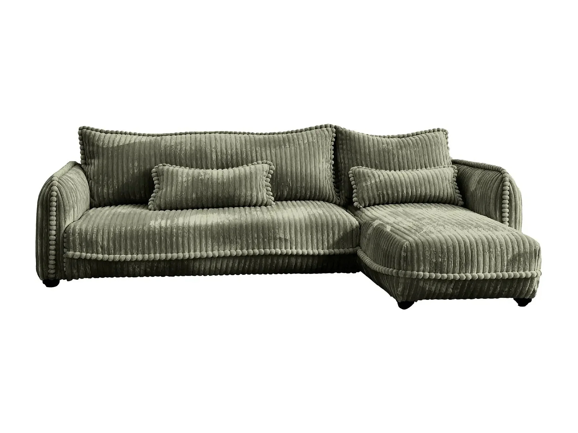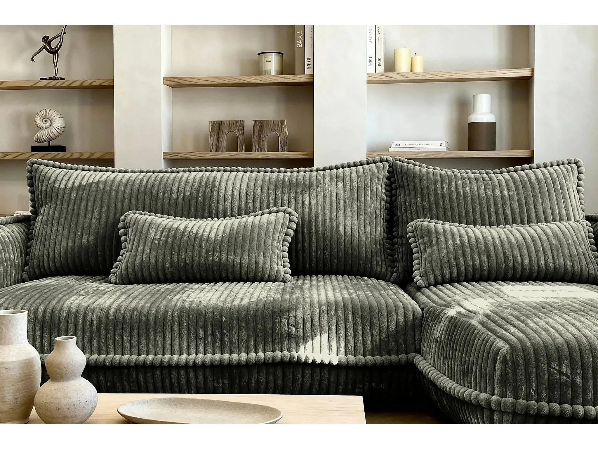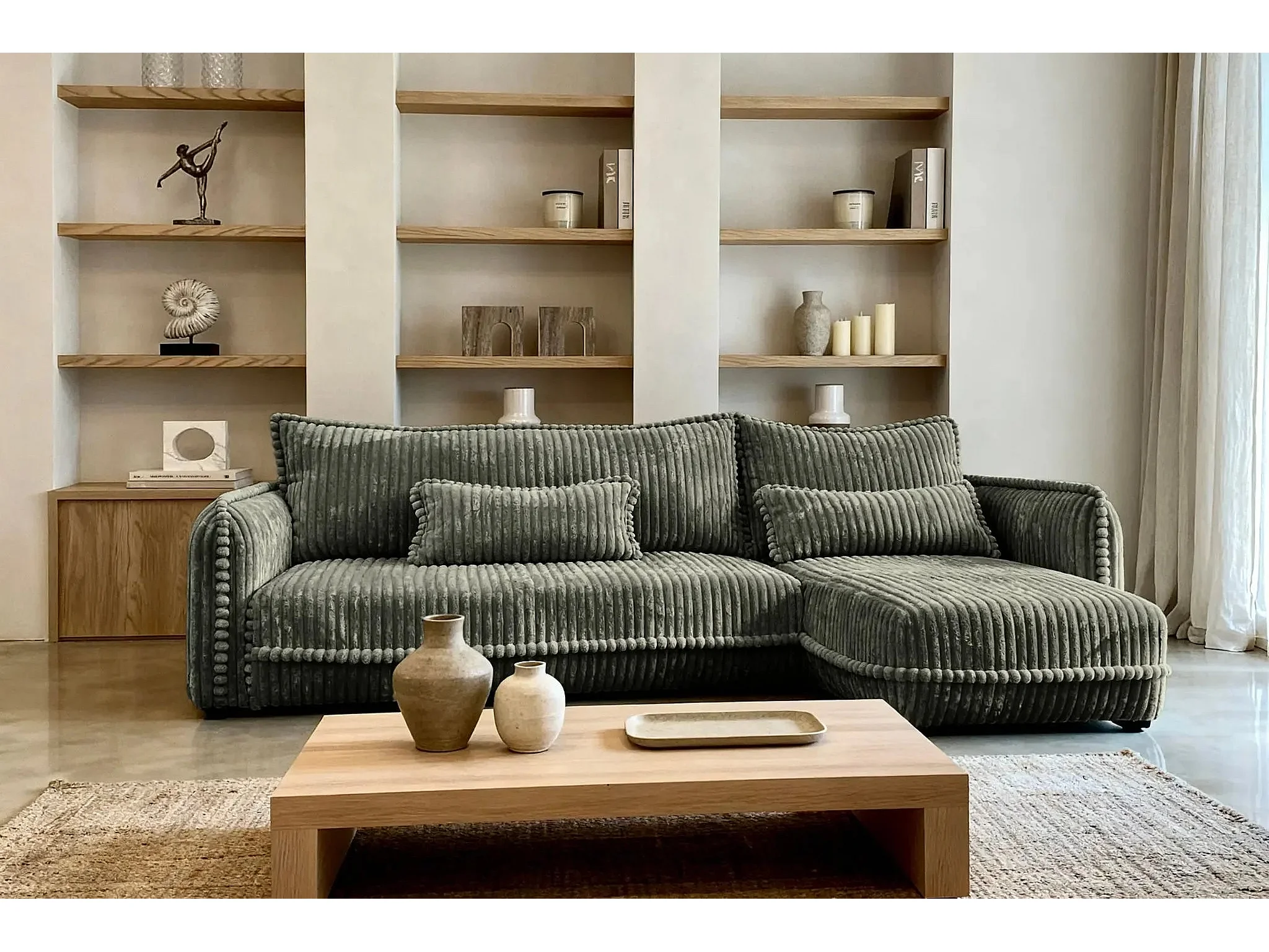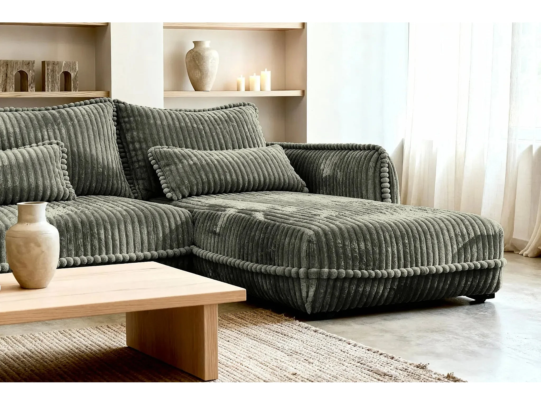 CALIE - Canapé d'angle velours côtelé 3 places - Vert - Gauche