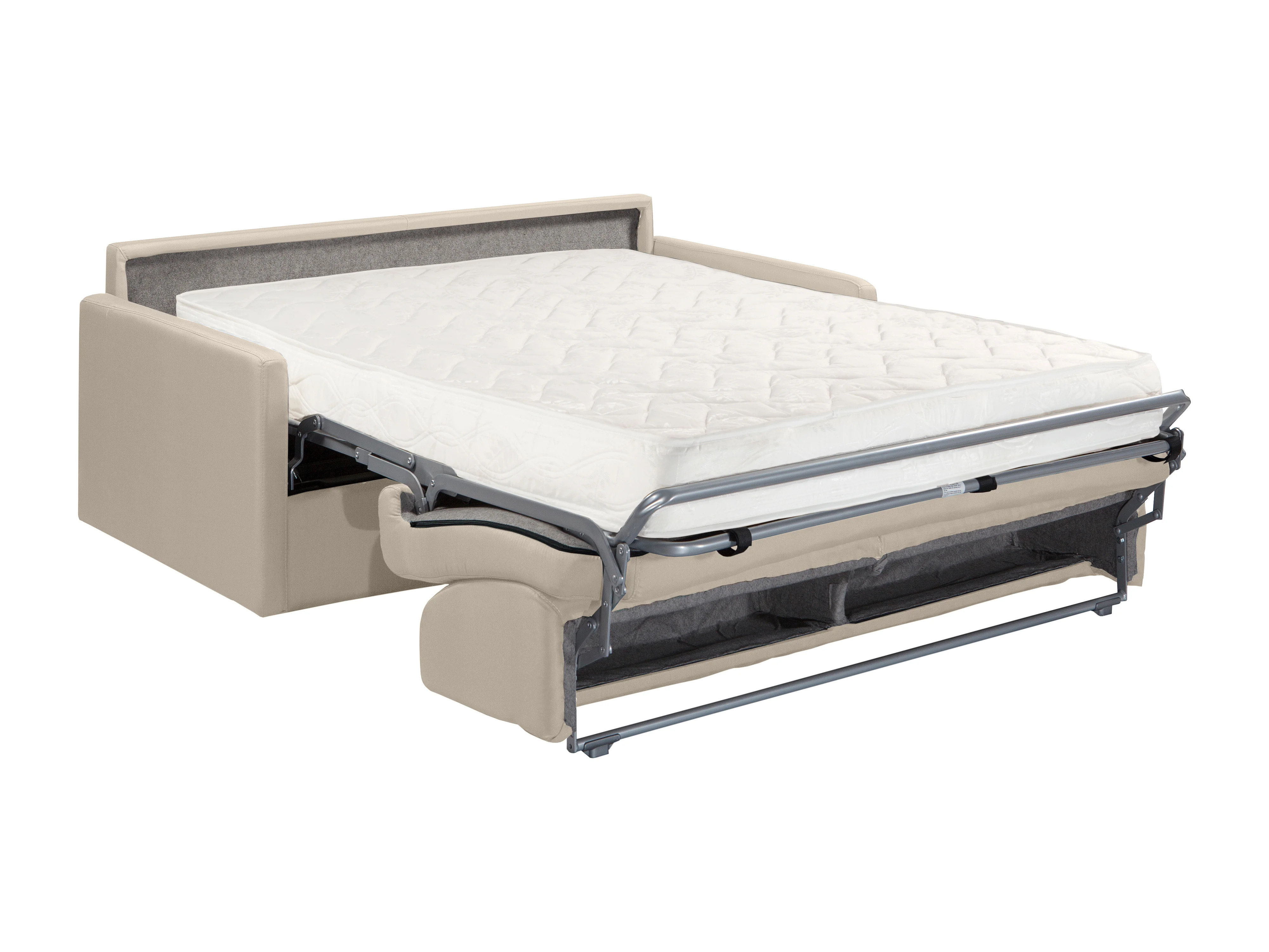 Canapé 2 places convertible express en tissu beige avec assise mémoire de forme - Couchage 120 cm - Matelas 18 cm CALIFE