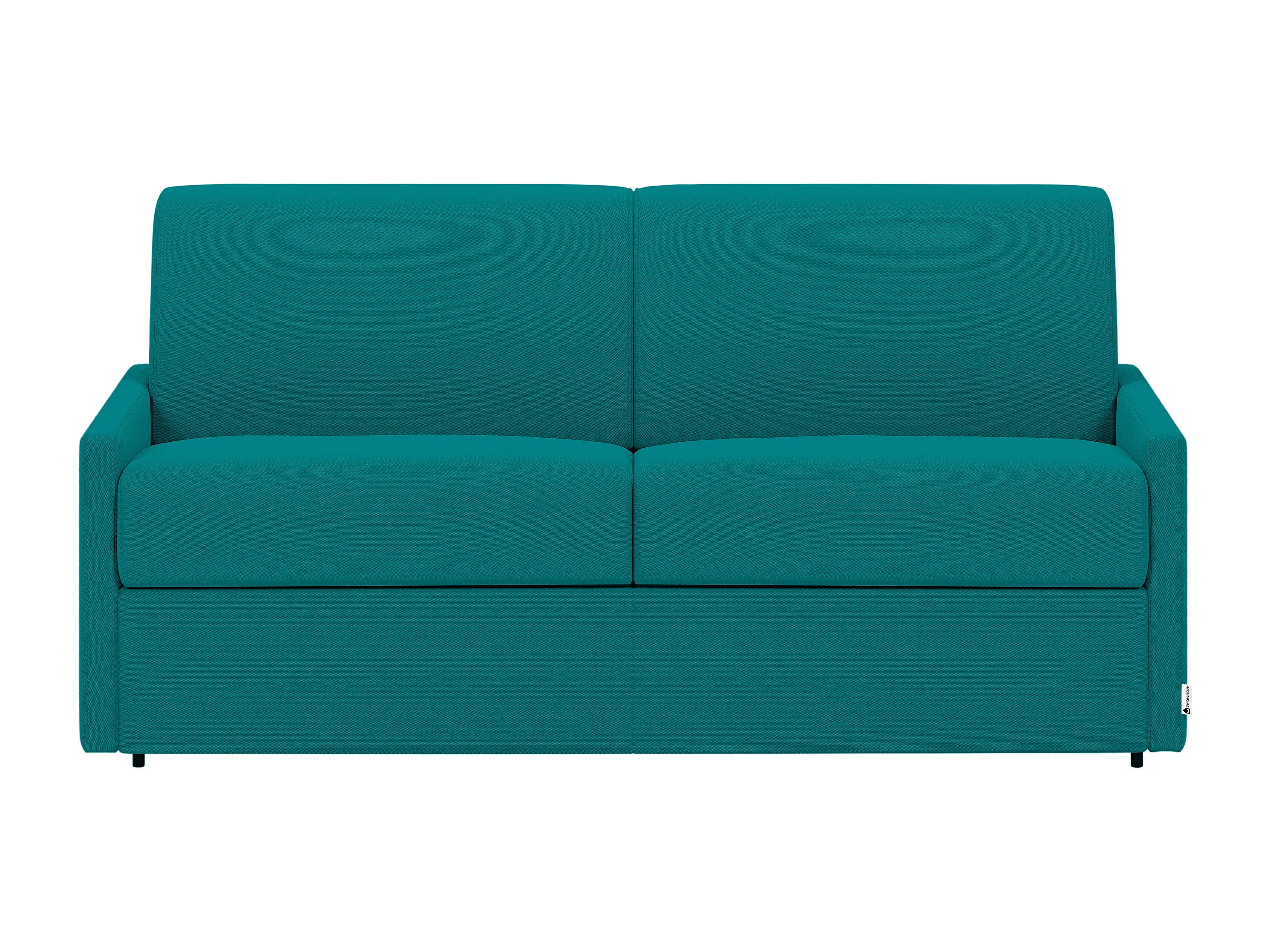 Canapé 2 places convertible express en tissu bleu turquoise avec assise mémoire de forme - Couchage 120 cm - Matelas 22 cm mémoire de forme CALIFE