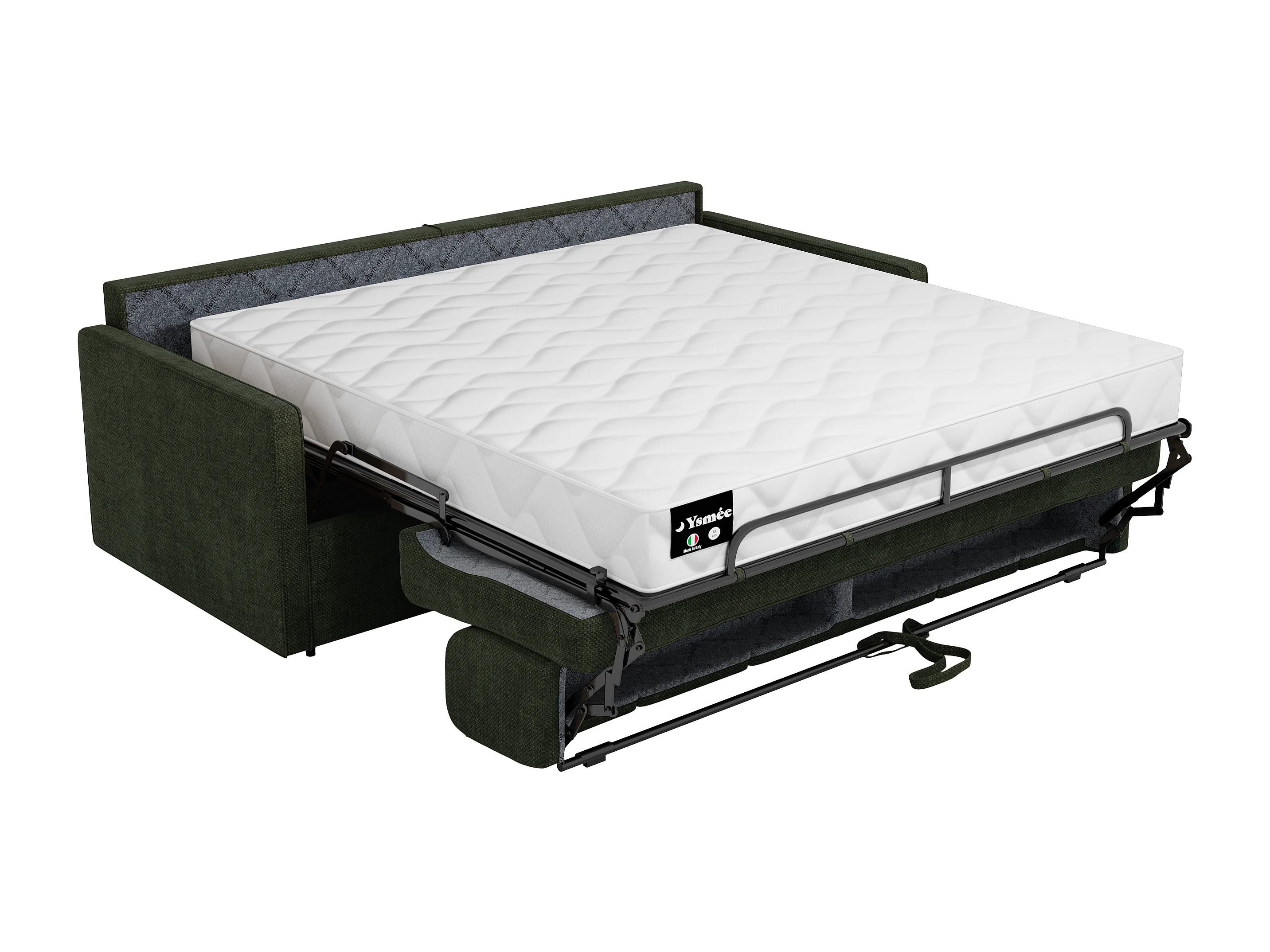 Canapé 2 places convertible express en tissu vert sapin - Couchage à lattes larges 120 cm - Matelas 18 cm CALIFE