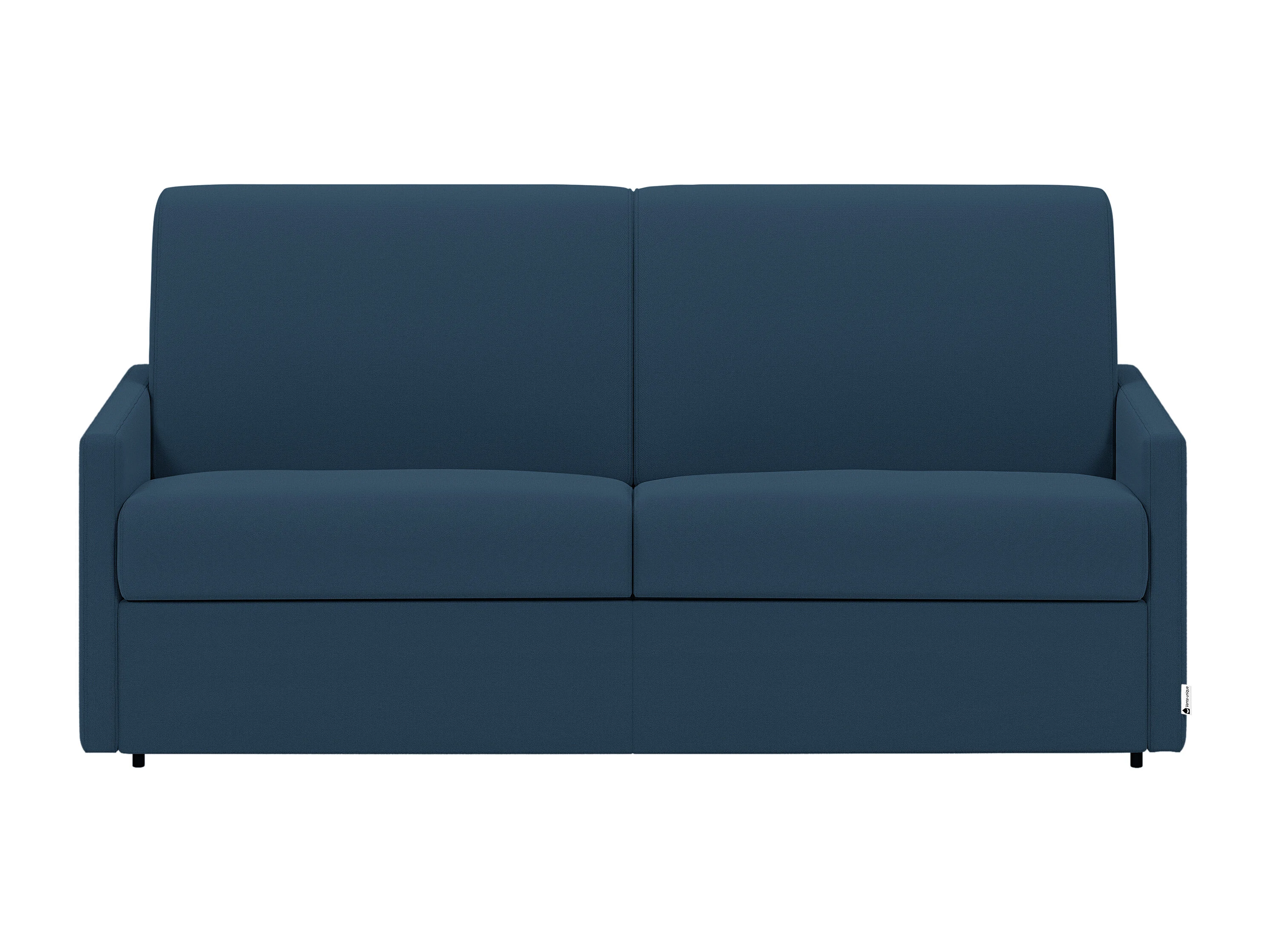 Canapé 3 places convertible express en tissu bleu nuit avec assise mémoire de forme - Couchage à lattes larges 140 cm - Matelas 18 cm CALIFE