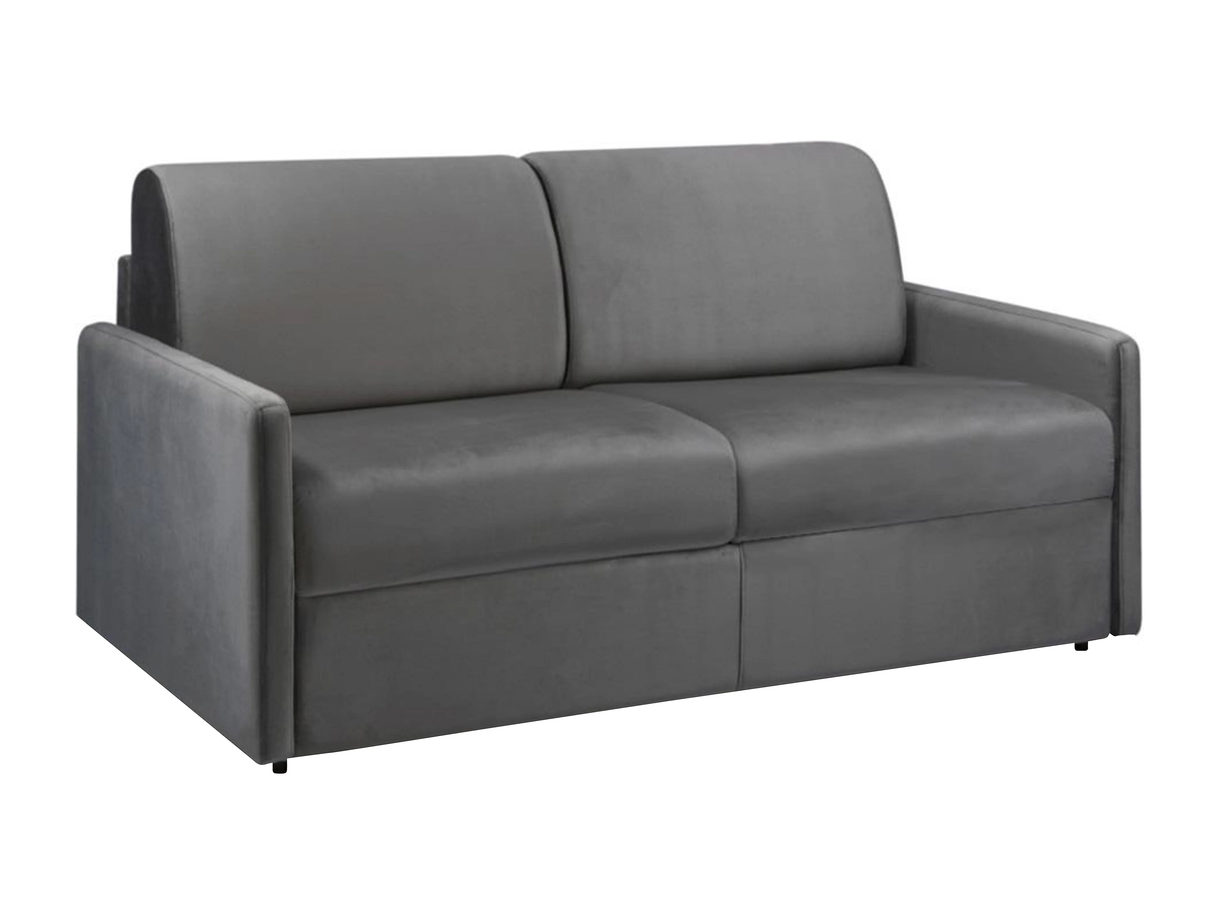 Canapé 3 places convertible express en velours gris anthracite avec assise mémoire de forme - Couchage à lattes larges 140 cm - Matelas 14 cm CALIFE