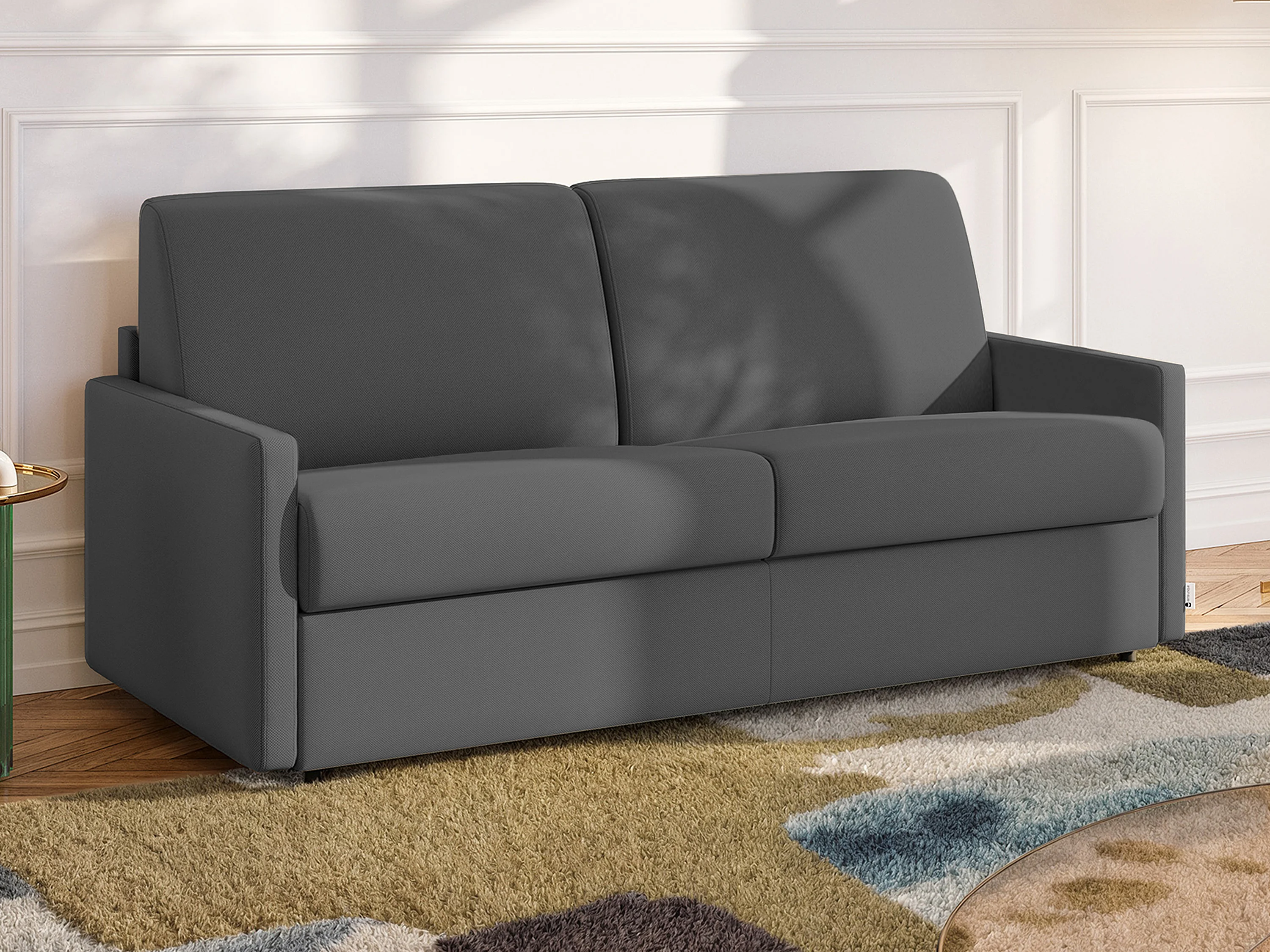 Canapé 4 places convertible express en tissu gris avec assise mémoire de forme - Couchage à lattes larges 160 cm - Matelas 14 cm CALIFE