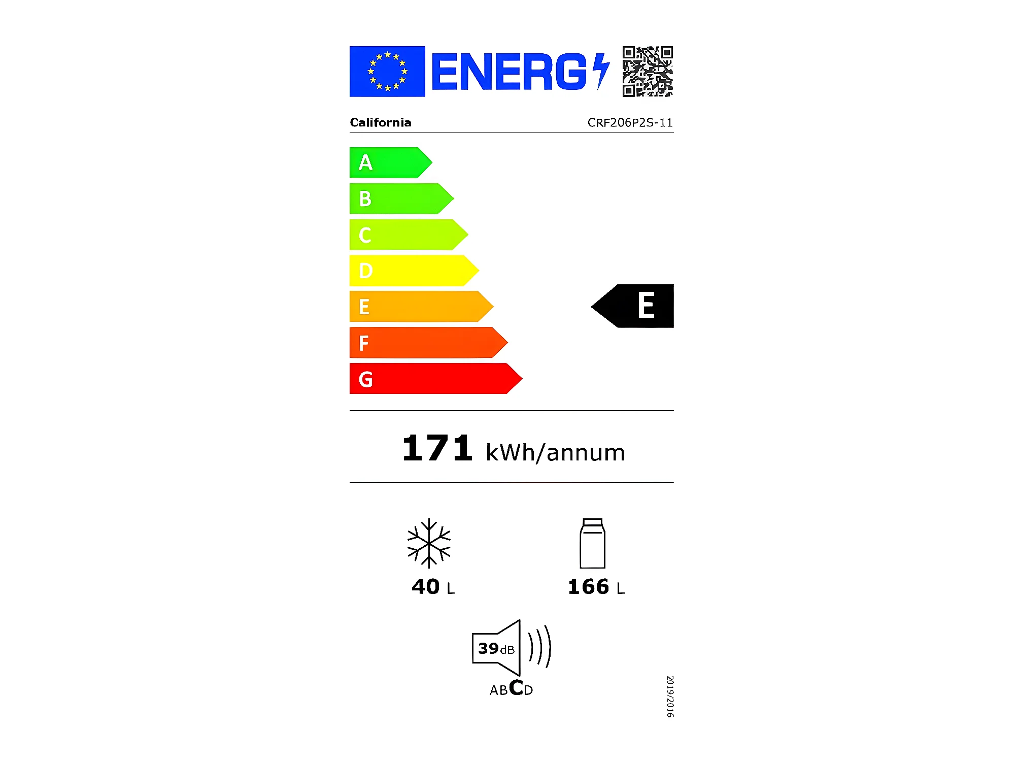 California Réfrigérateur 2 portes 54cm 206l gris - CRF206P2S-11