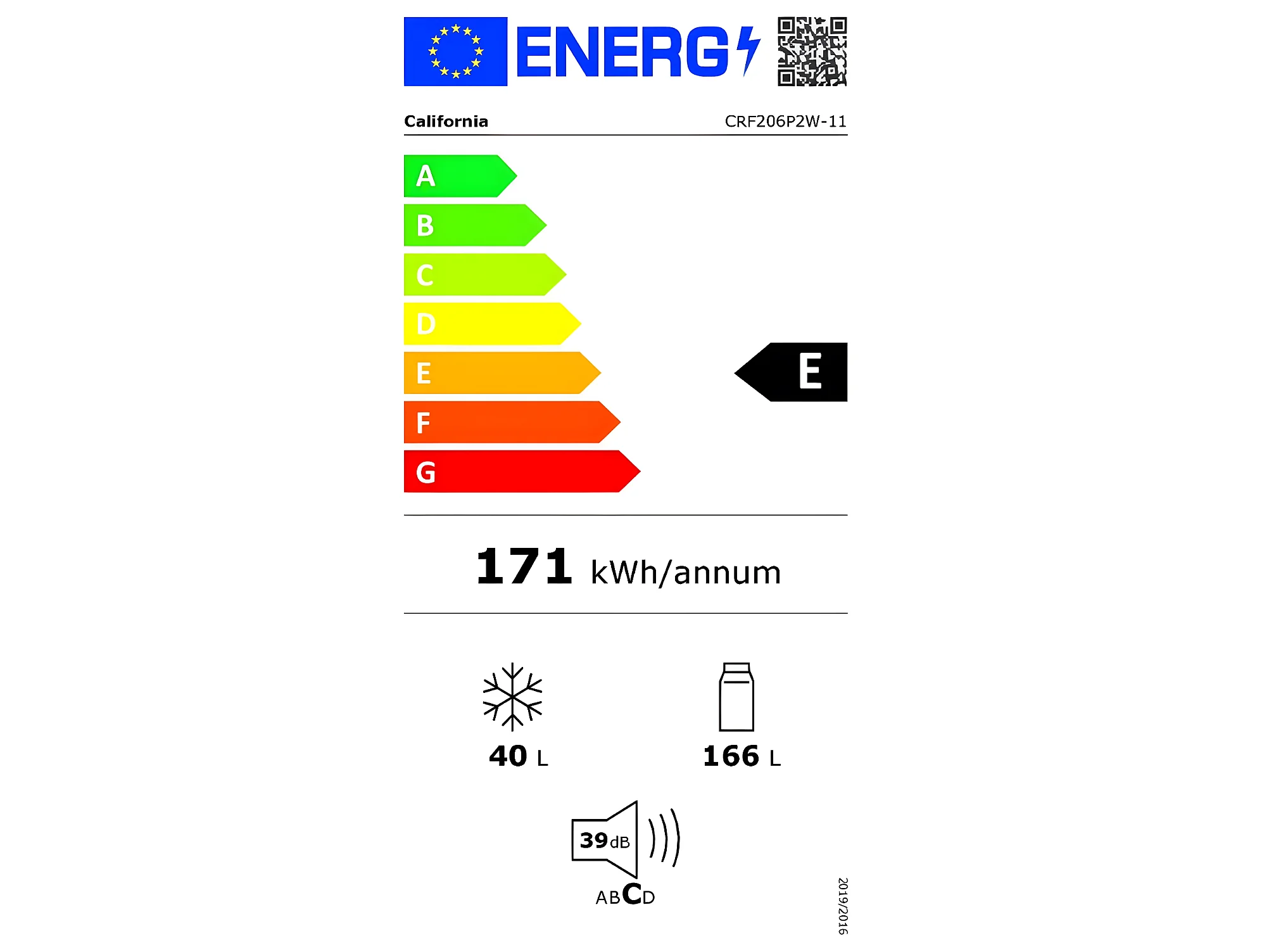California Réfrigérateur combiné 54cm 206l statique blanc - CRF206P2W-11