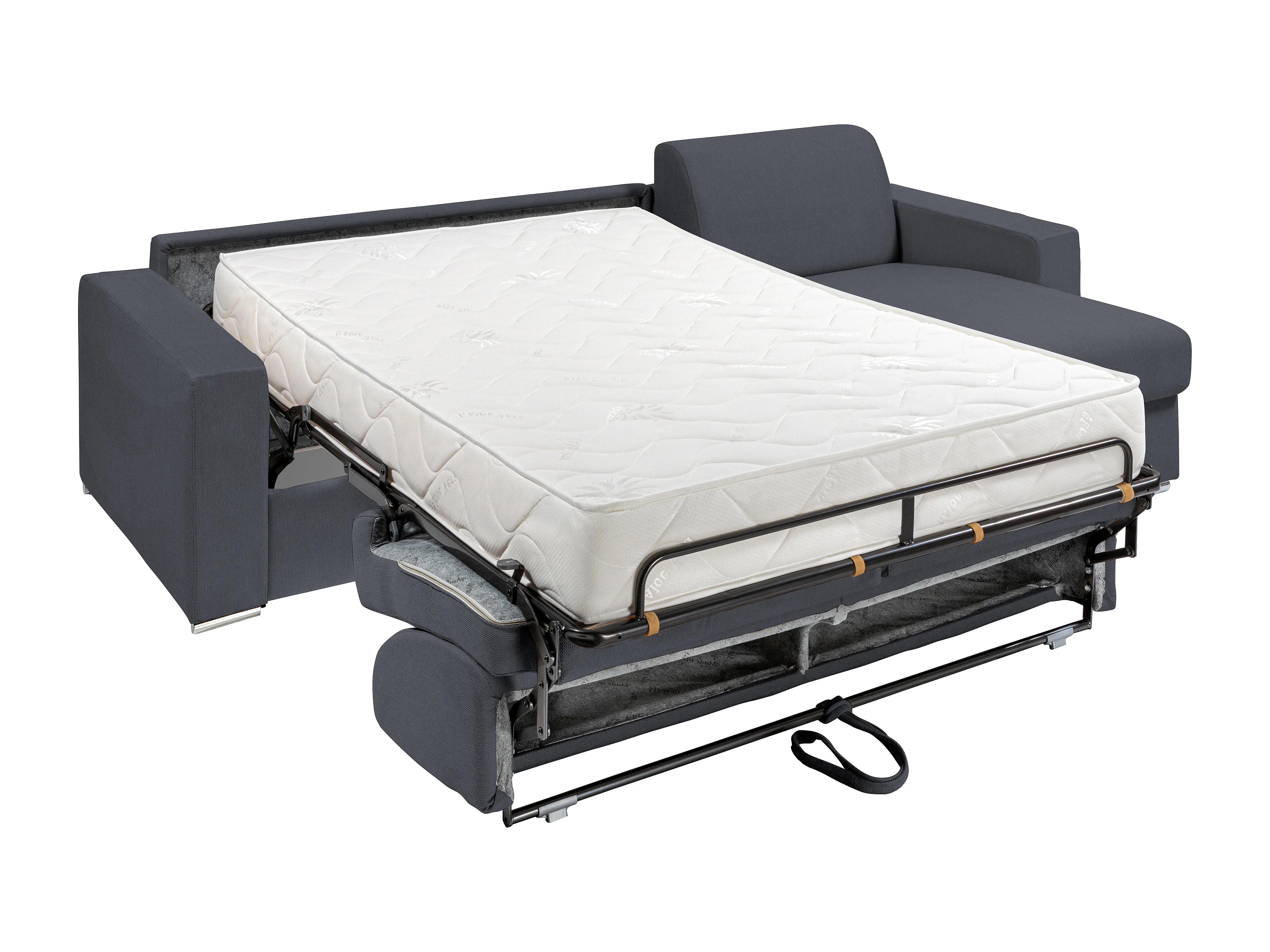 Canapé d'angle réversible convertible express en tissu gris anthracite - Couchage lattes larges 160 cm - Matelas 22 cm avec mémoire de forme - CALITO