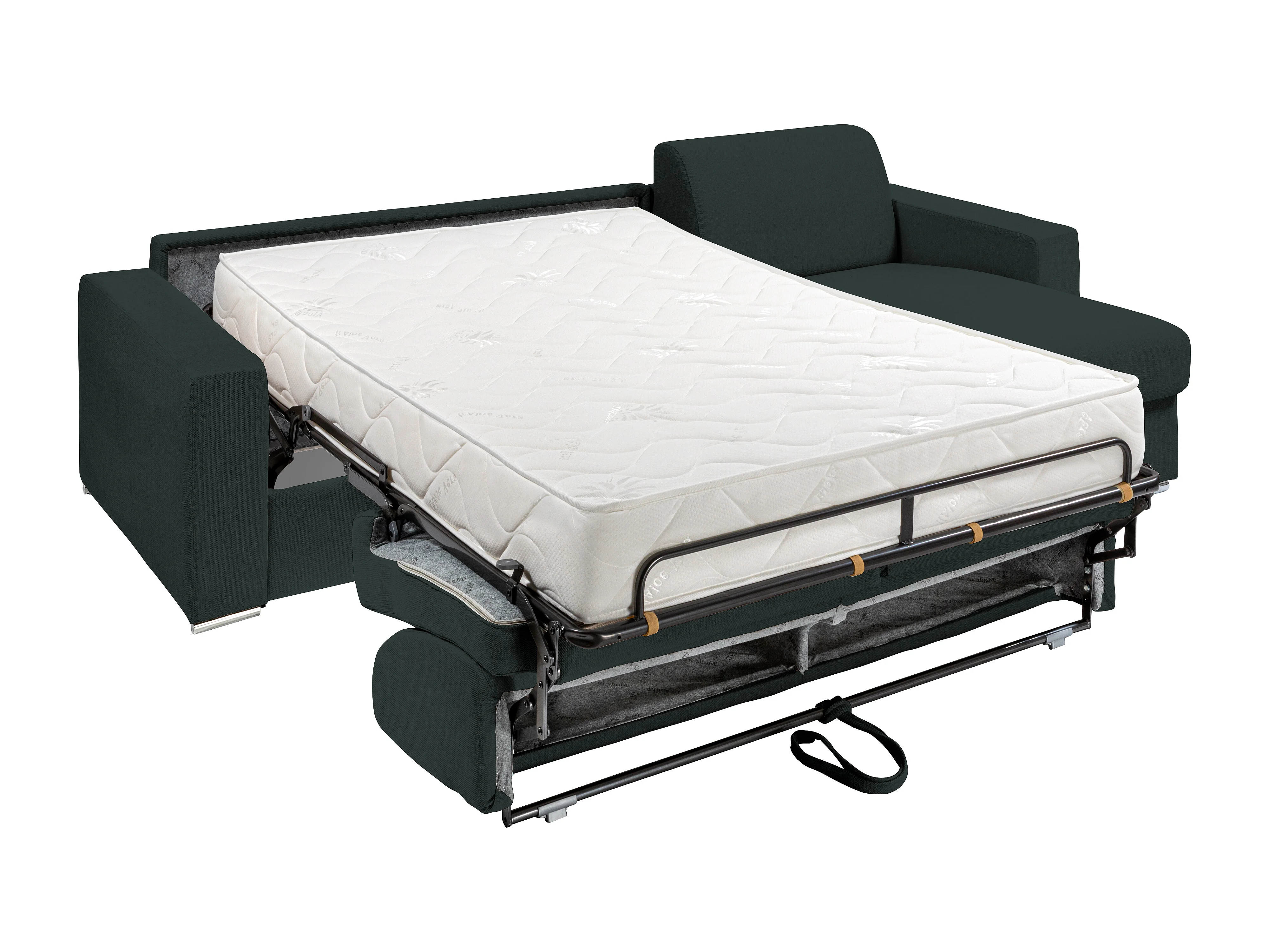 Canapé d'angle réversible convertible express en tissu vert sapin - Couchage lattes larges 160 cm - Matelas 22 cm avec mémoire de forme - CALITO