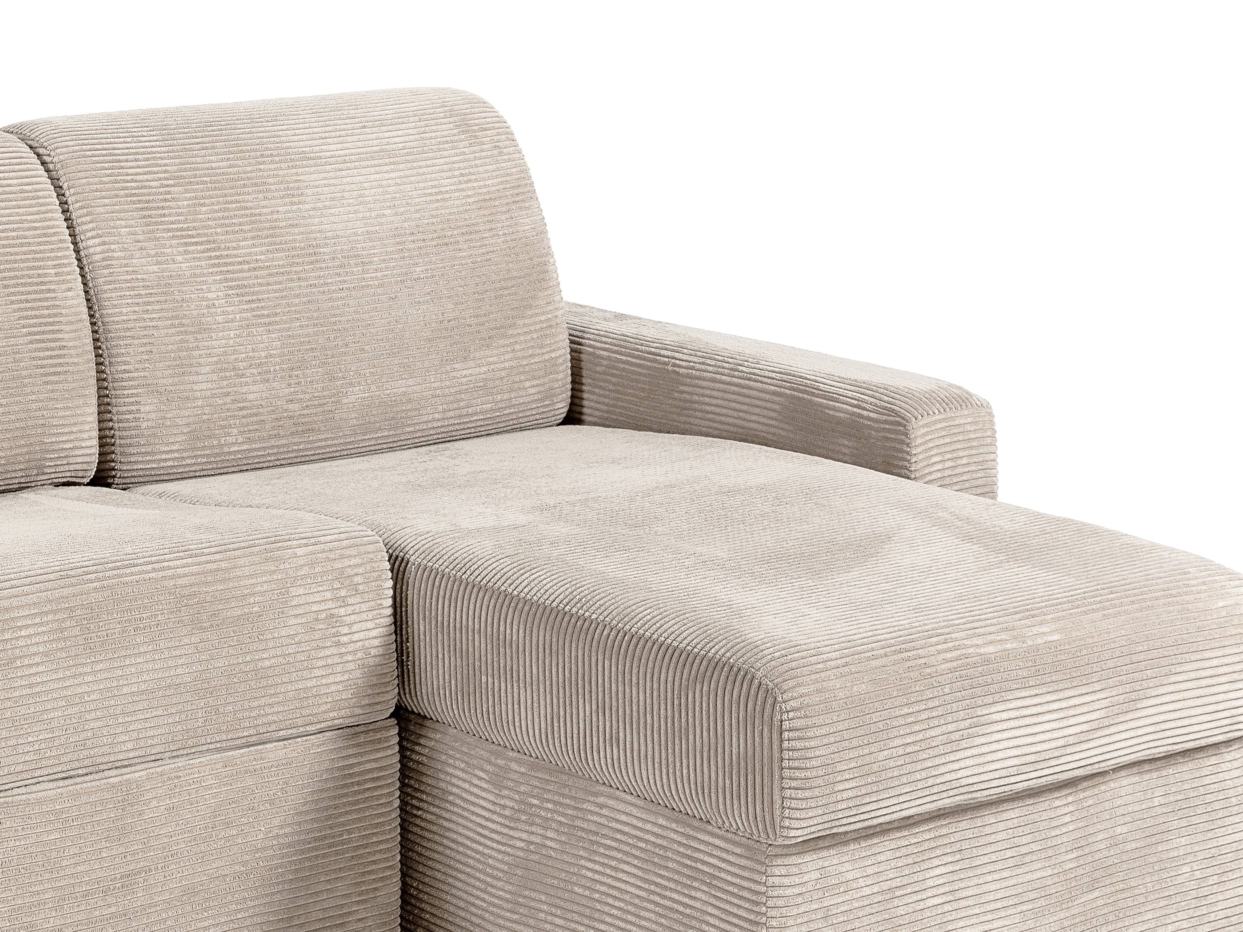 Canapé d'angle réversible convertible express en velours côtelé beige - Couchage lattes larges 140 cm - Matelas 22 cm avec mémoire de forme - CALITO