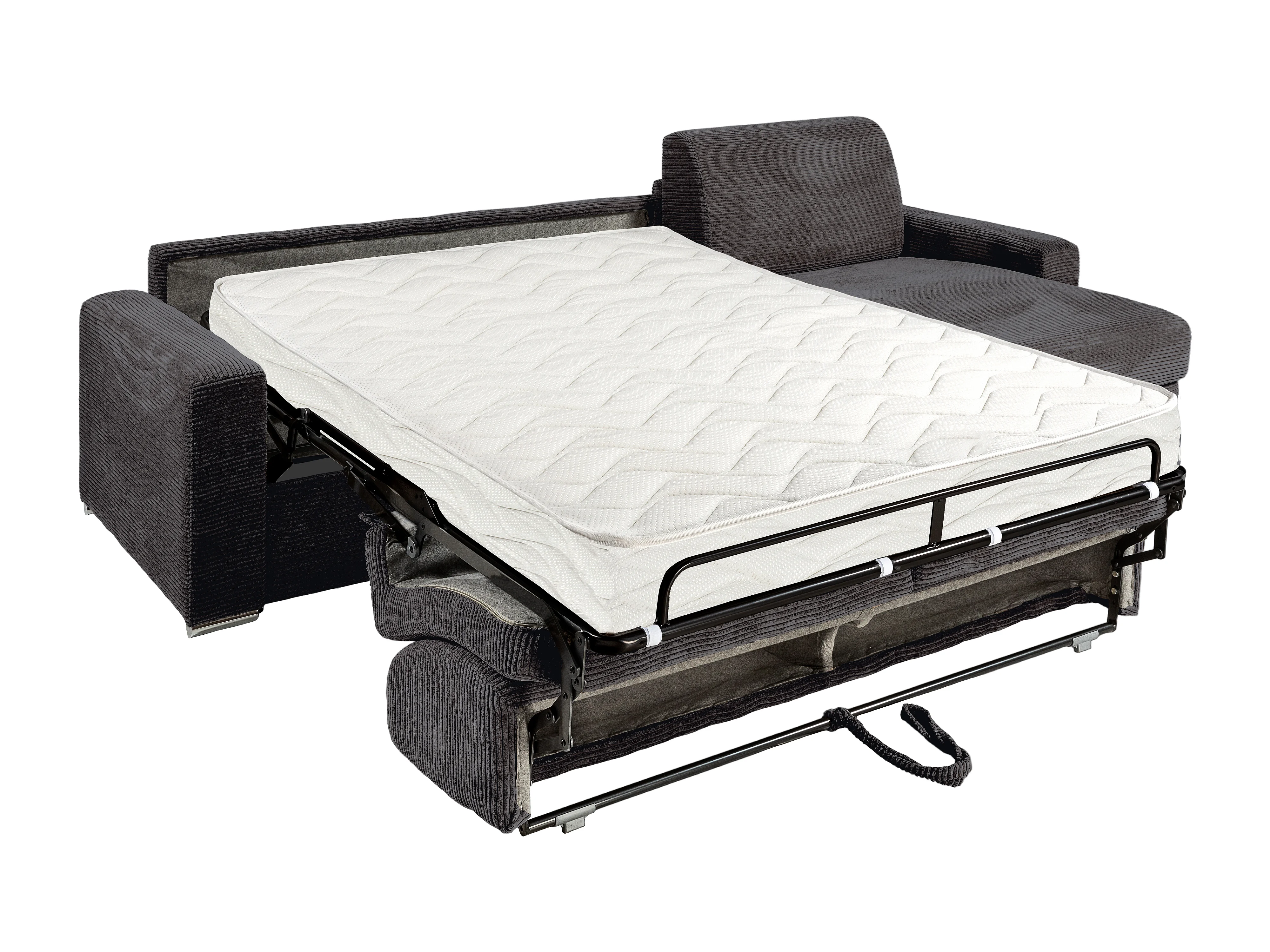 Canapé d'angle réversible convertible express en velours côtelé gris - Couchage lattes larges 140 cm - Matelas 18 cm - CALITO