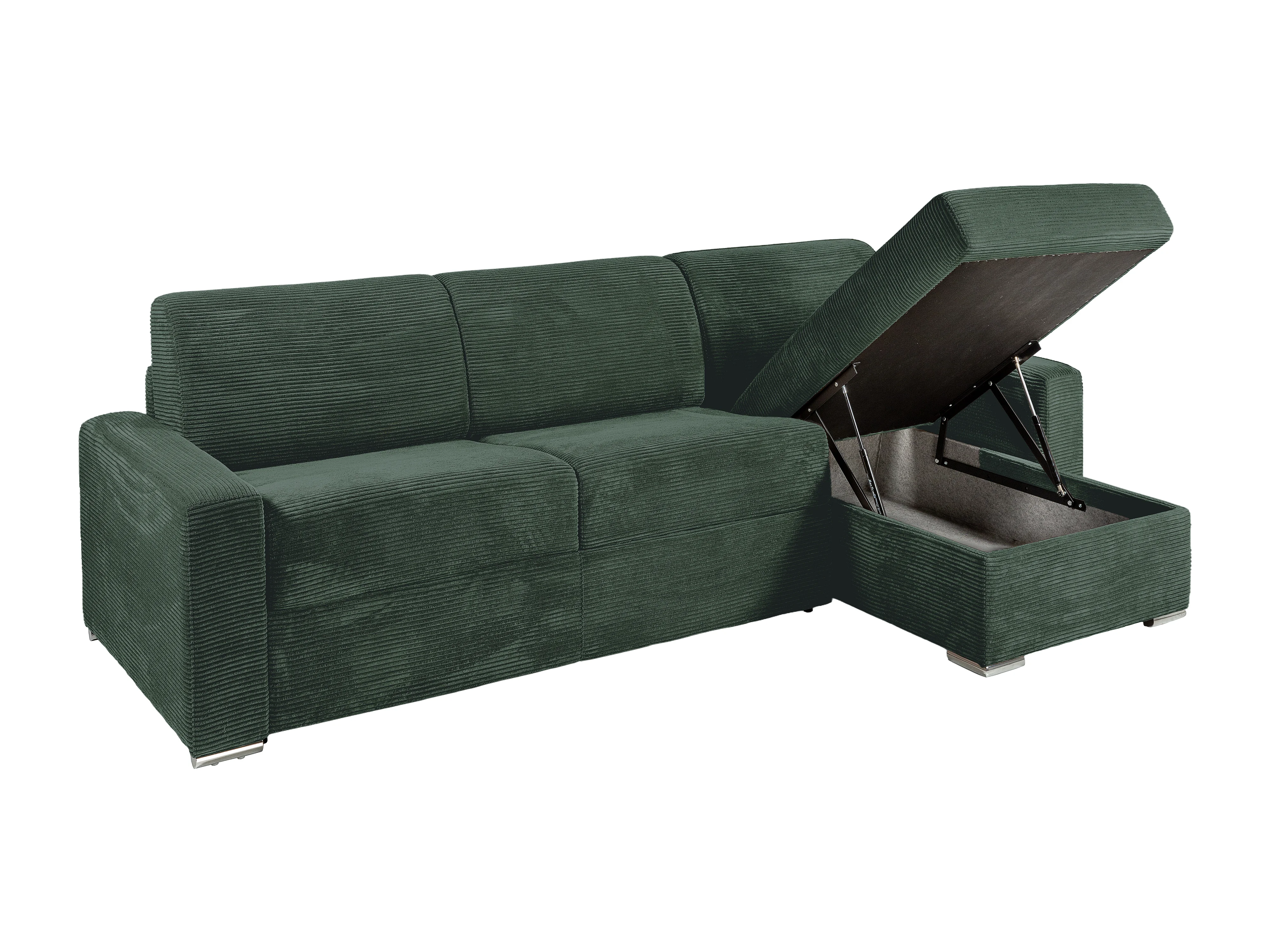 Canapé d'angle réversible convertible express en velours côtelé vert - Couchage 160 cm - Matelas 22 cm avec mémoire de forme - CALITO