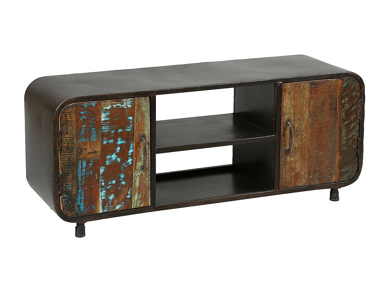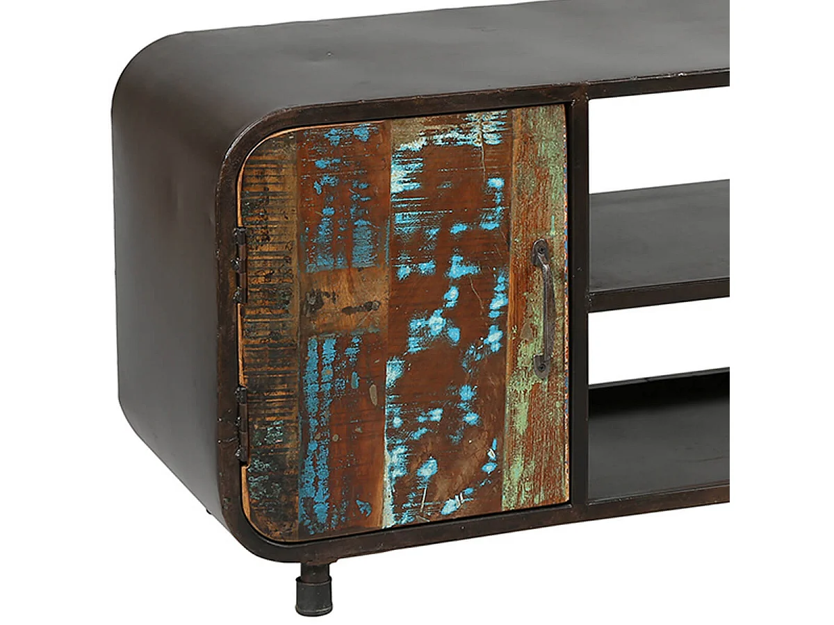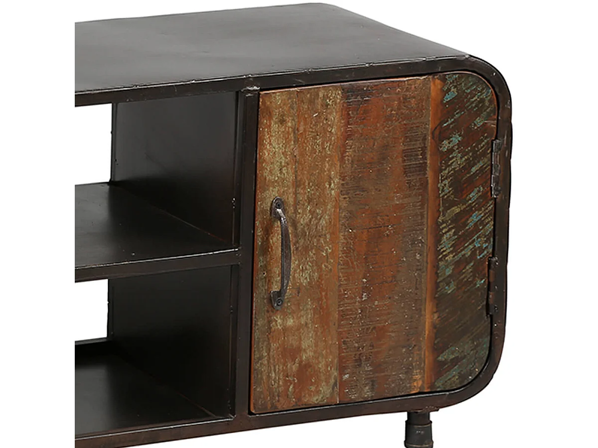 CALLISTE - Meuble TV 2 Portes en Bois Recyclé de Caractère Structure Acier