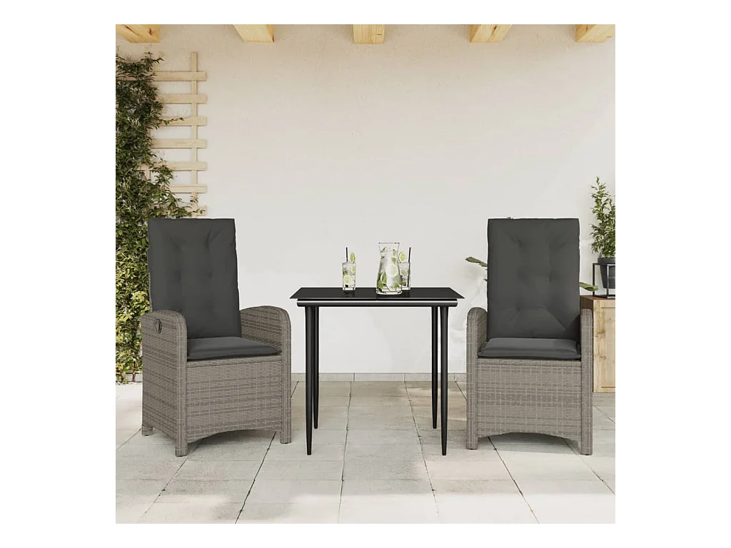 Caltanissetta Ensemble à manger de jardin 3 pcs coussins gris résine tressée