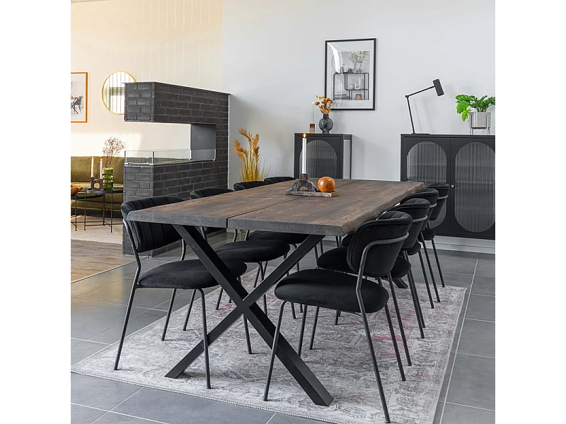 CALVI-Table repas à manger +12 personnes 300cm en chêne massif fumé