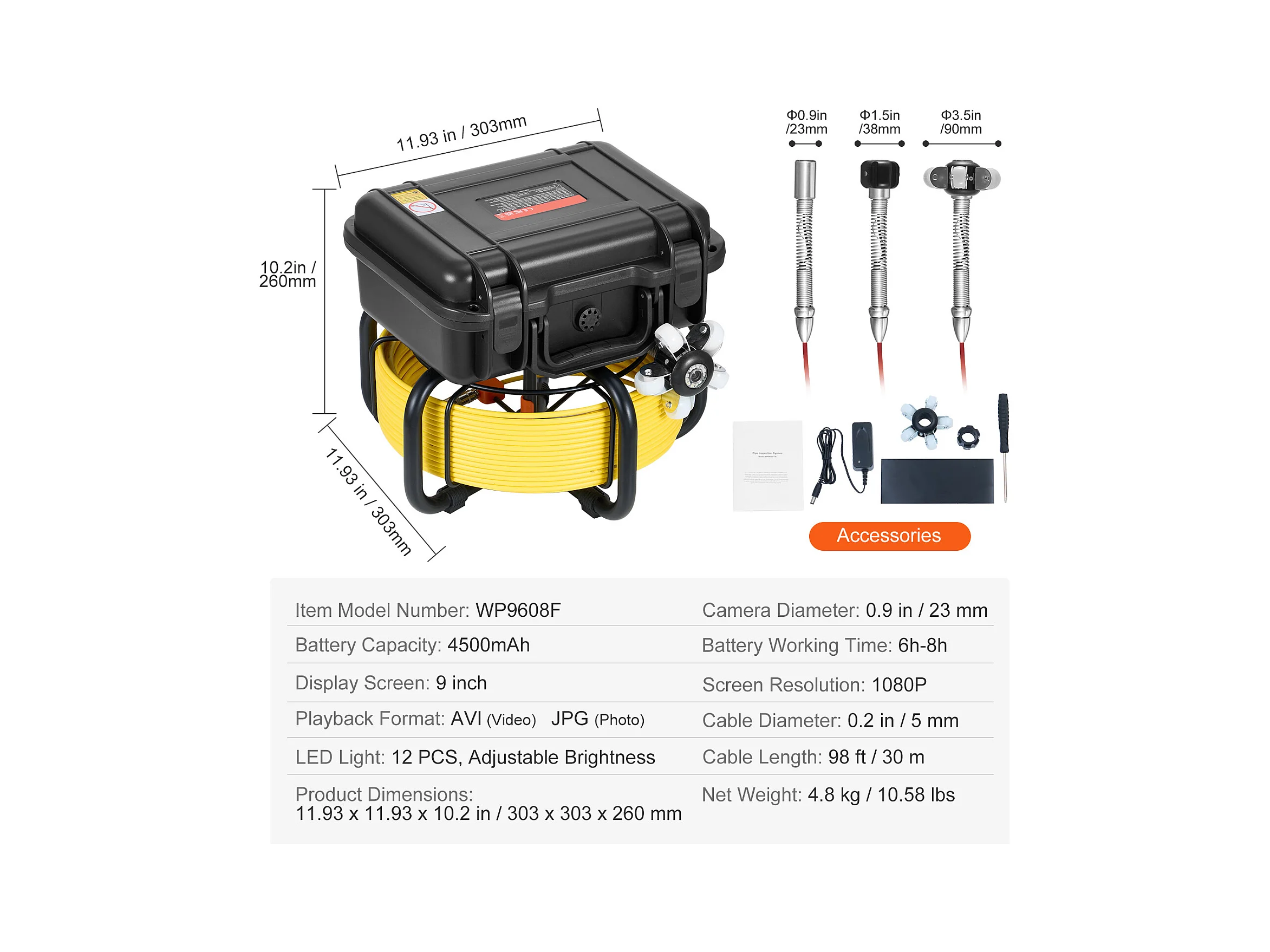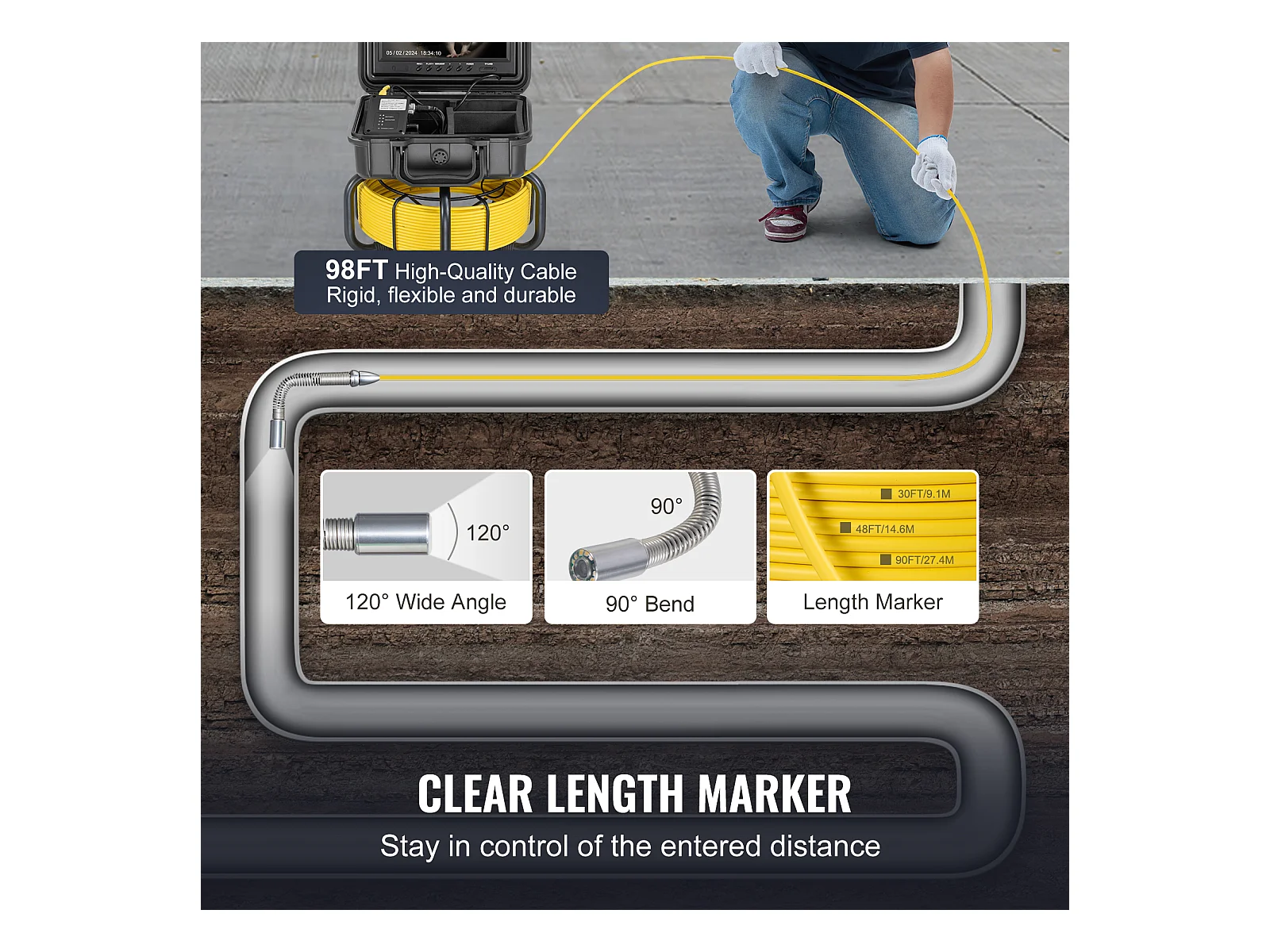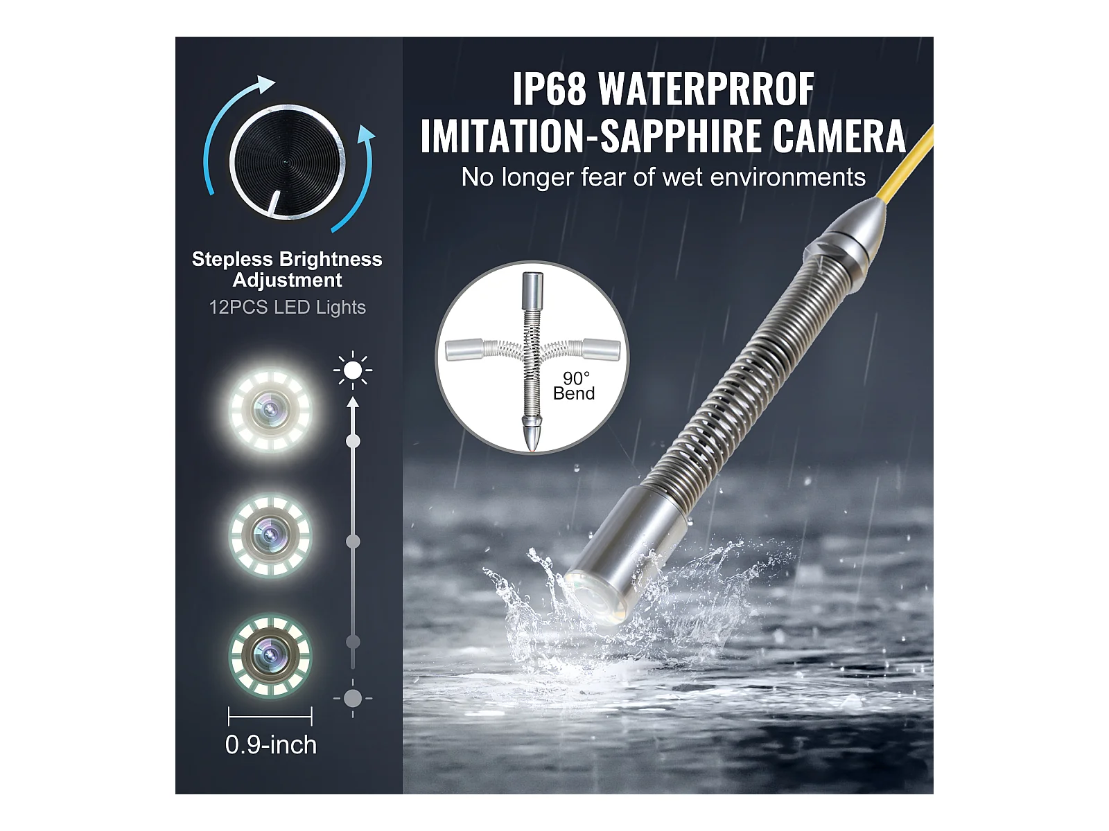 Caméra d'Inspection de Canalisation SucceBuy, 30 m de Longueur, avec Écran de 22,86 cm et Zoom 36X
