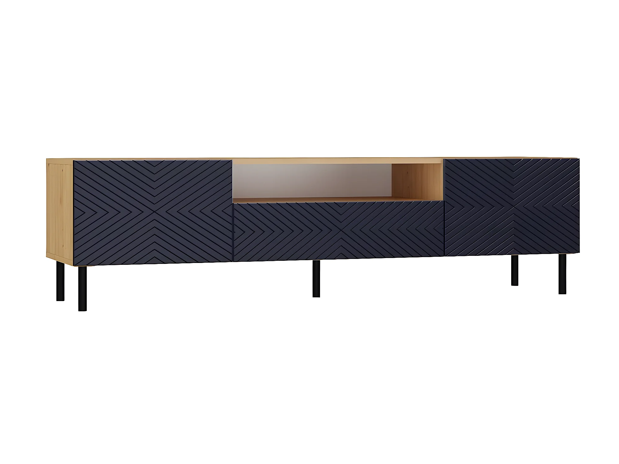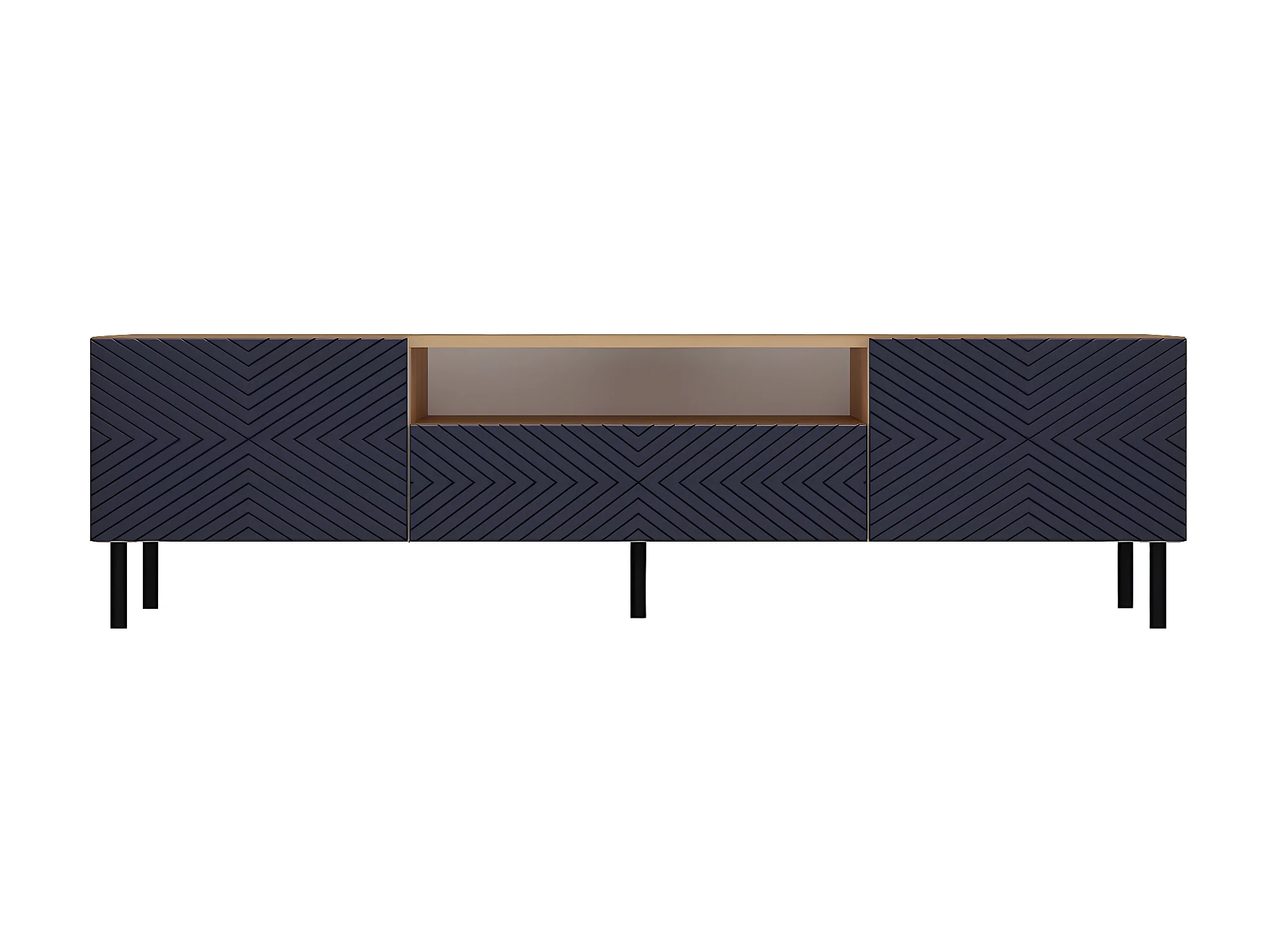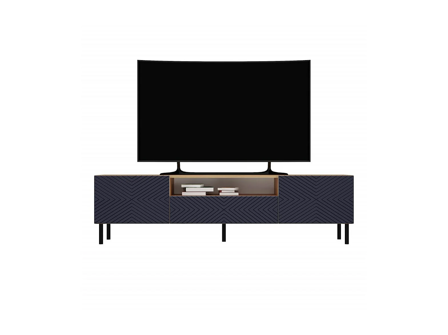 CAMI - Meuble TV bas style glamour - 1 tiroir + 2 portes - L 160 cm - Pieds en métal - Façades à lamelles