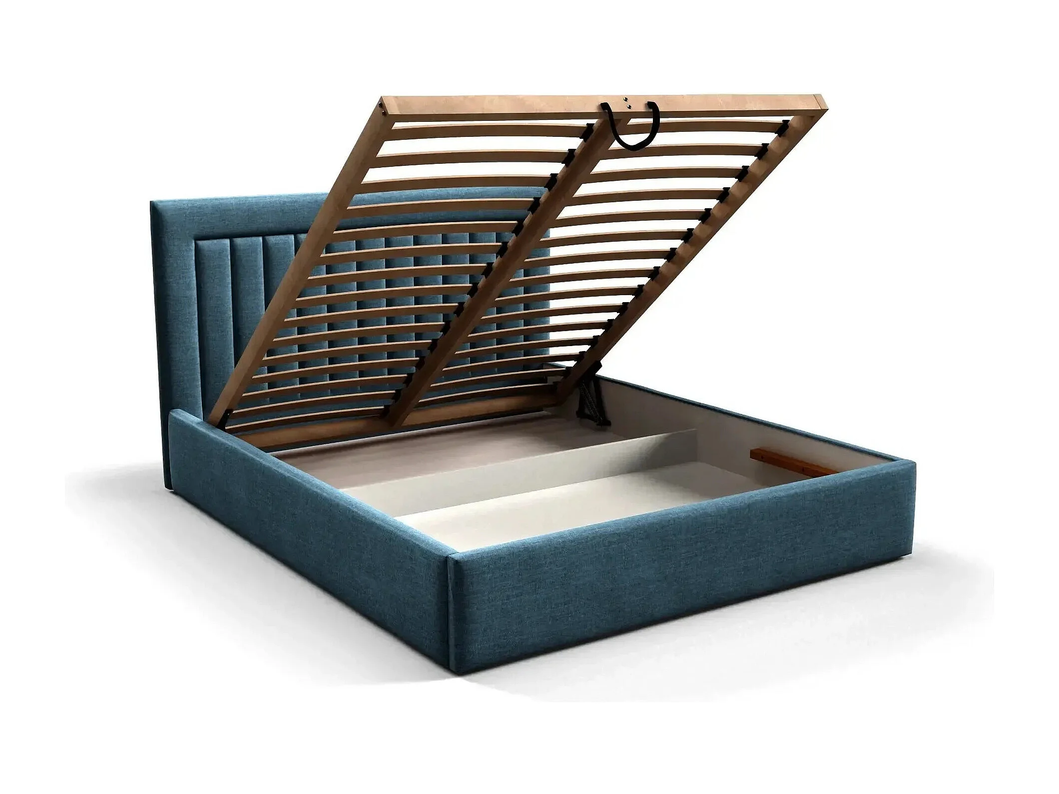 CAMILLE - Lit coffre tissu velours 140x200cm - Bleu