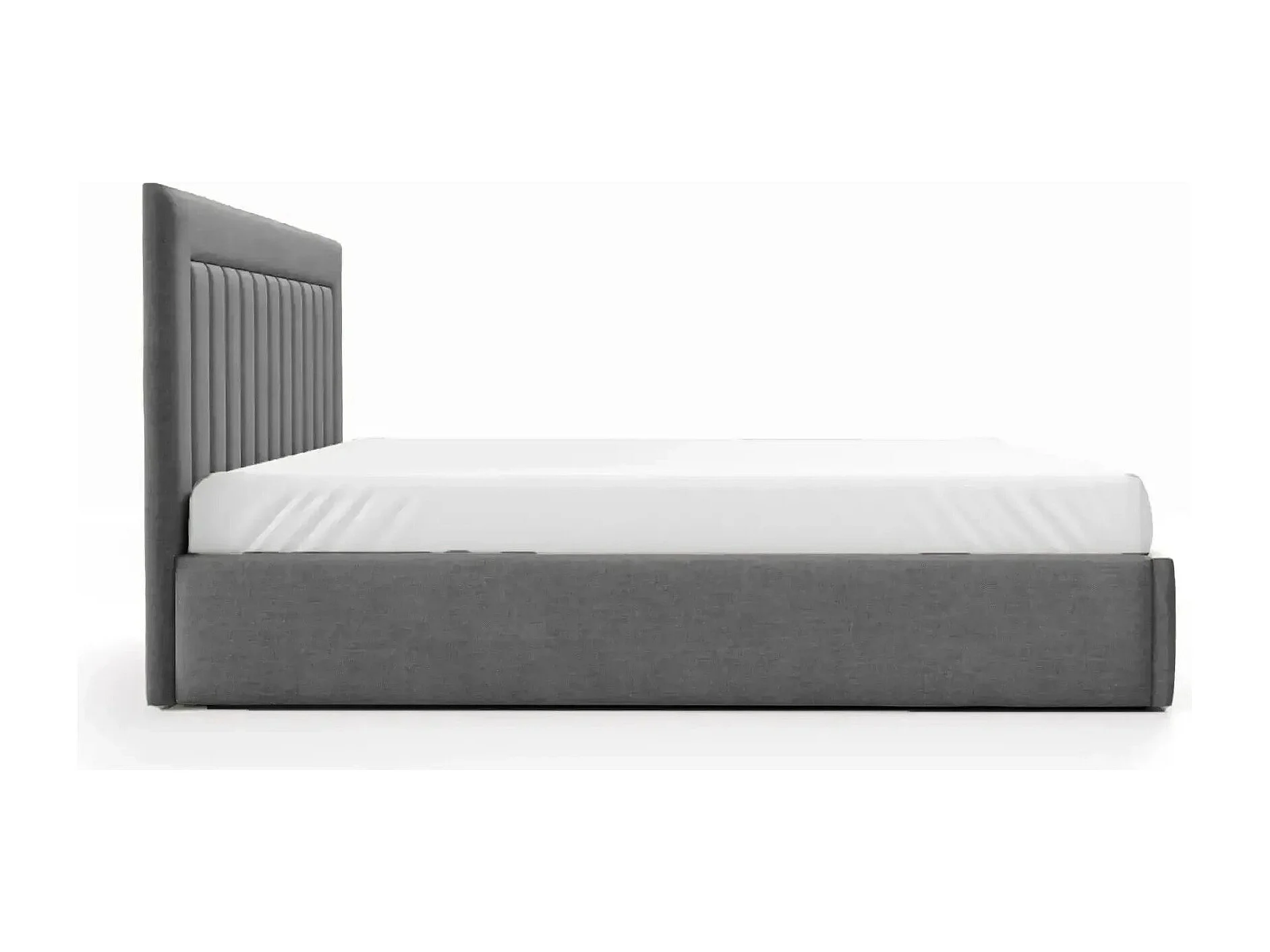 CAMILLE - Lit coffre tissu velours 140x200cm - Gris foncé