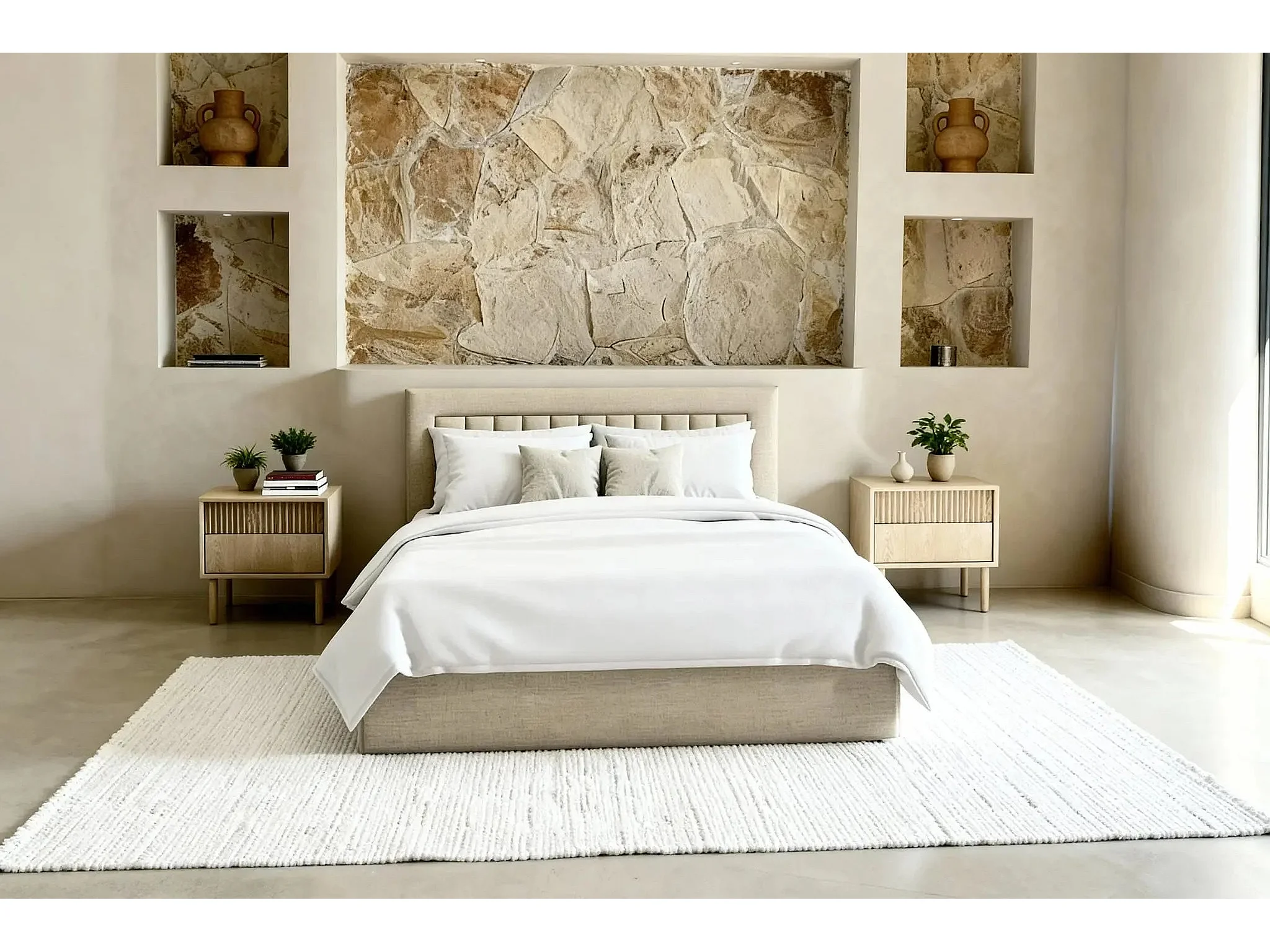 CAMILLE - Lit coffre tissu velours 160x200cm - Beige