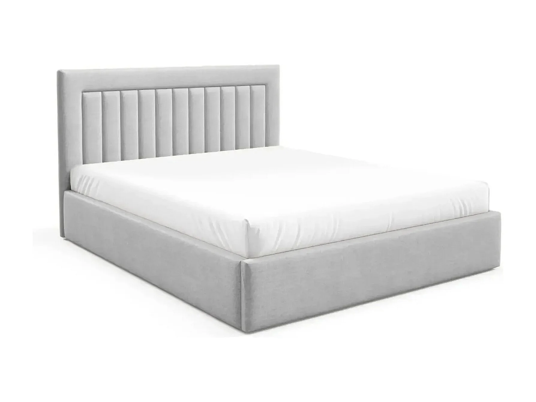 CAMILLE - Lit coffre tissu velours 160x200cm - Gris clair