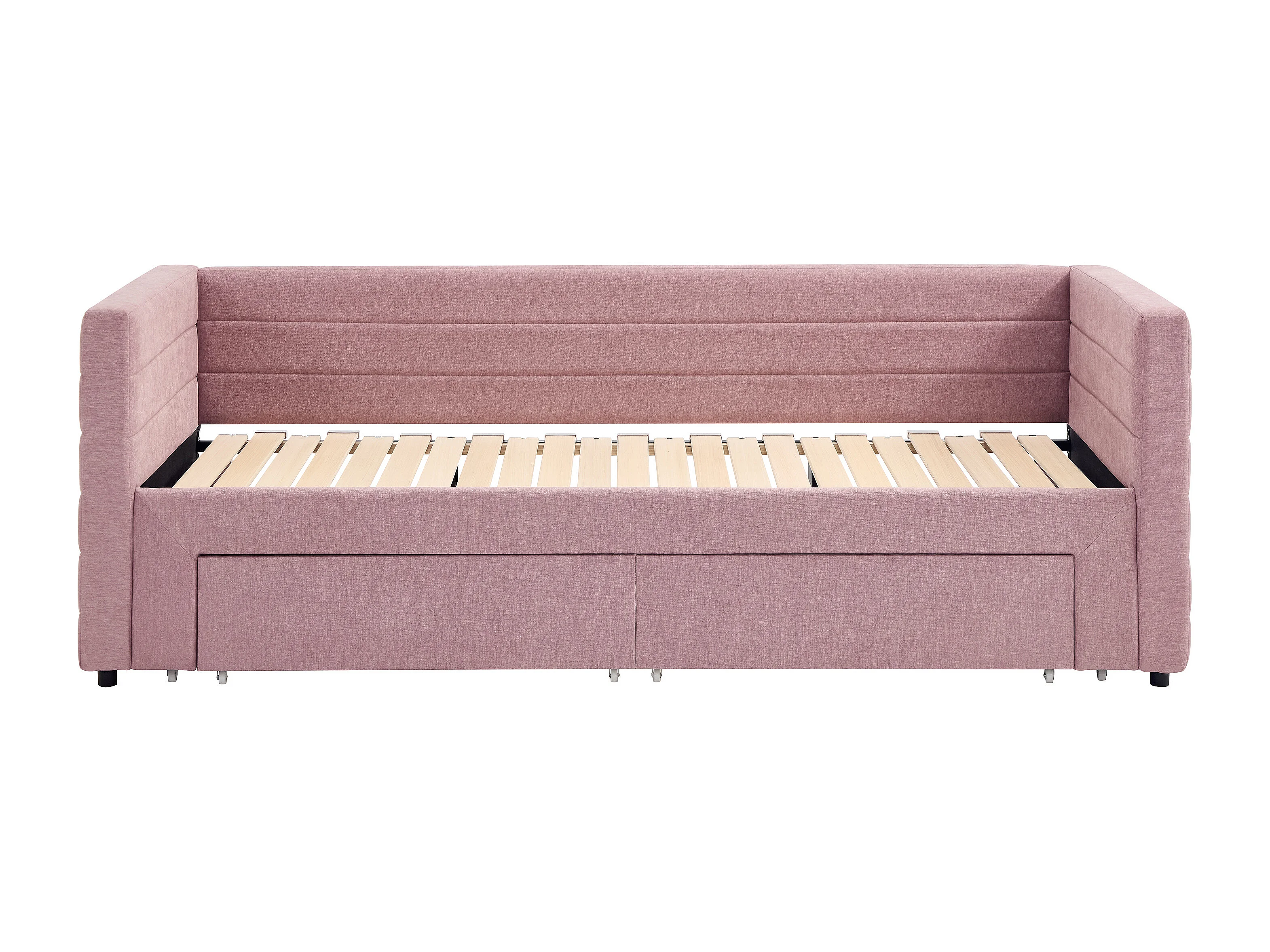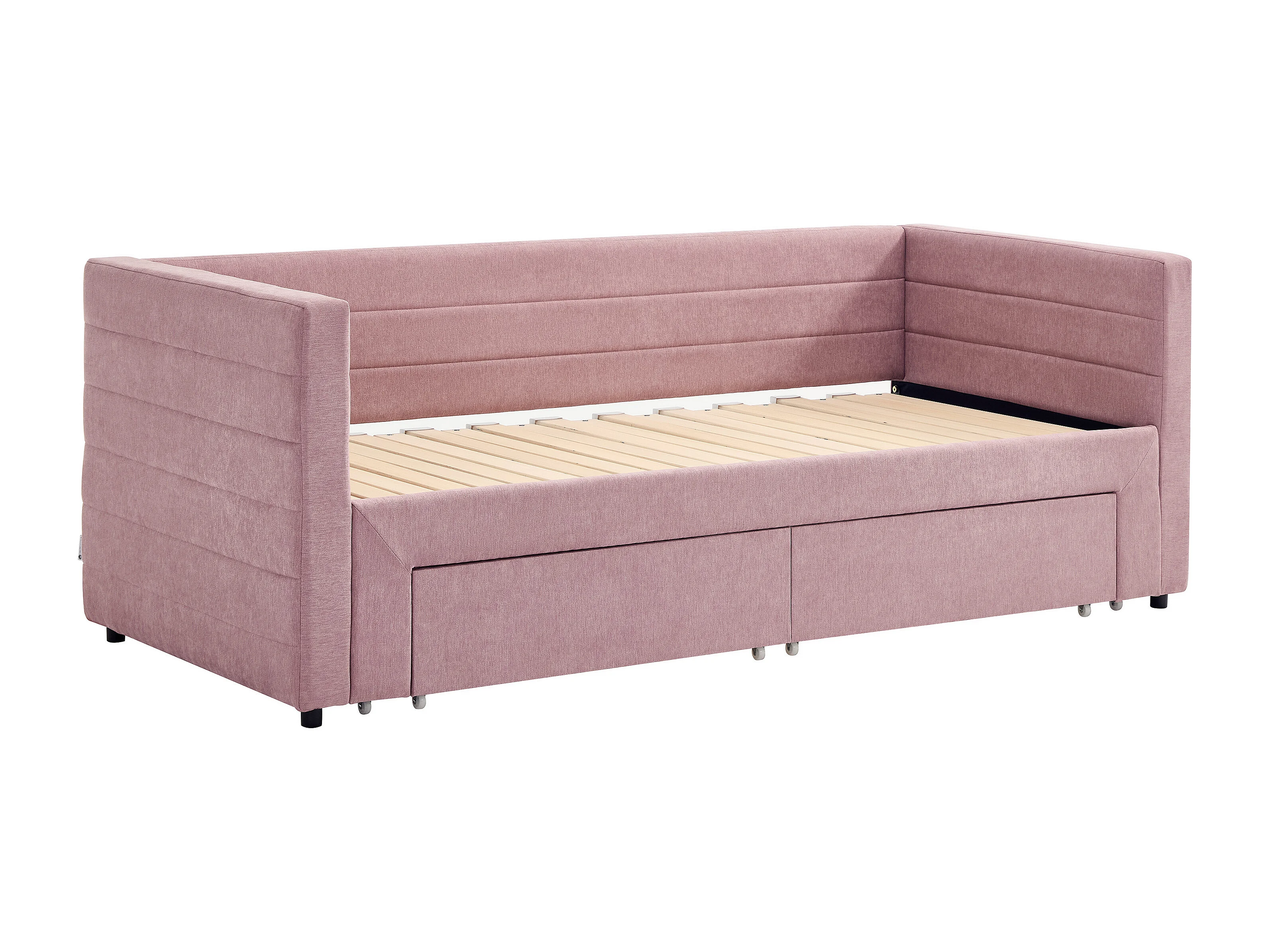 Lit banquette 2 x 80 x 200 cm - Avec sommier peigne et tiroirs - Tissu texturé - Rose - CAMITY