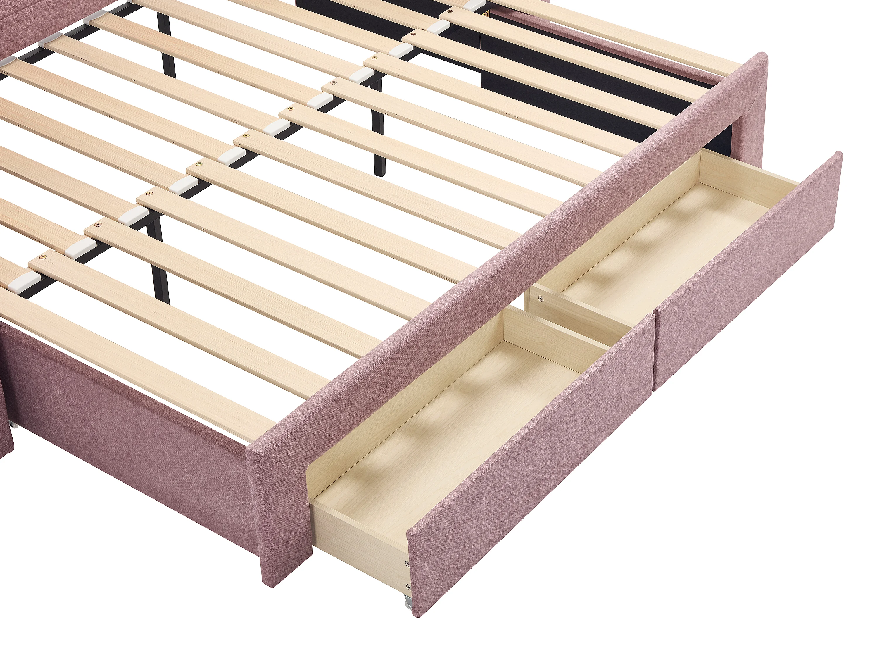 Lit banquette 2 x 80 x 200 cm - Avec sommier peigne et tiroirs - Tissu texturé - Rose + Matelas - CAMITY