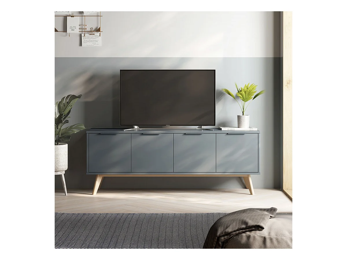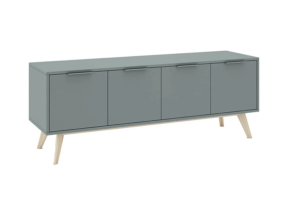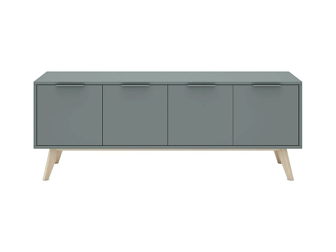 CANACA - Meuble TV 4 Portes Scandinave MDF et Pin Massif Gris Vert