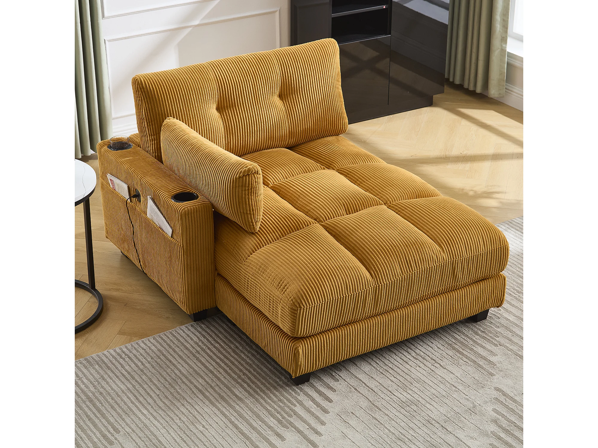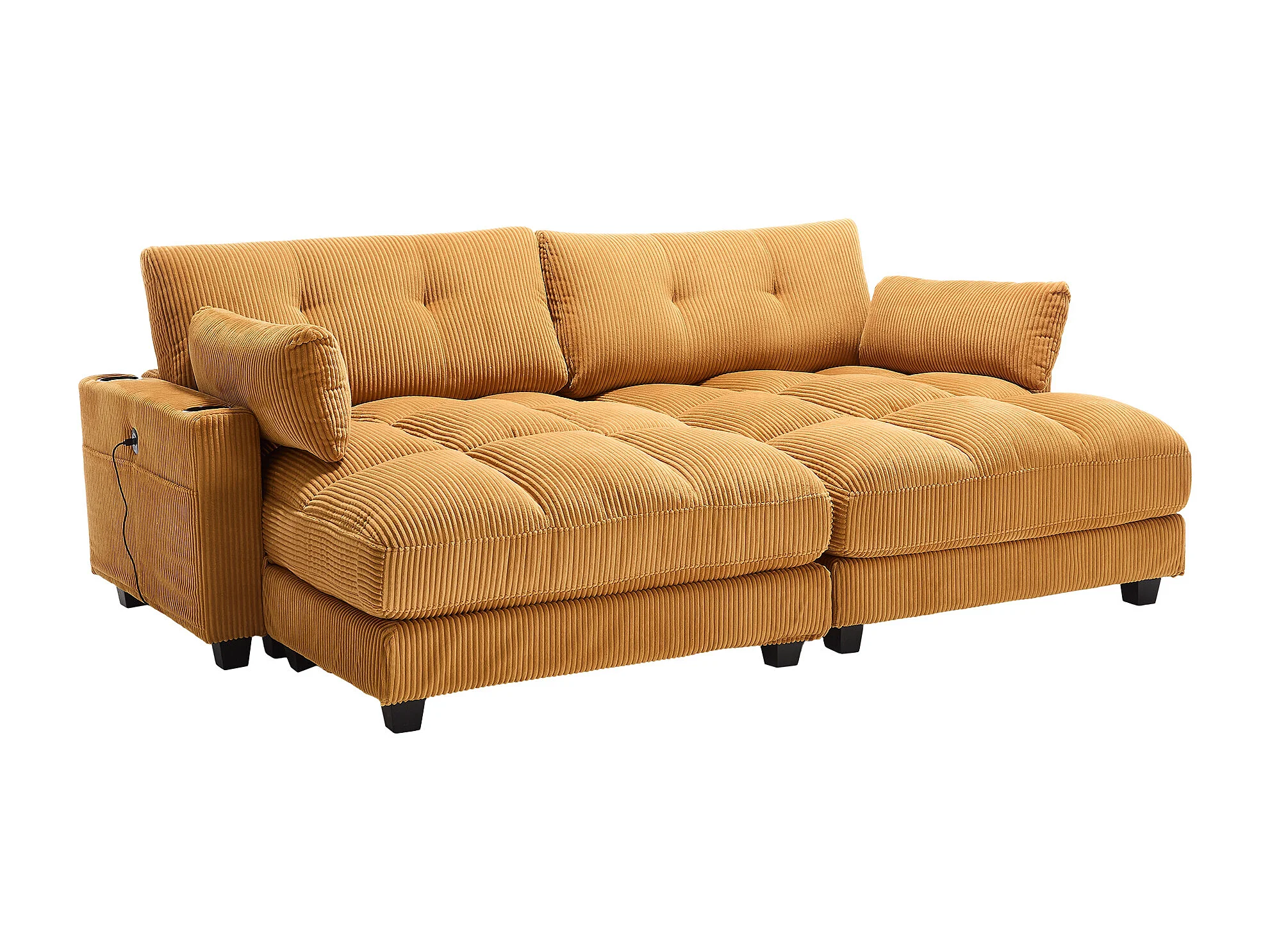 Canapé 1 place avec accoudoirs - Canapé relaxation avec 2 porte-gobelets et poches latérales - velours côtelé jaune