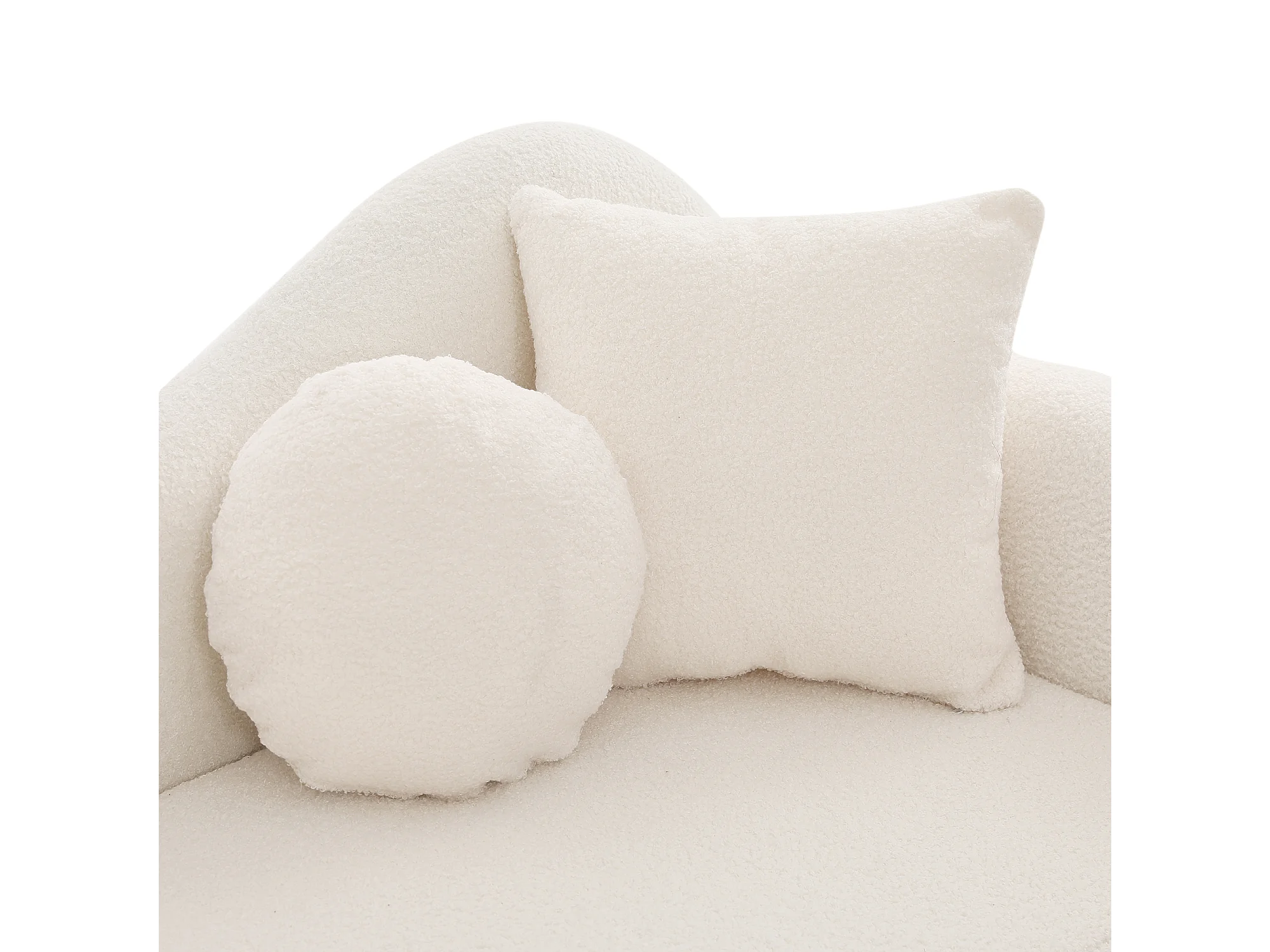 Canapé 1 place - Méridienne de rangement 134 cm - Dossier ondulé - Tissu polaire effet peluche - Coussin d'assise - Blanc cassé