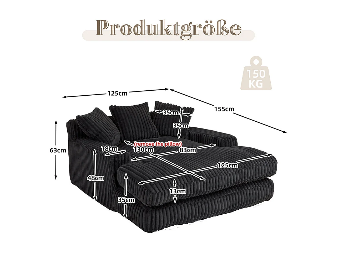 Canapé 1 place velours côtelé cloud couch 3 coussins moelleux salon bureau noir