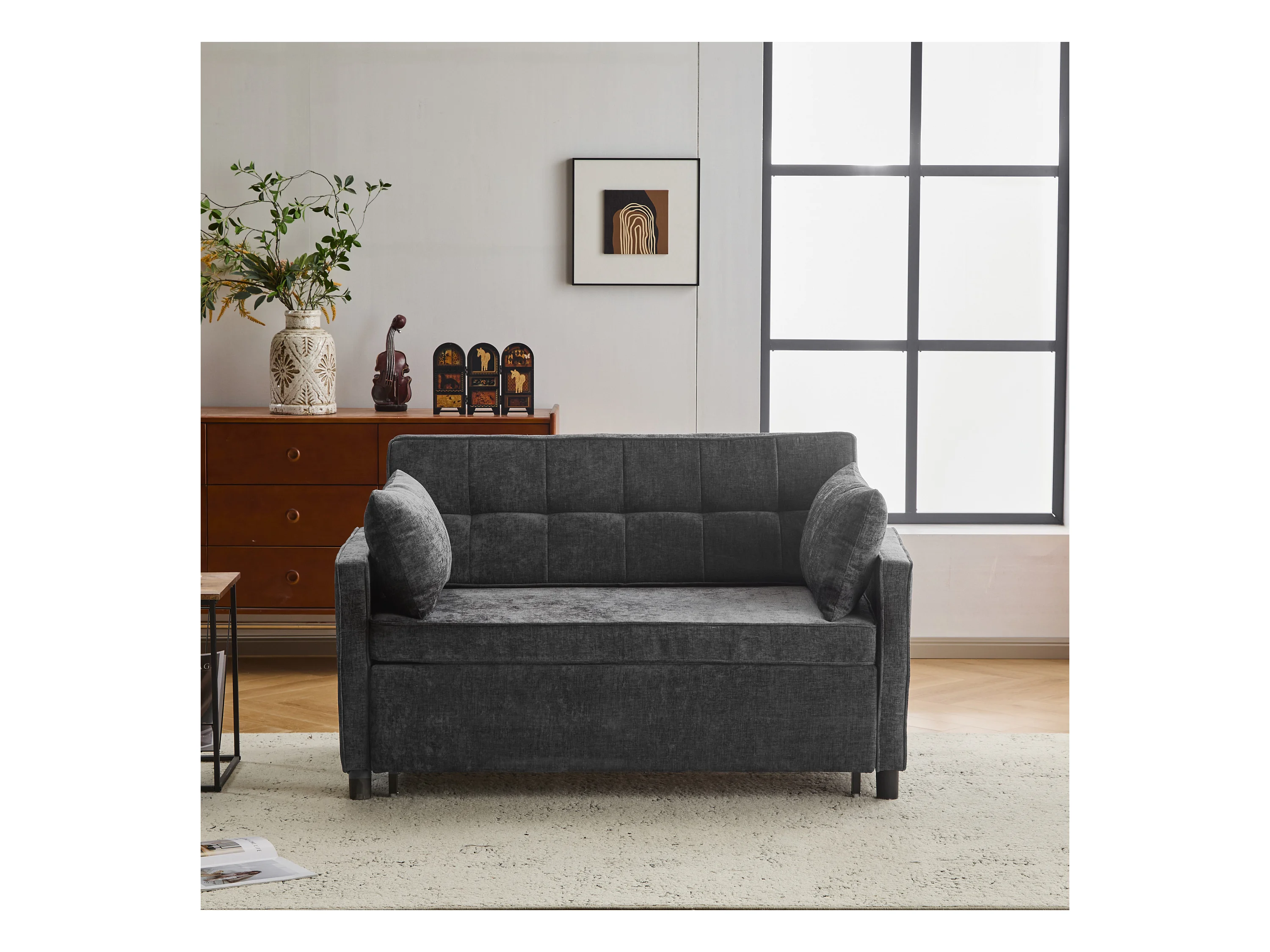 Canapé 142x79x85cm- Dossier réglable - Chenille - Avec 2 coussins - noir