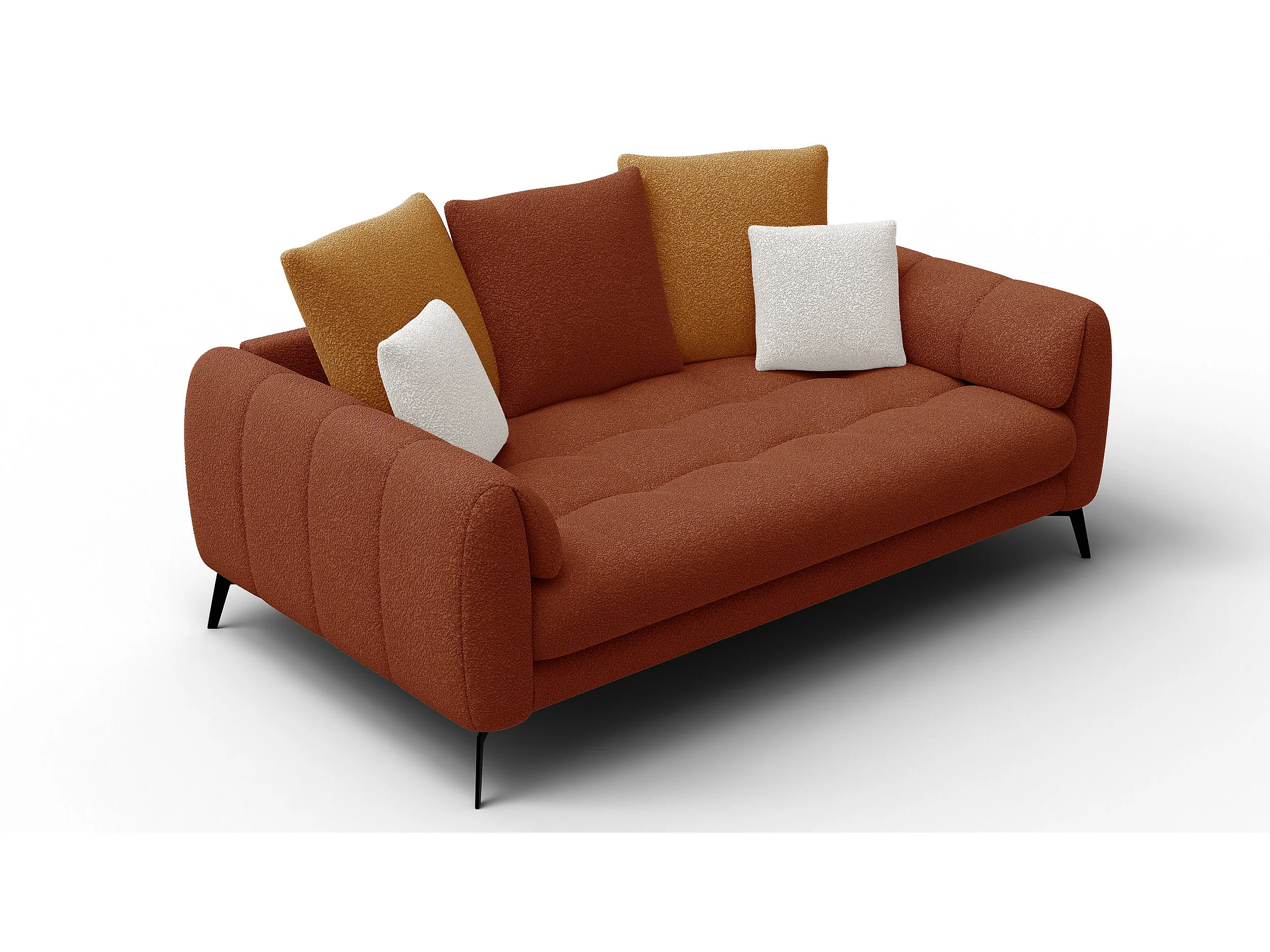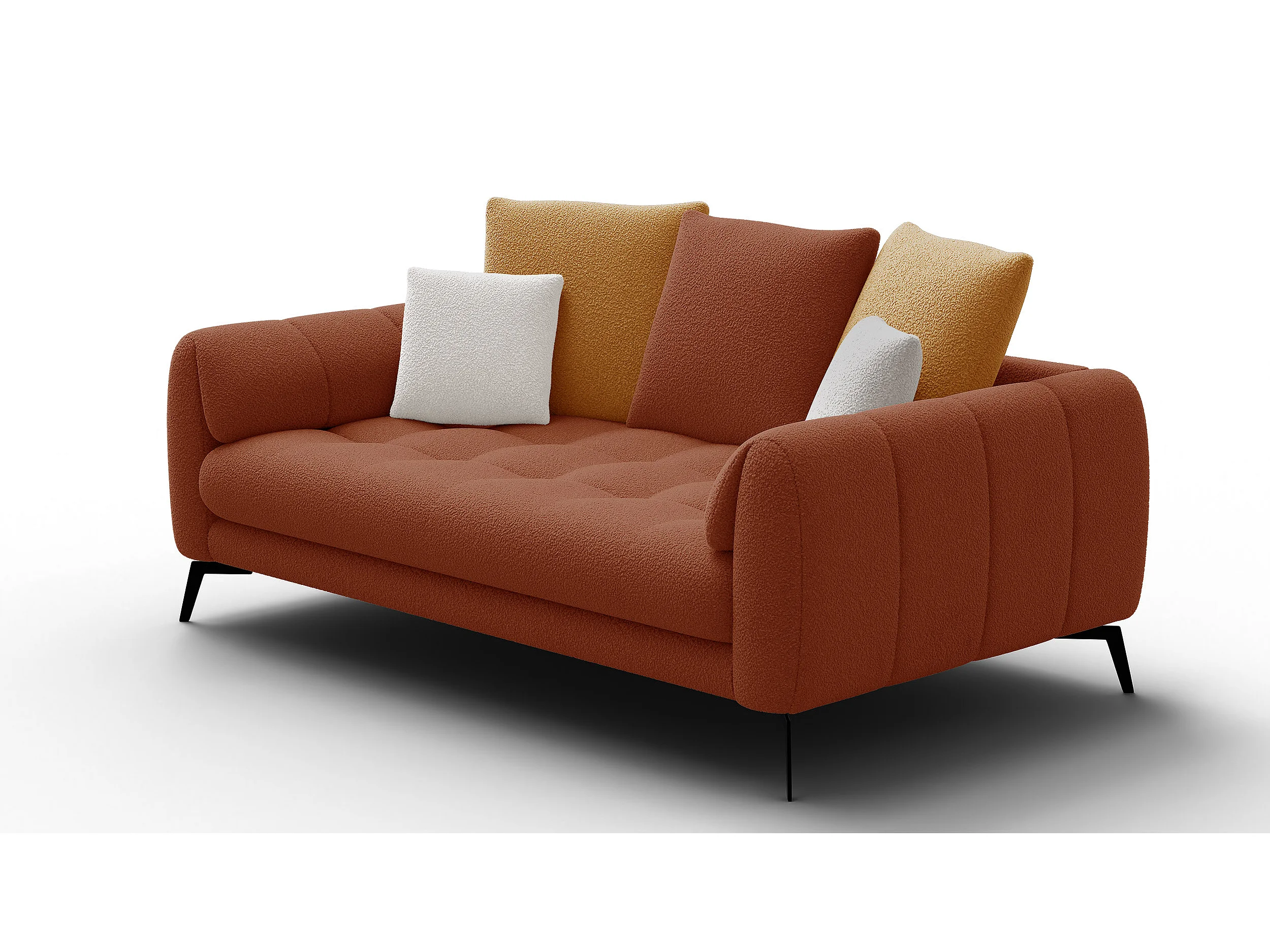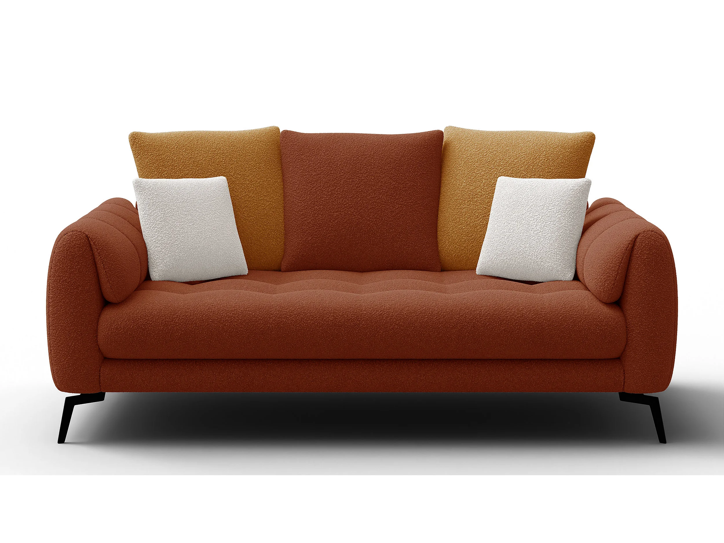 Canapé 2,5 places CALME, tissu orange foncé et écru