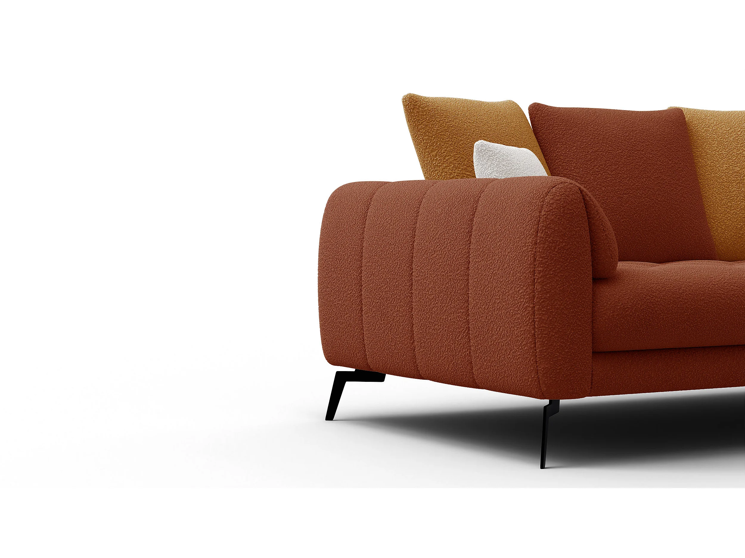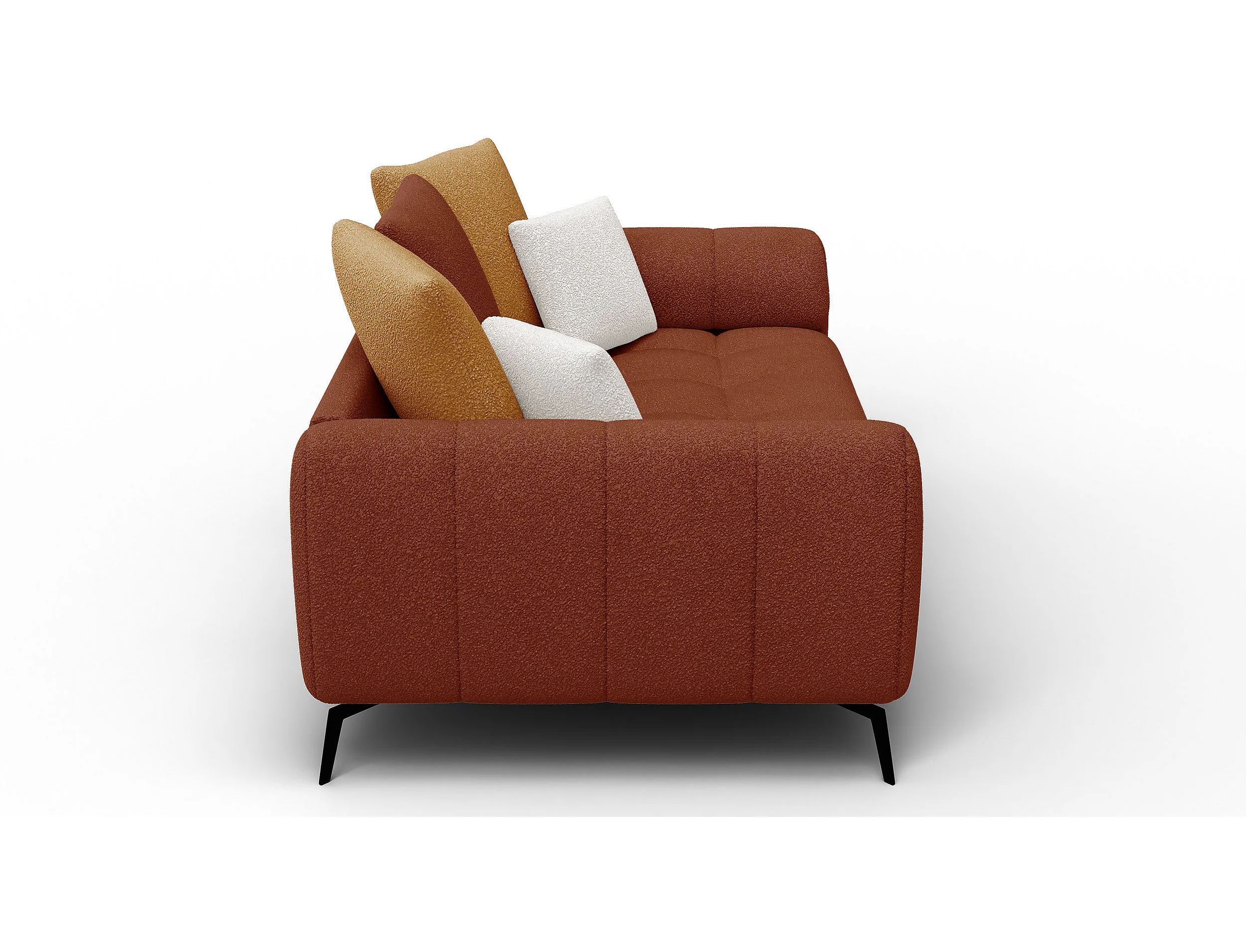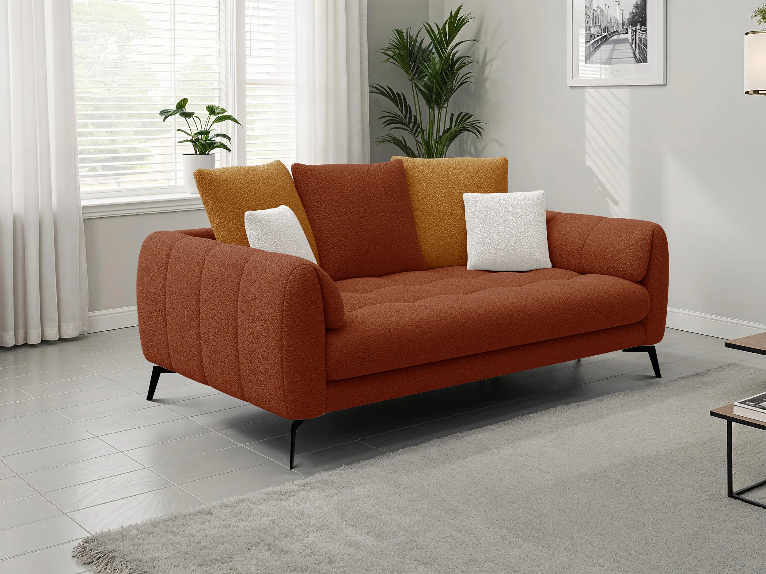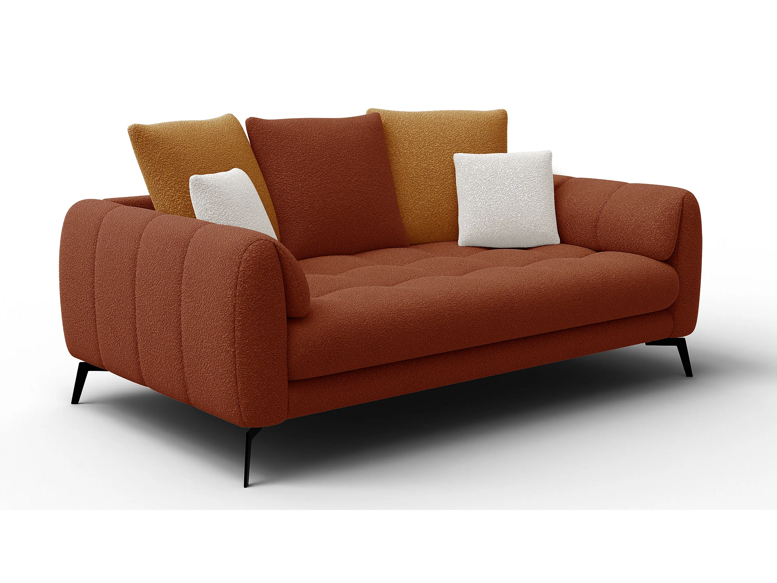 Canapé 2,5 places CALME, tissu orange foncé et écru