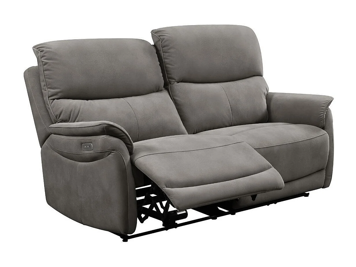 Canapé 2,5 places relax électrique tissu polyester imitation peau gris foncé - SULTAN