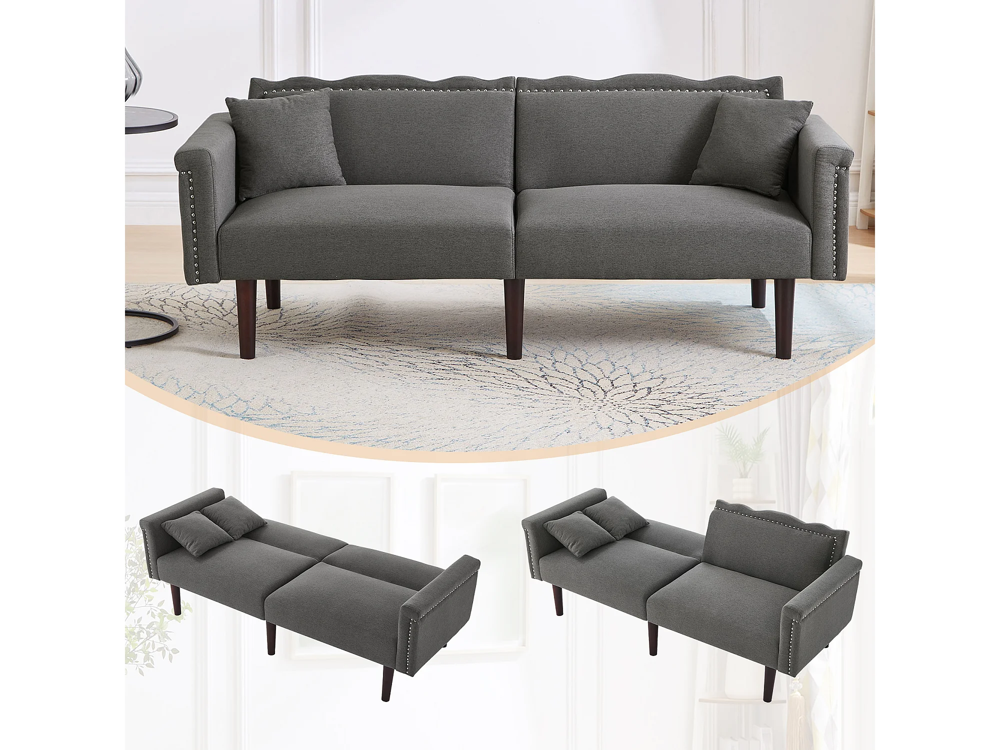 Canapé 2 places 2-en-1, dossiers indépendants réglables, tissu coton-lin et rembourrage en mousse haute densité, structure décorative