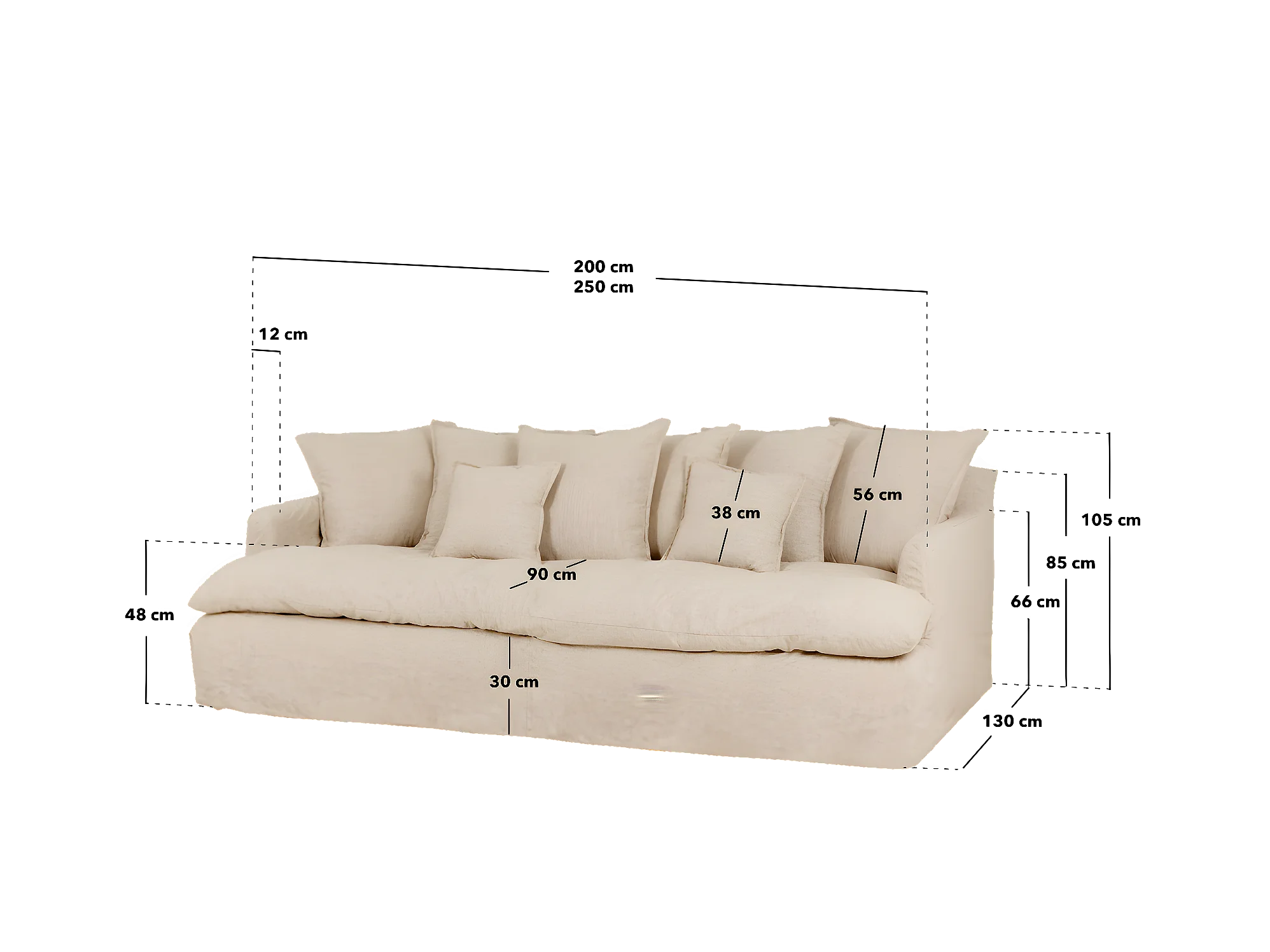 Canapé 2 places à profondeur marron clairne coton et lin déhoussable beige