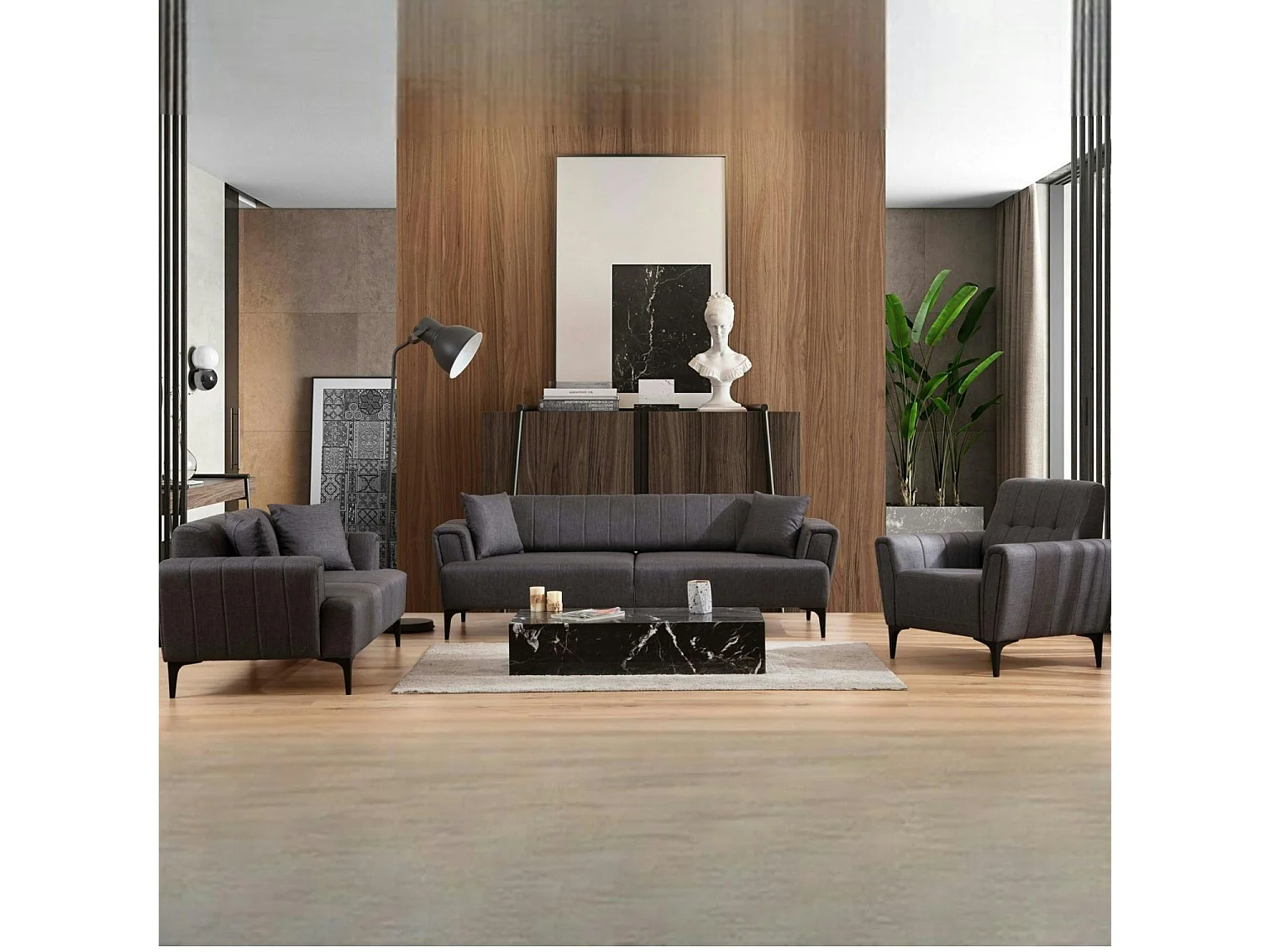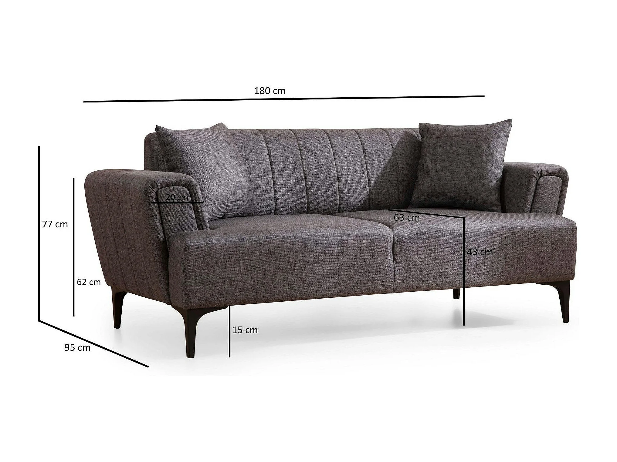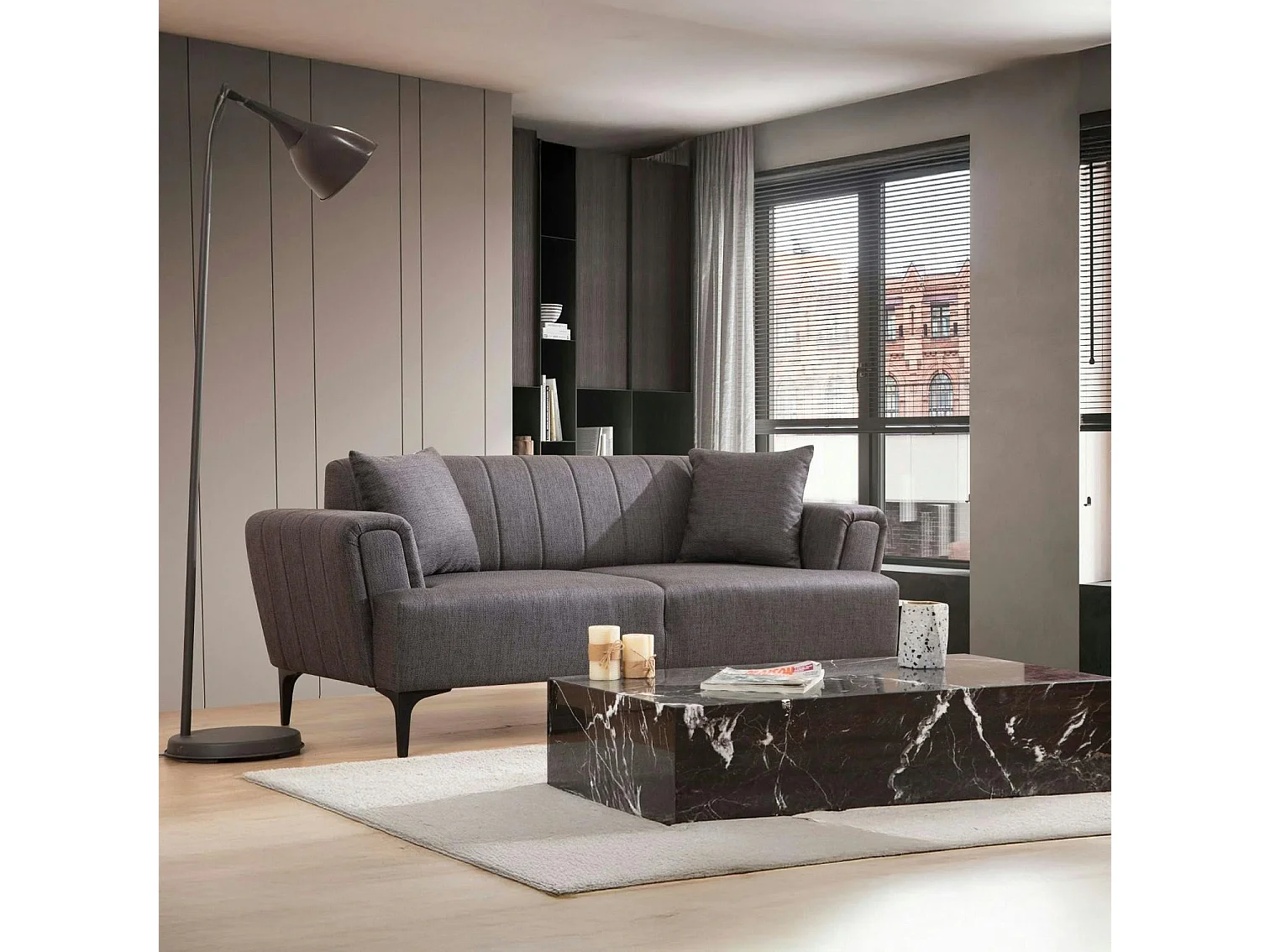 Canapé 2 places anthracite, dossier à coutures verticales LUCCA