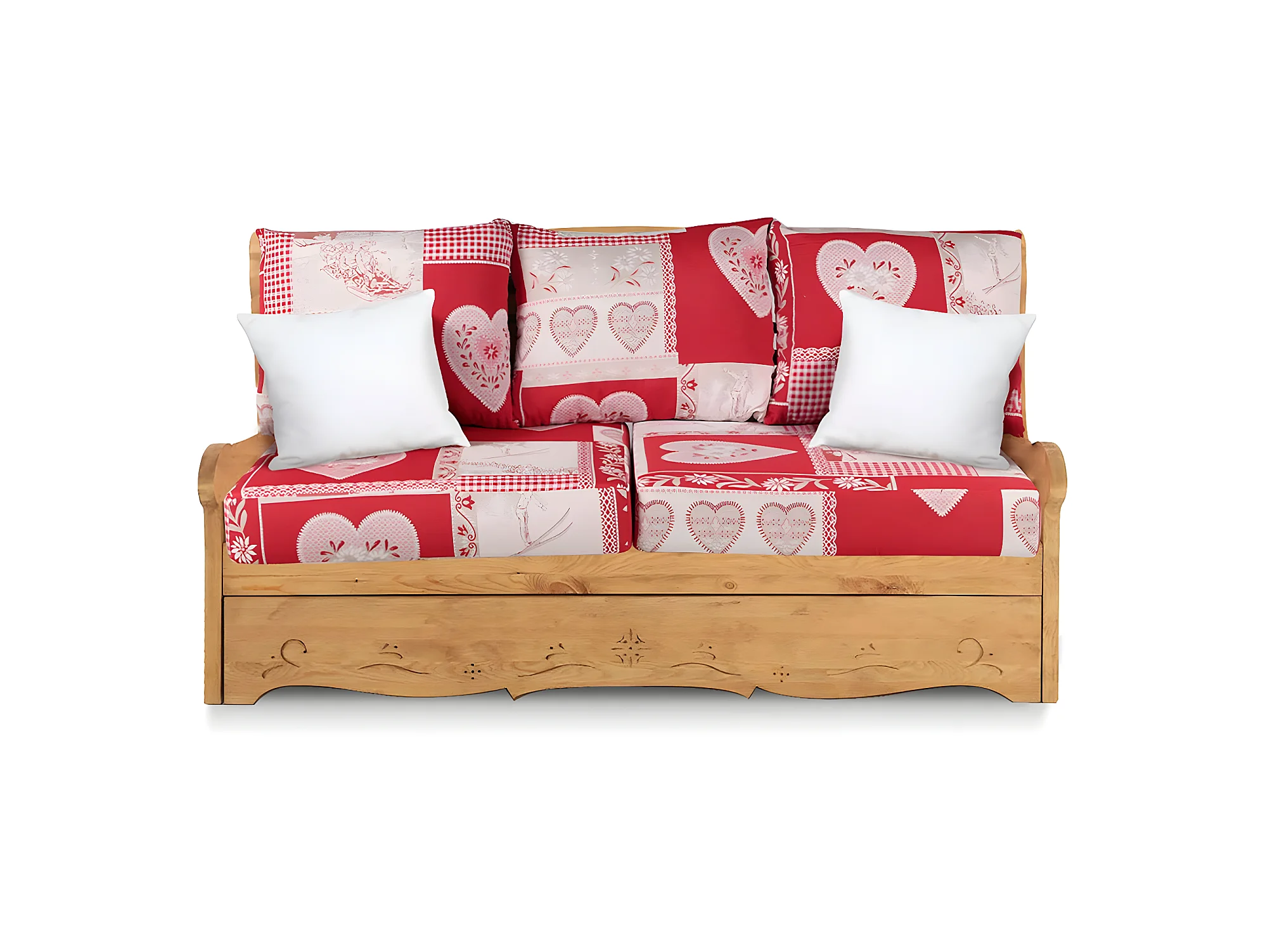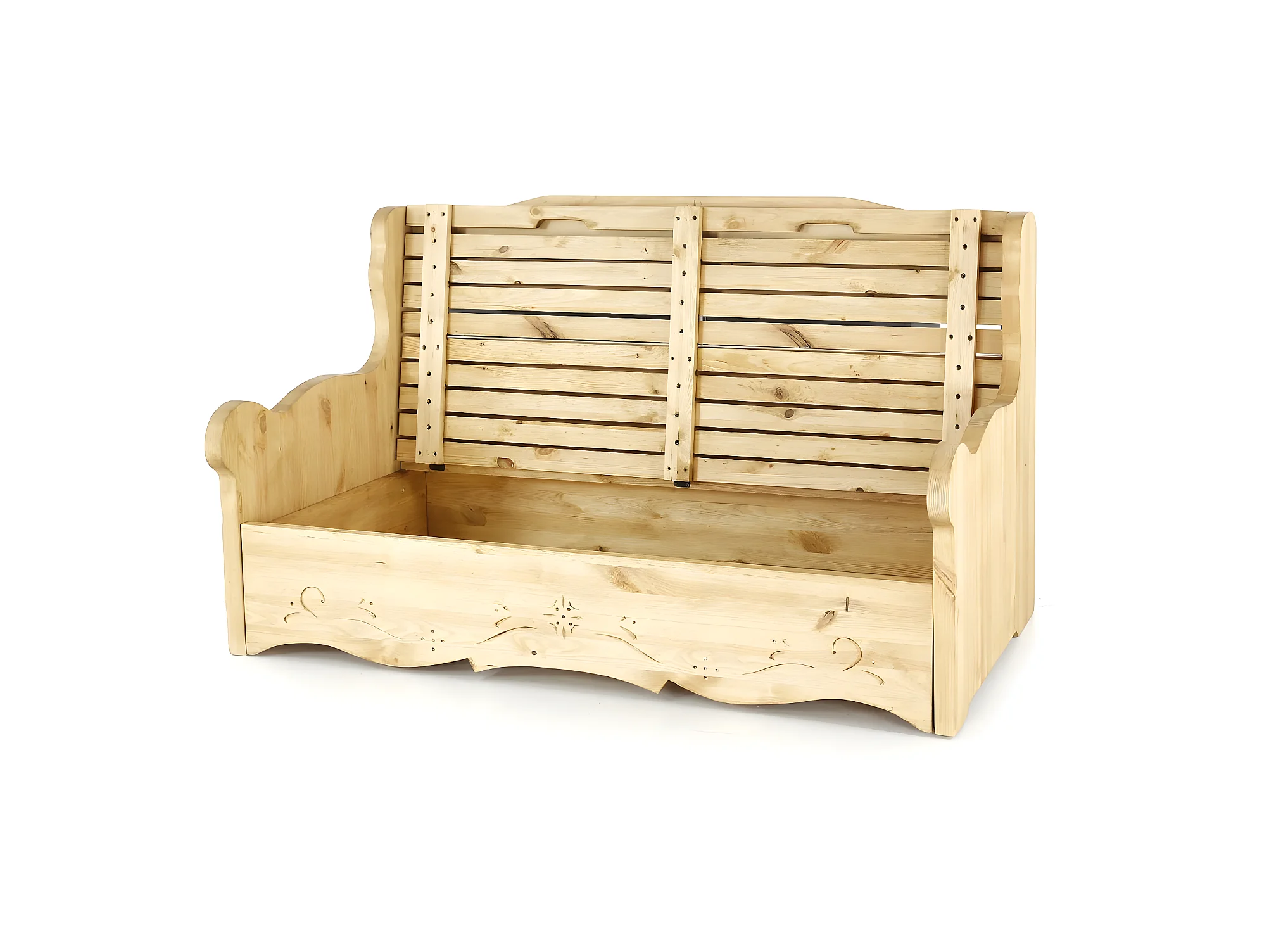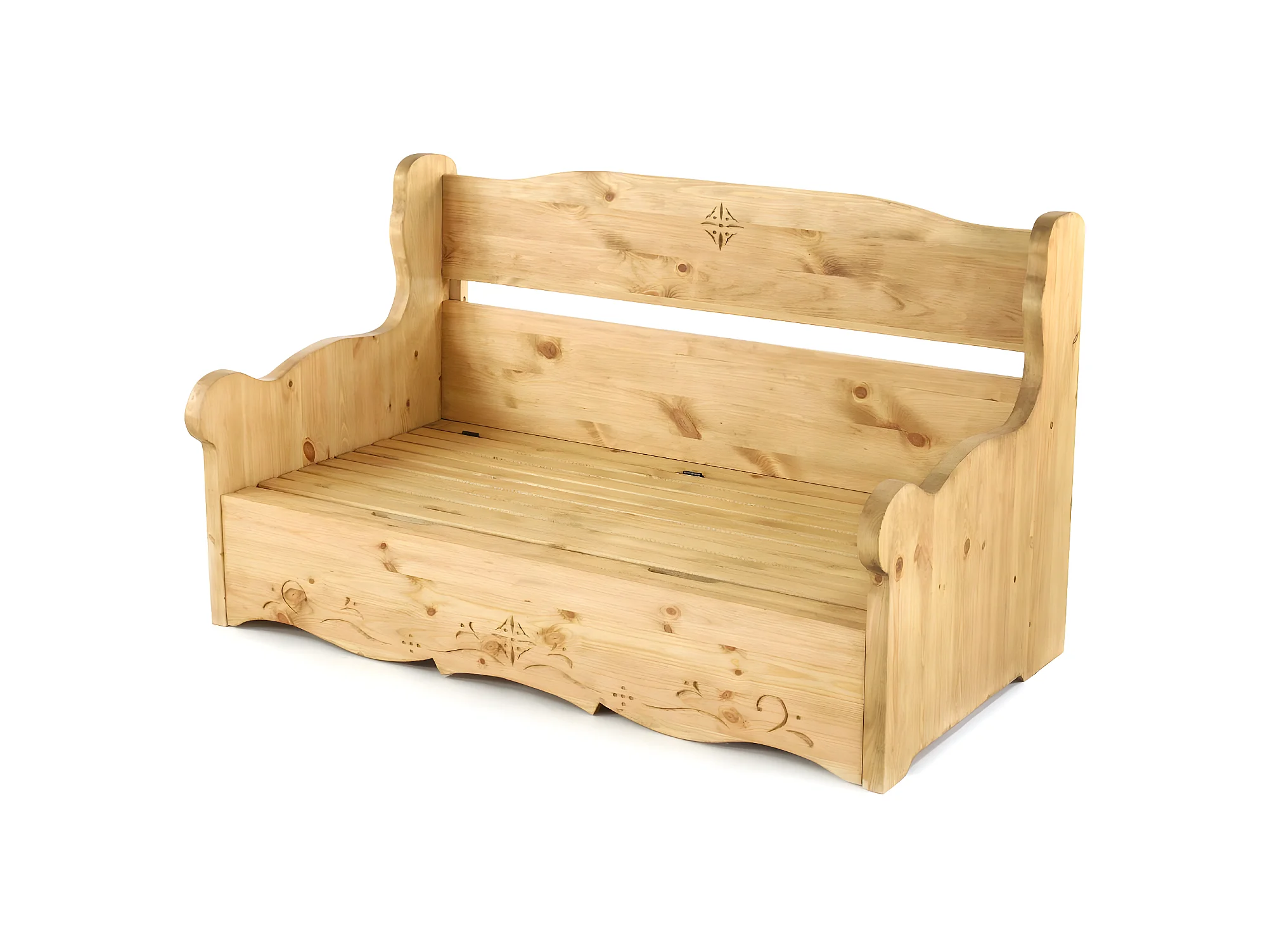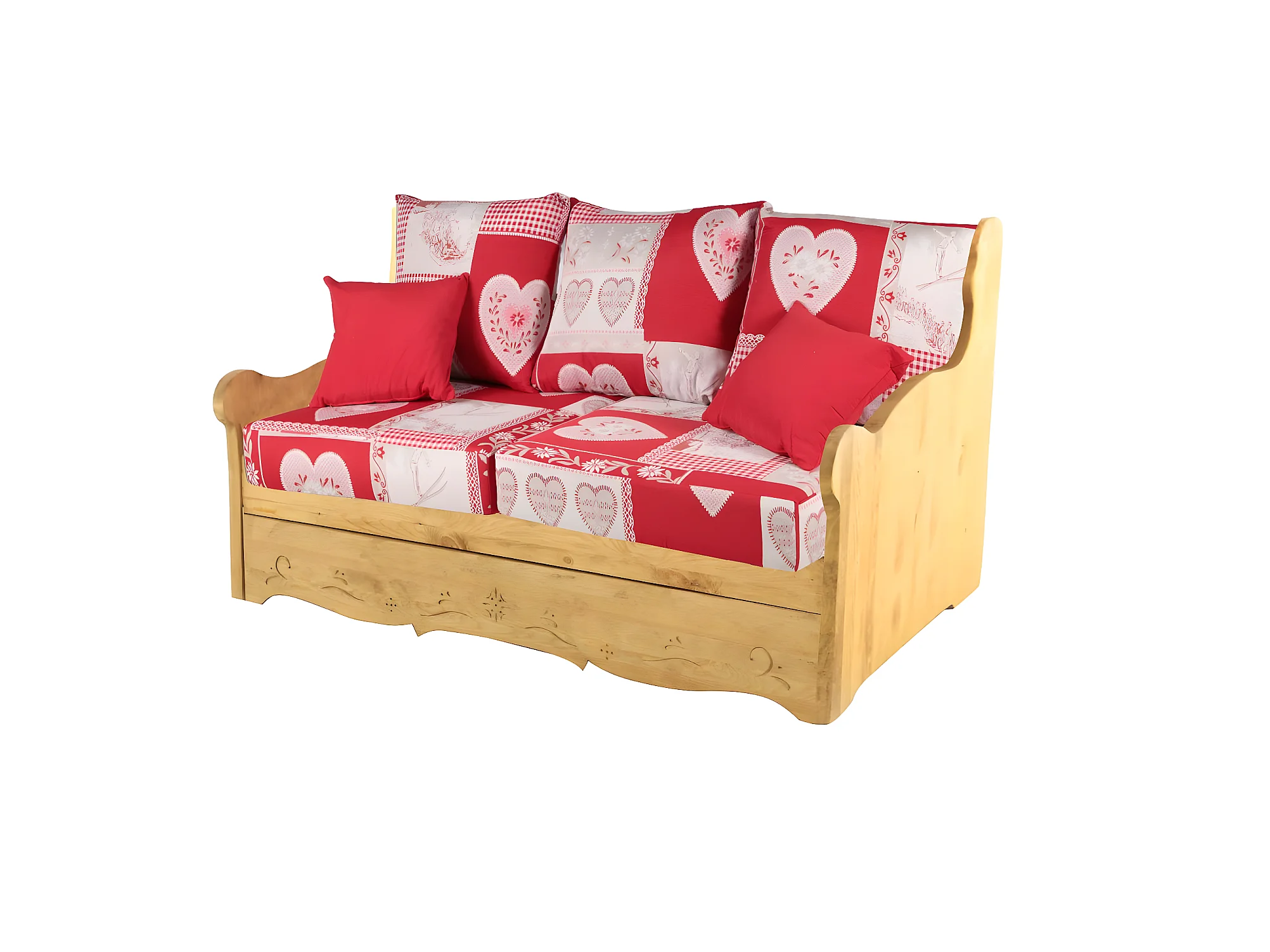 Canapé 2 places avec coffre pin massif sculpté Briançon rouge