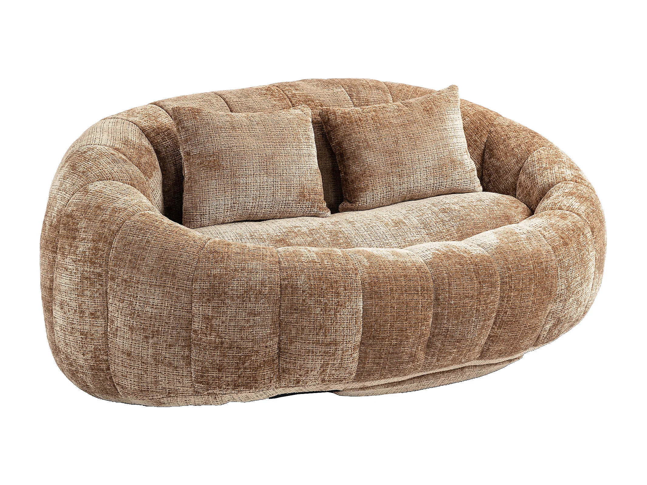 Canapé 2 places avec coussin - Canapé pour adultes et enfants- Tissu chenille café