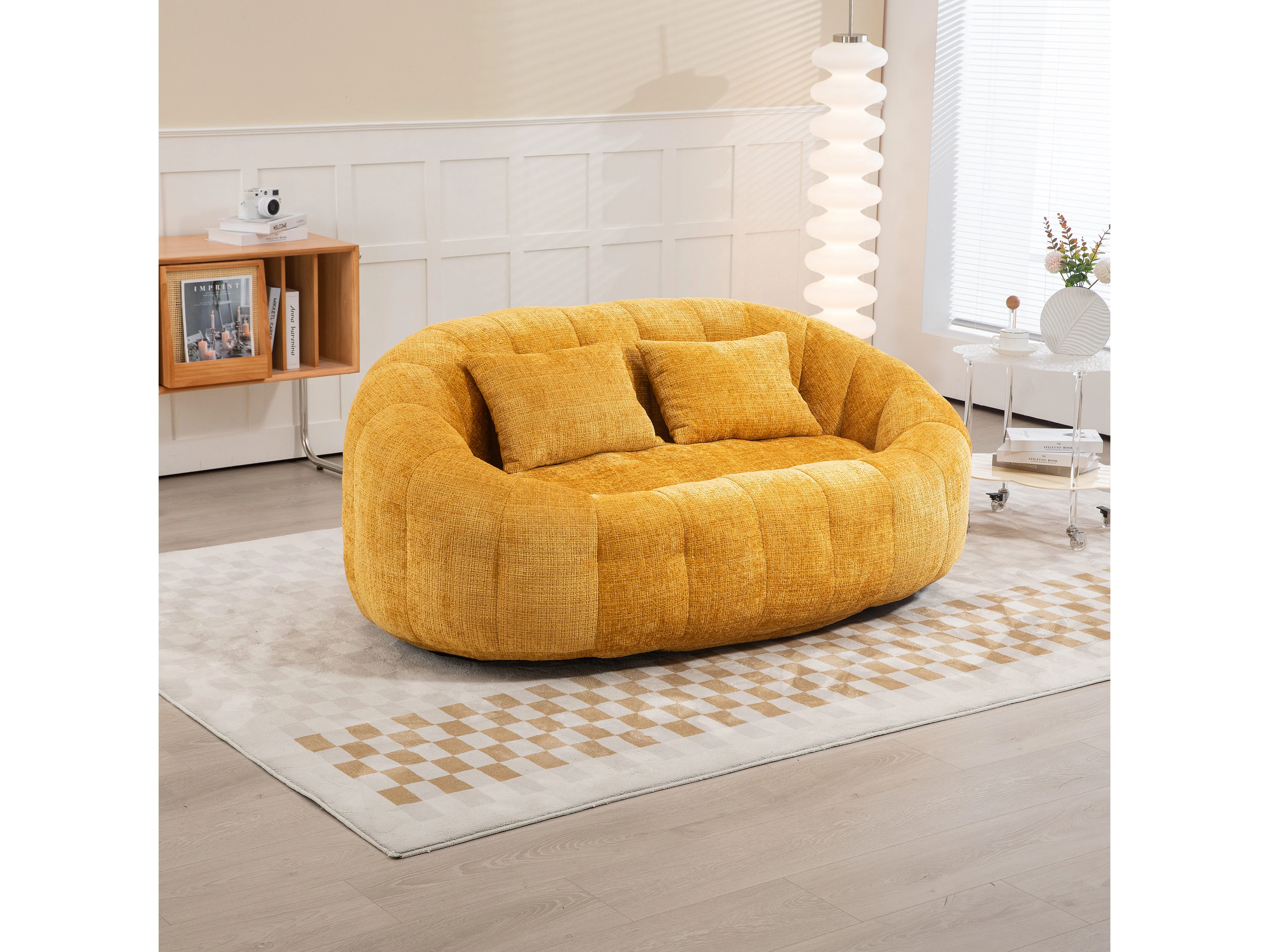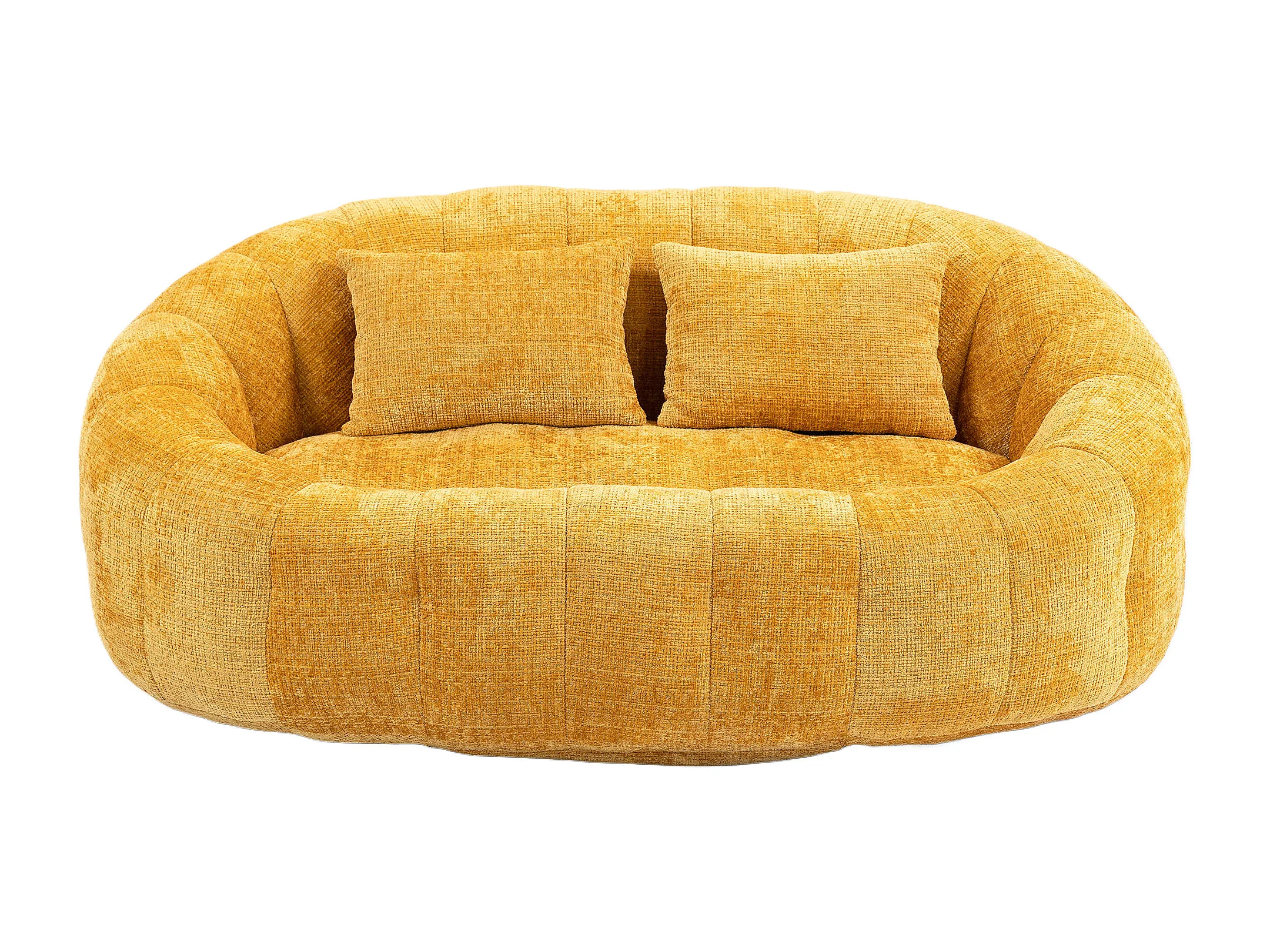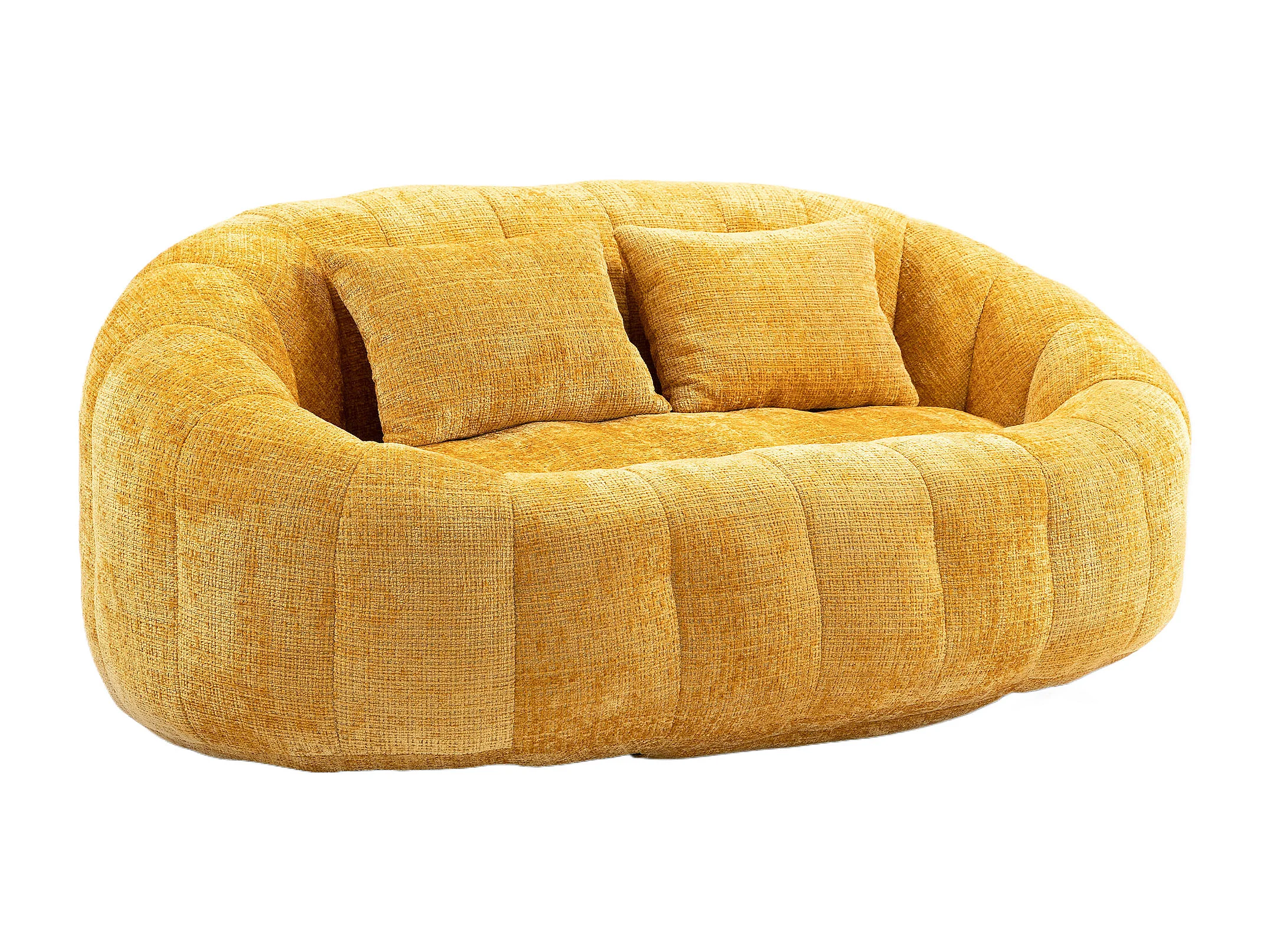 Canapé 2 places avec coussin - Canapé pour adultes et enfants- Tissu chenille jaune