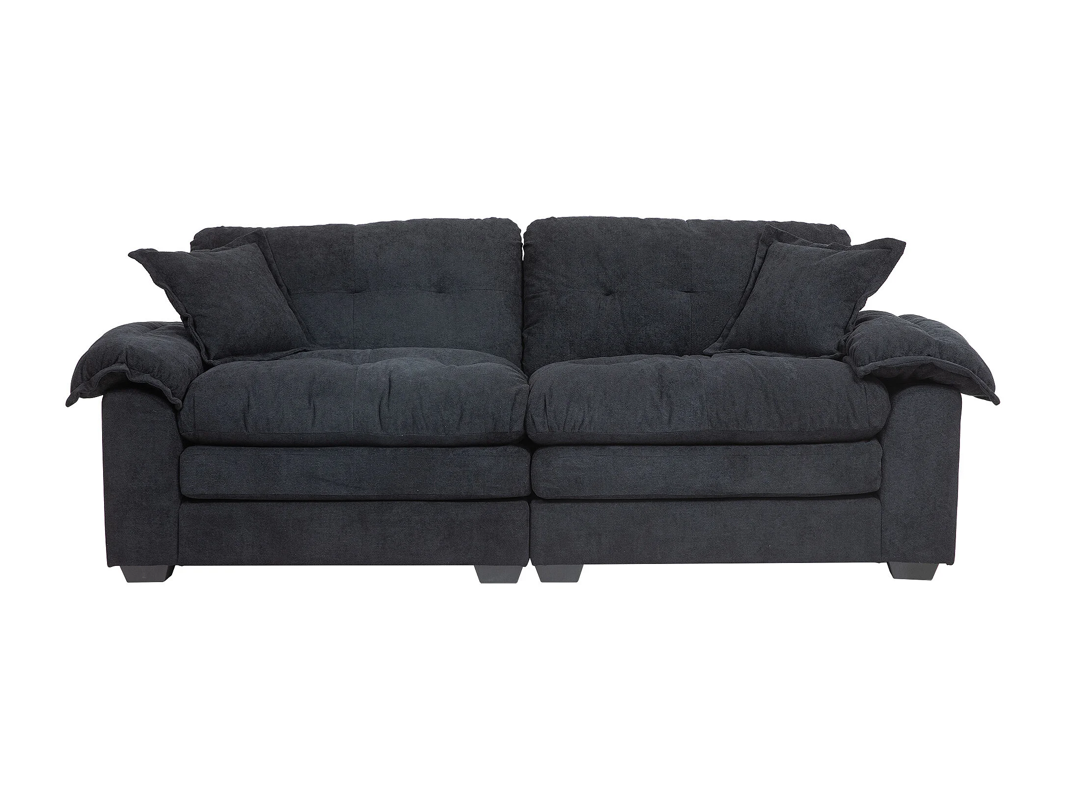 Canapé 2 places avec coussins double couche - Tissu chenille noir