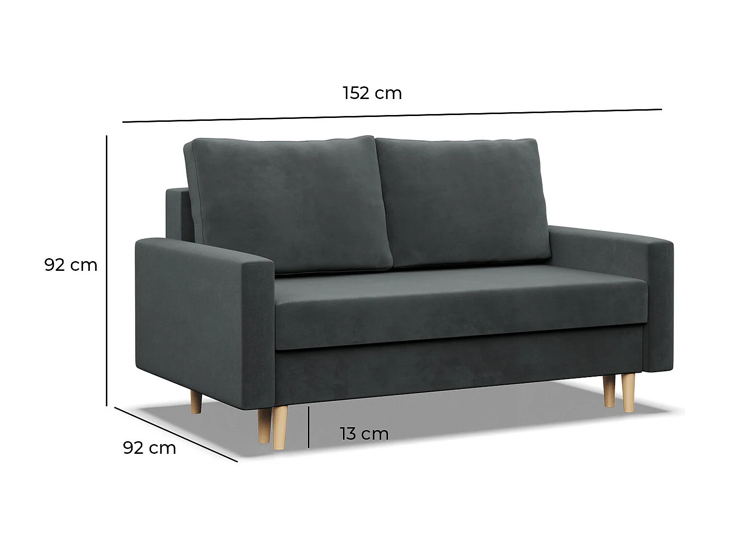 Canapé 2 places avec fonction sommeil, Coussin réversible, Bleu foncé