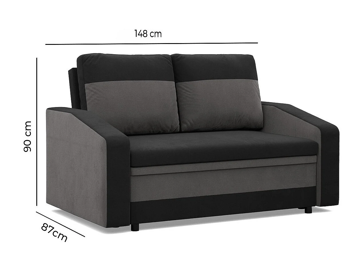 Canapé 2 places avec fonction sommeil, Gris