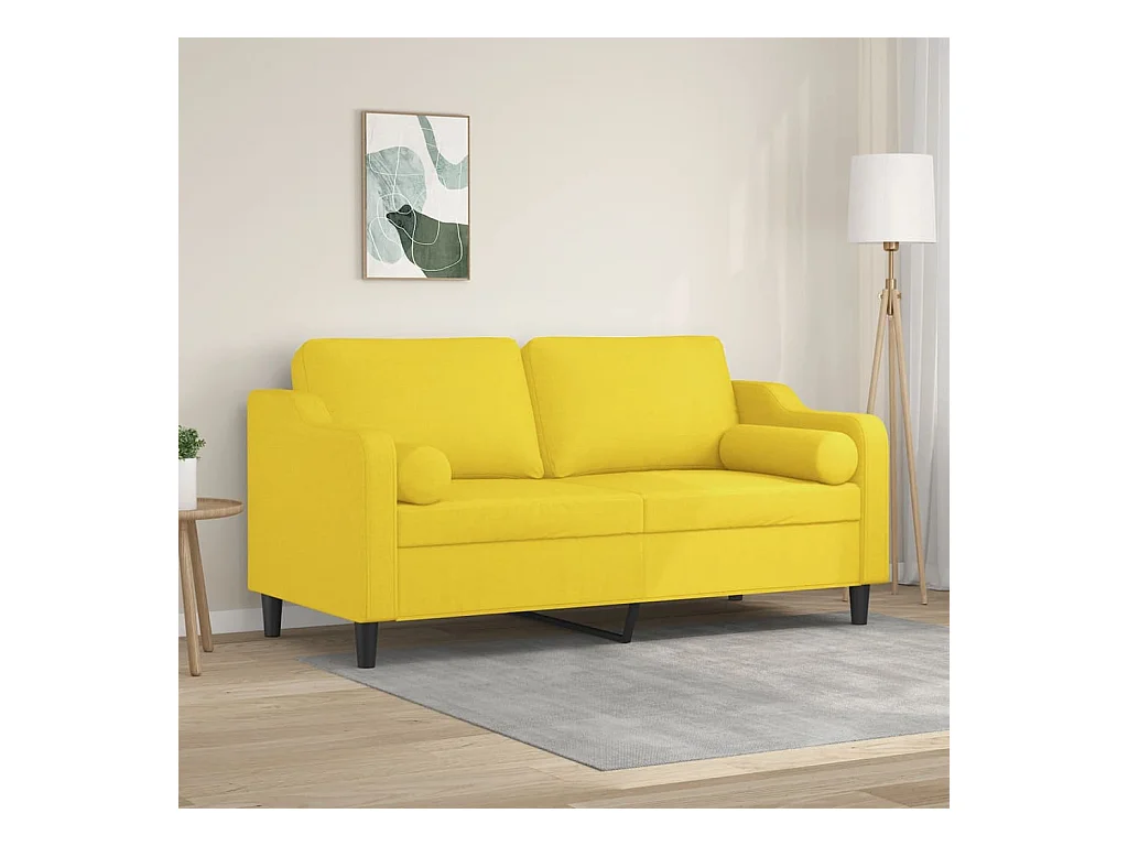 Canapé 2 places avec oreillers jaune clair 140 cm tissu