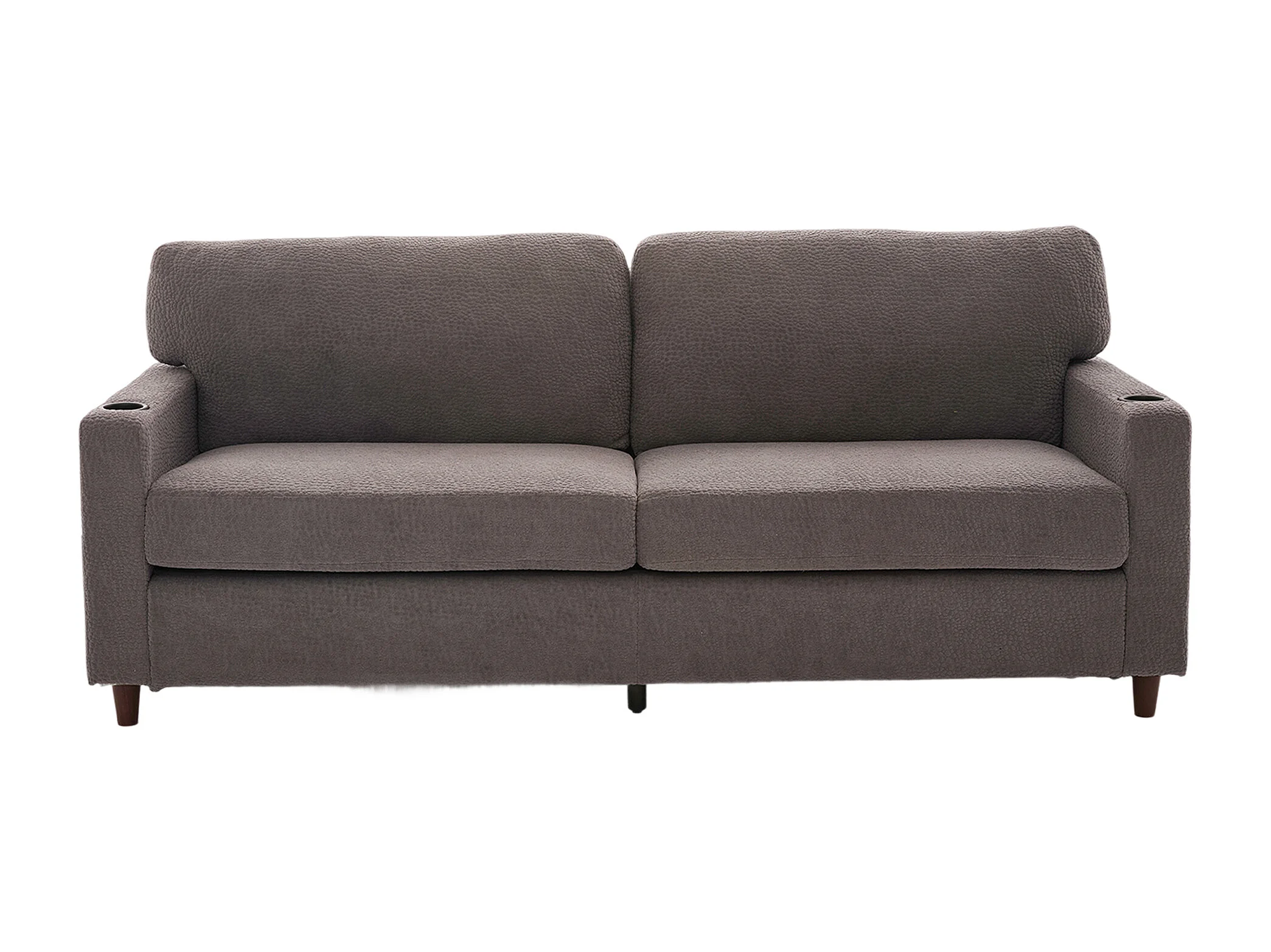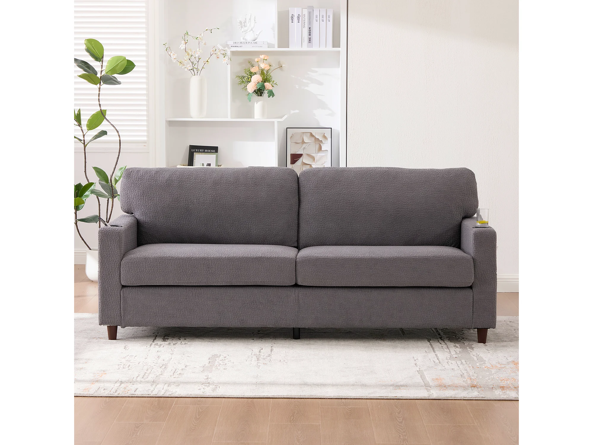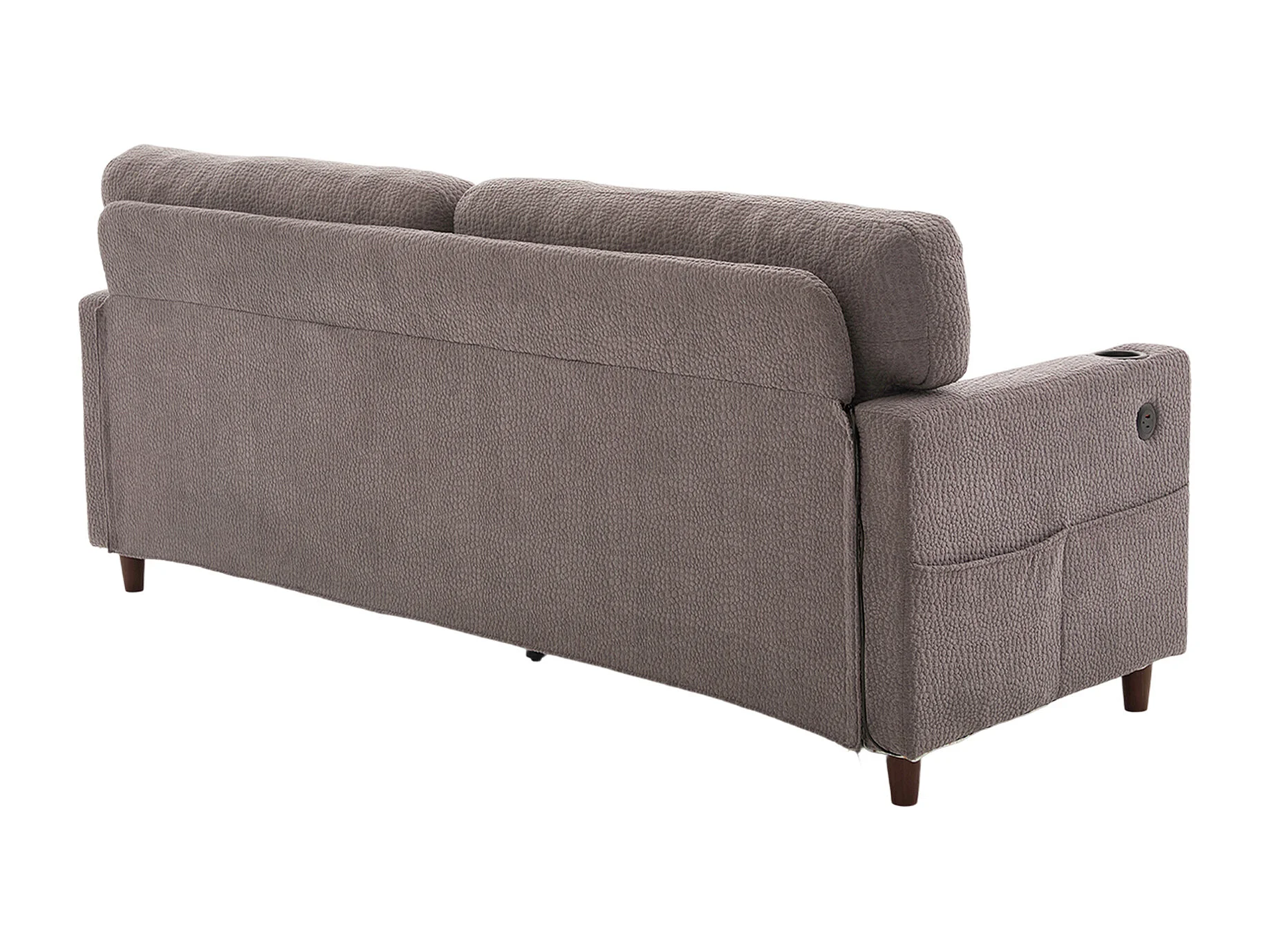 Canapé 2 places avec port USB-C, LED et poches latérales - Tissu chenille - Gris clair