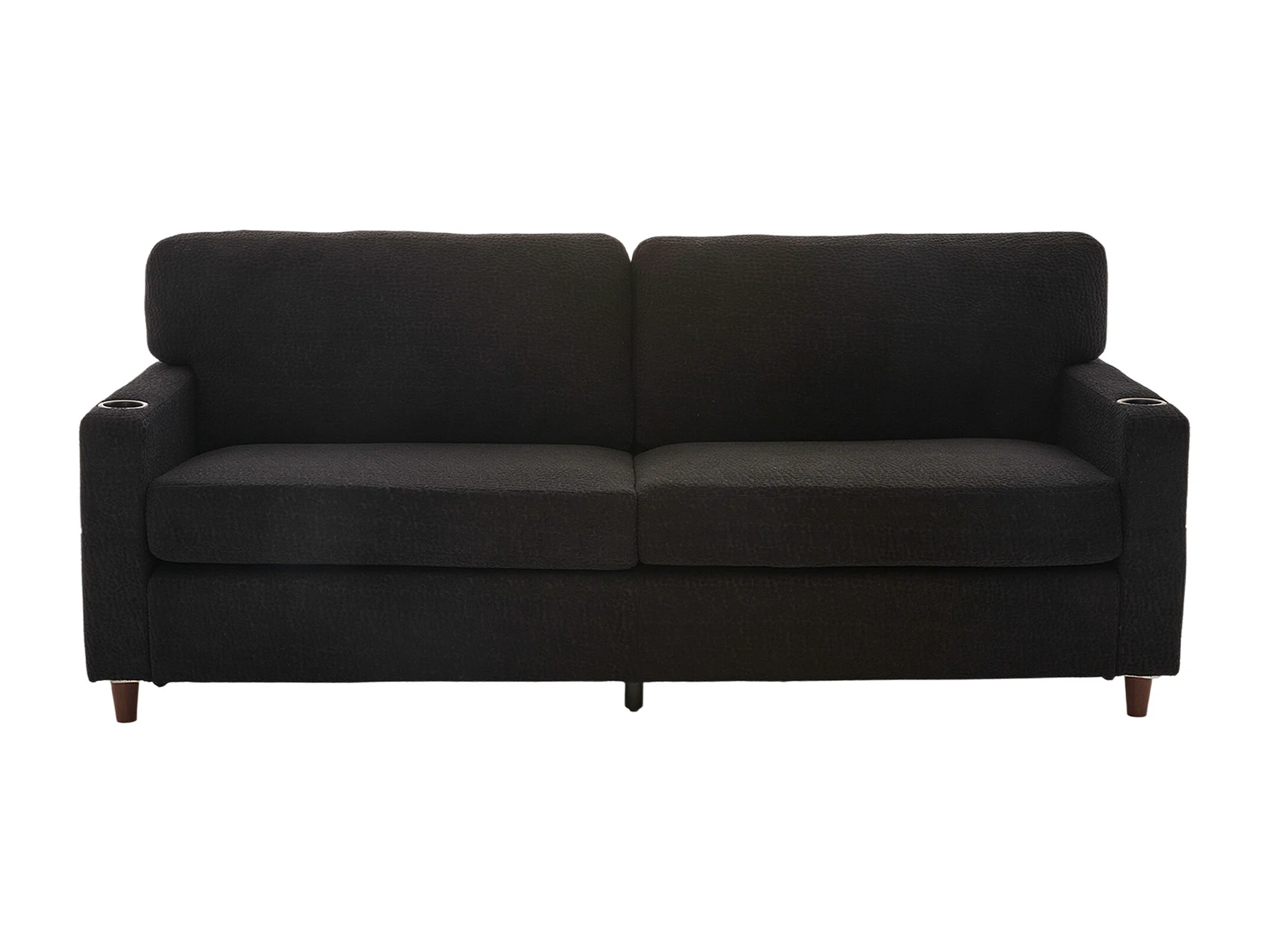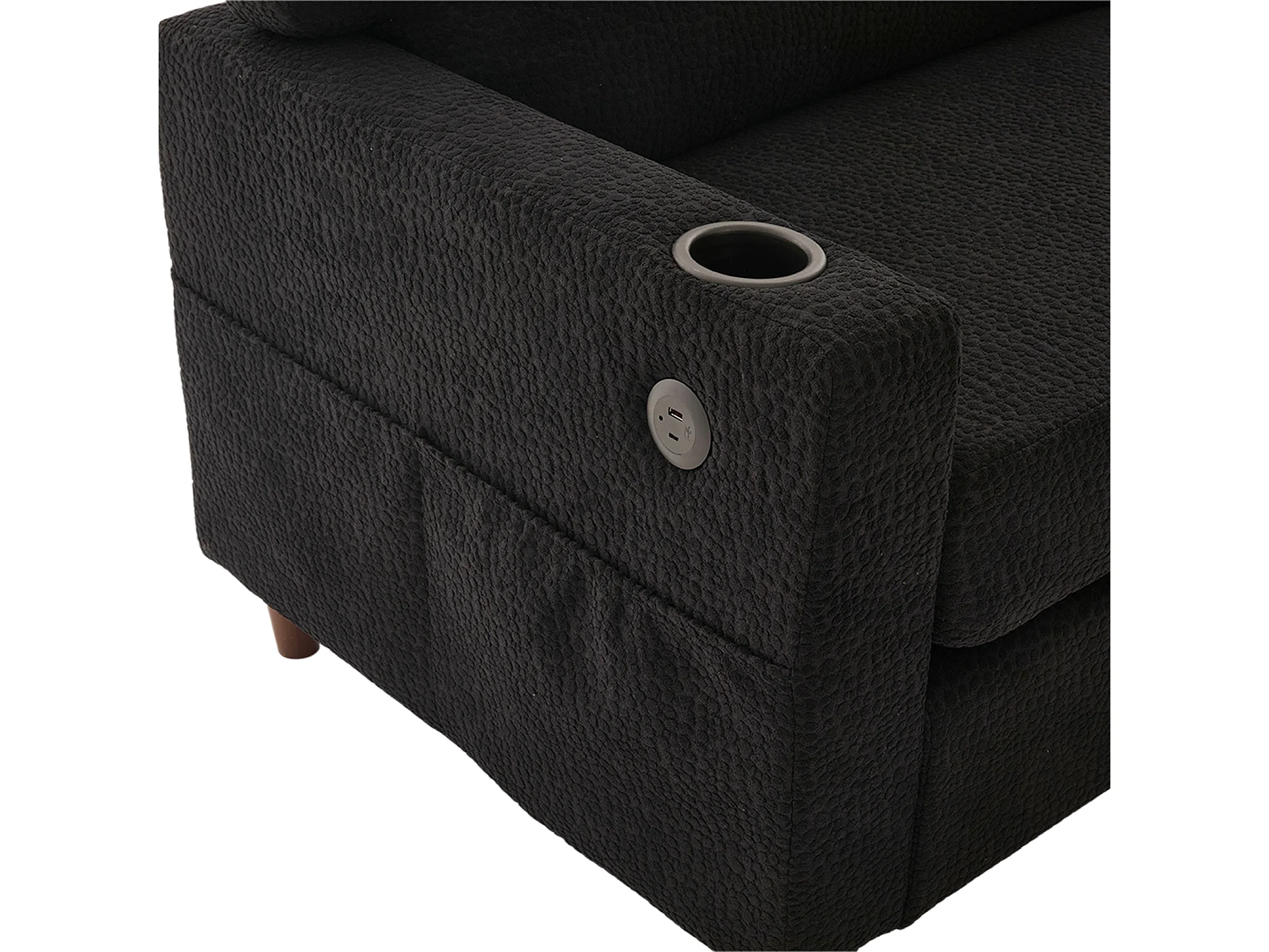 Canapé 2 places avec port USB-C, LED et poches latérales - Tissu chenille - Noir