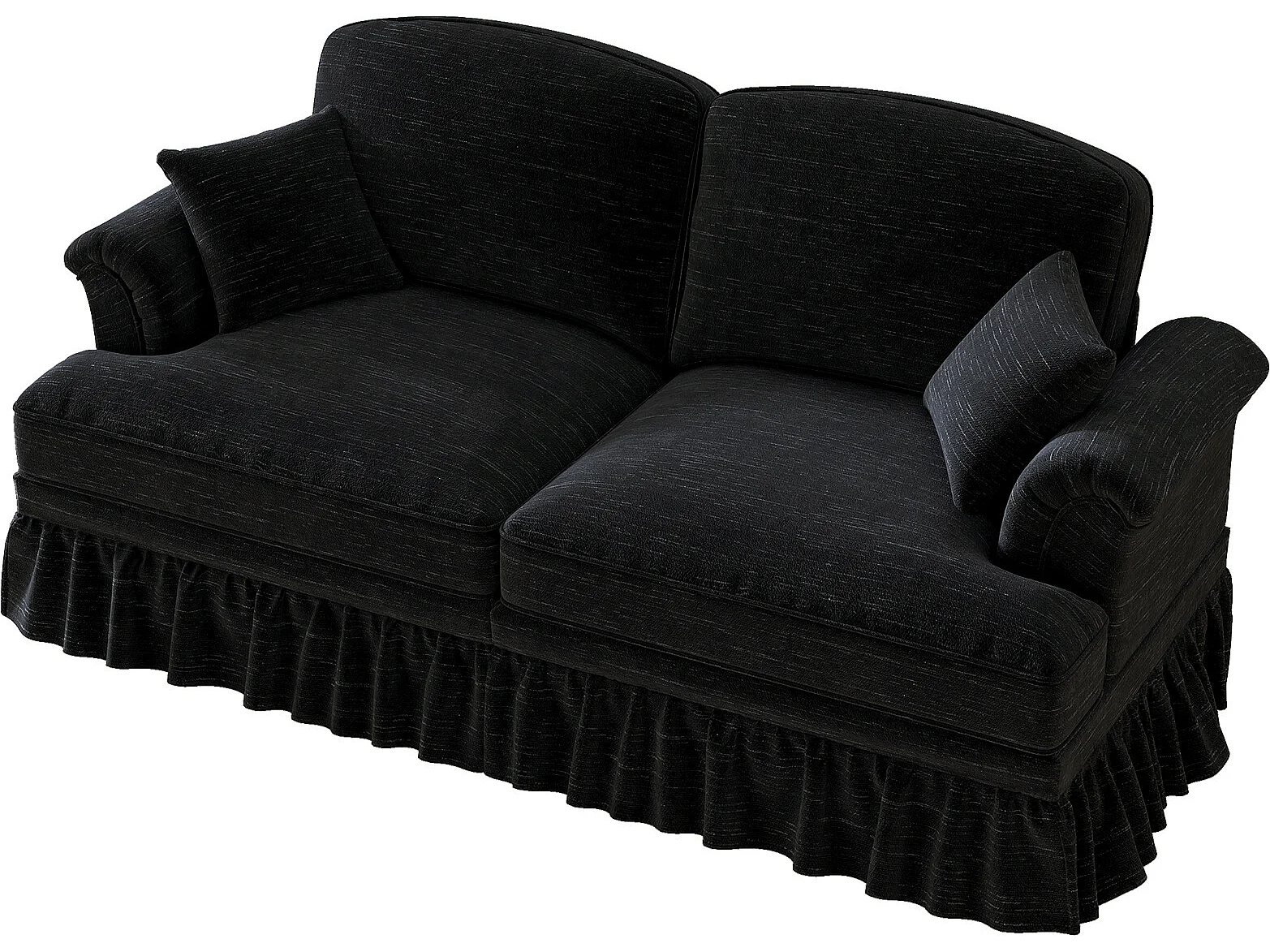 Canapé 2 places avec soutien lombaire et jupe plissée amovible - Tissu chenille -Noir