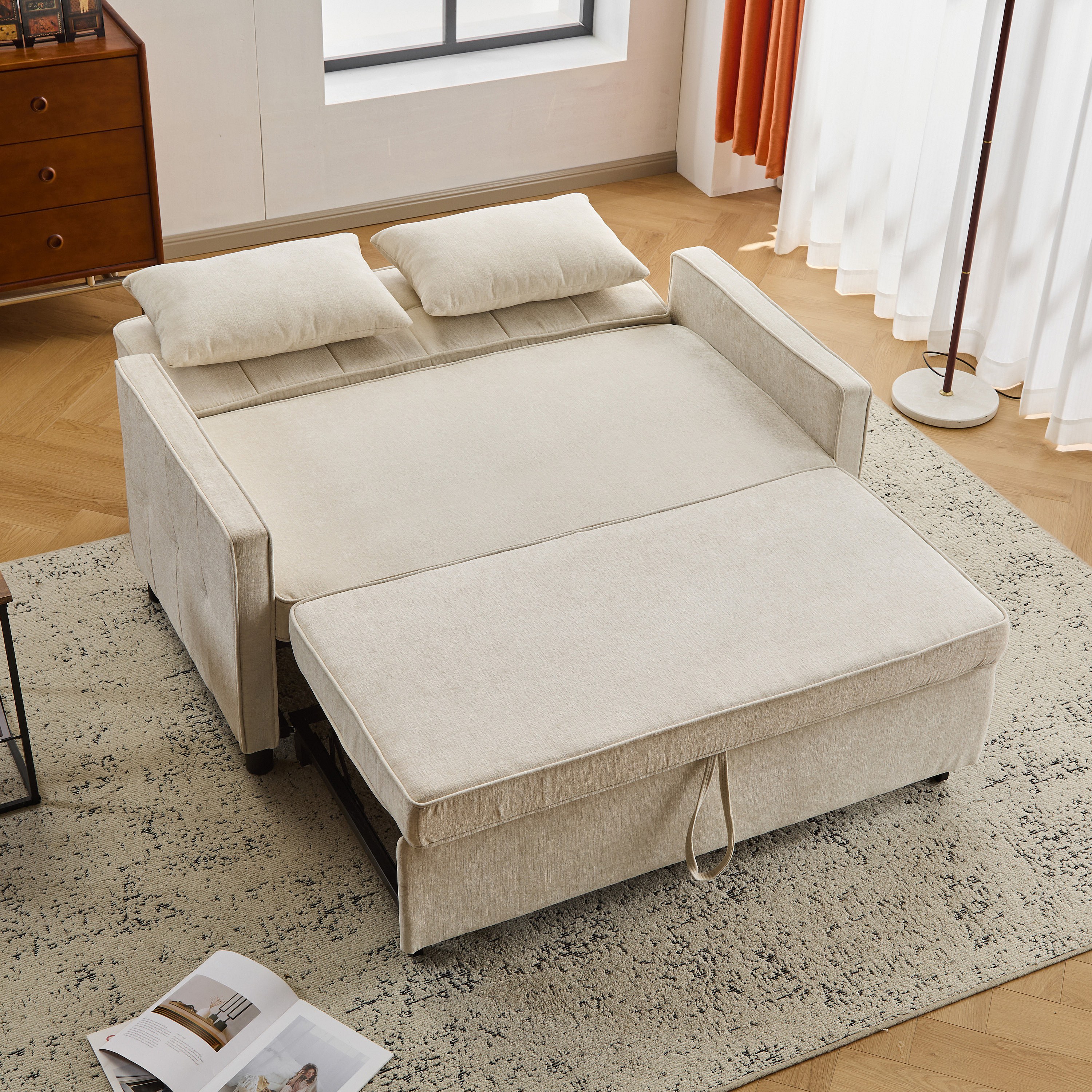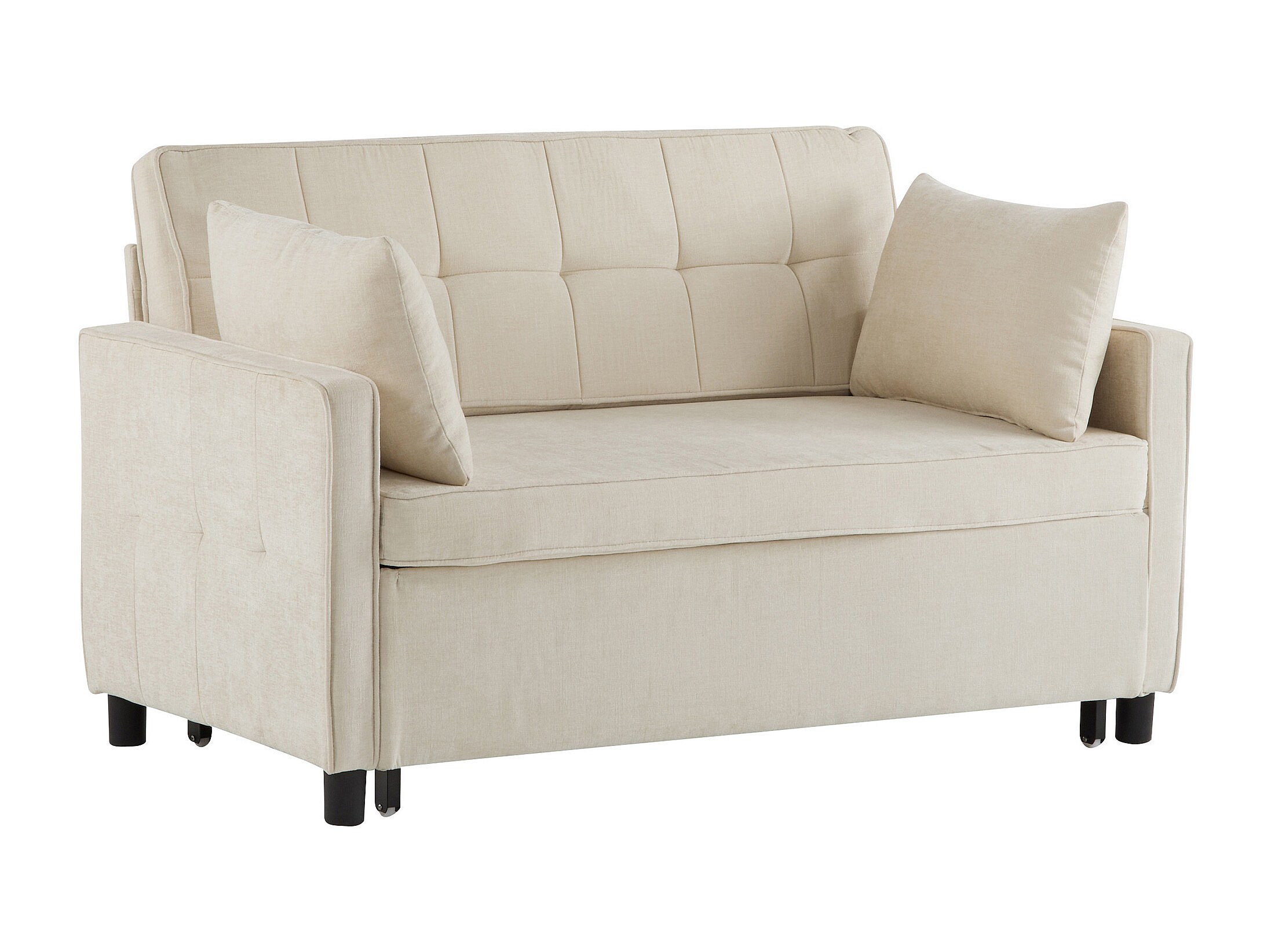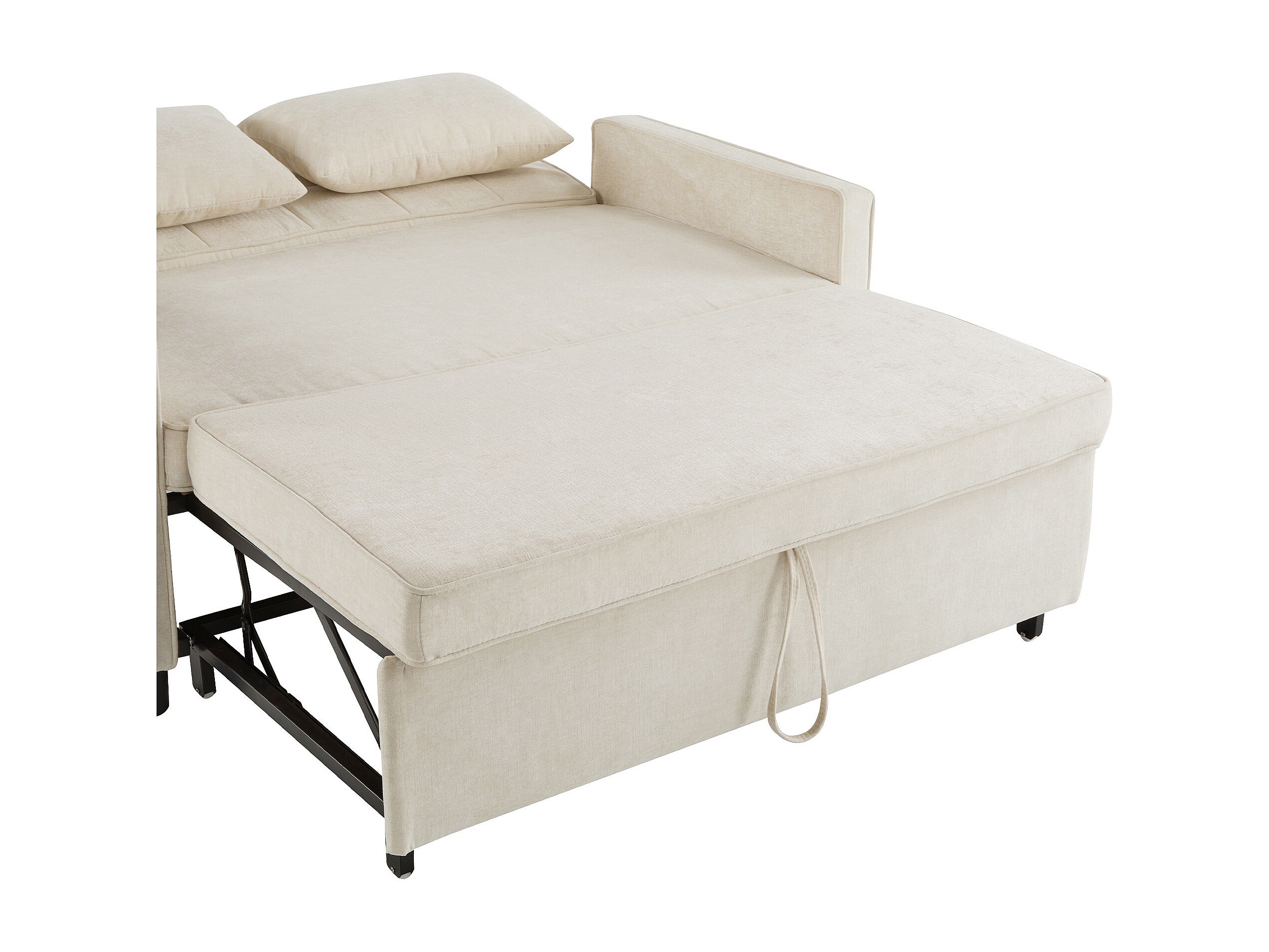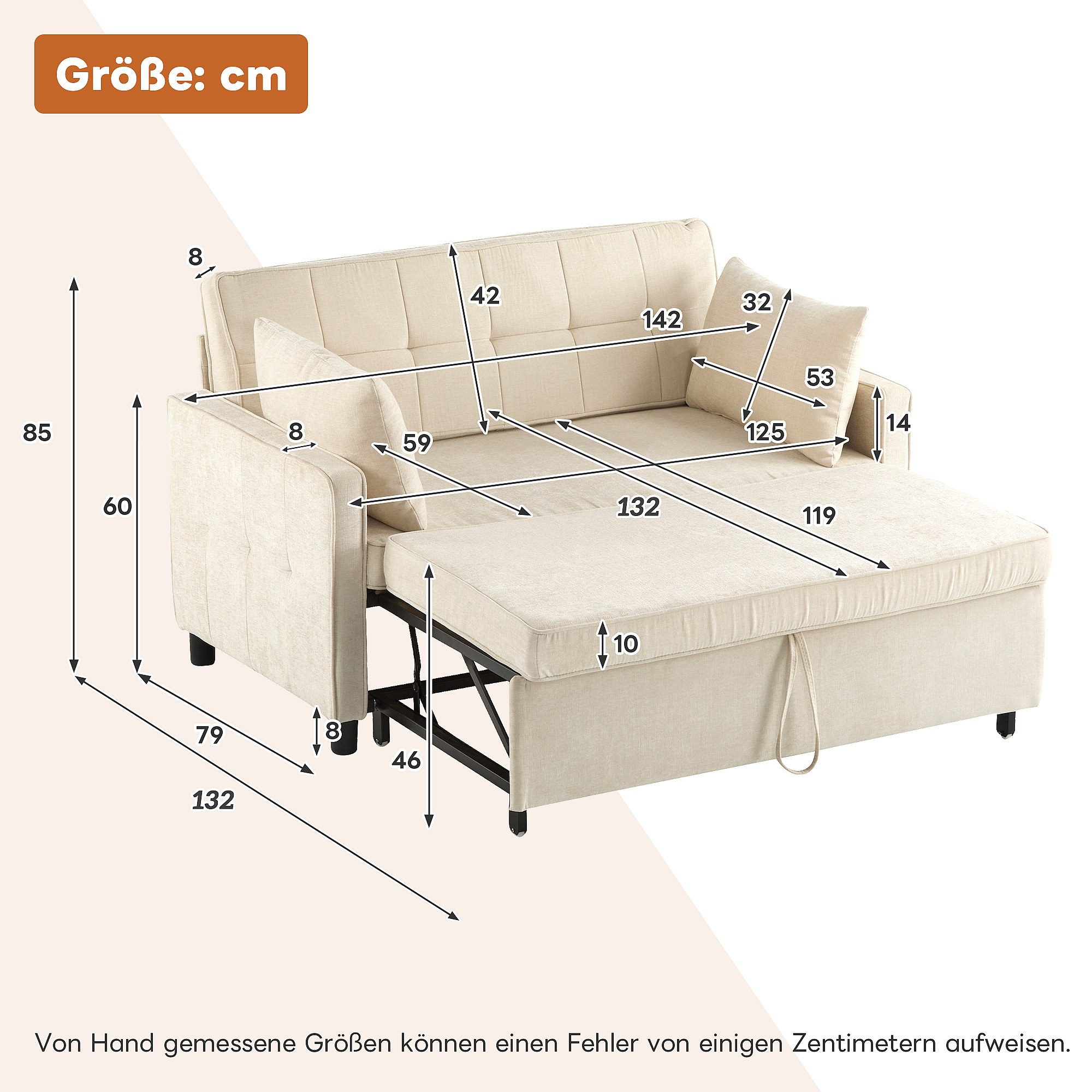 Canapé 2 places beige - Canapé de salon avec dossier réglable et fonction lit gigogne - 2 coussins et accoudoirs - chenille