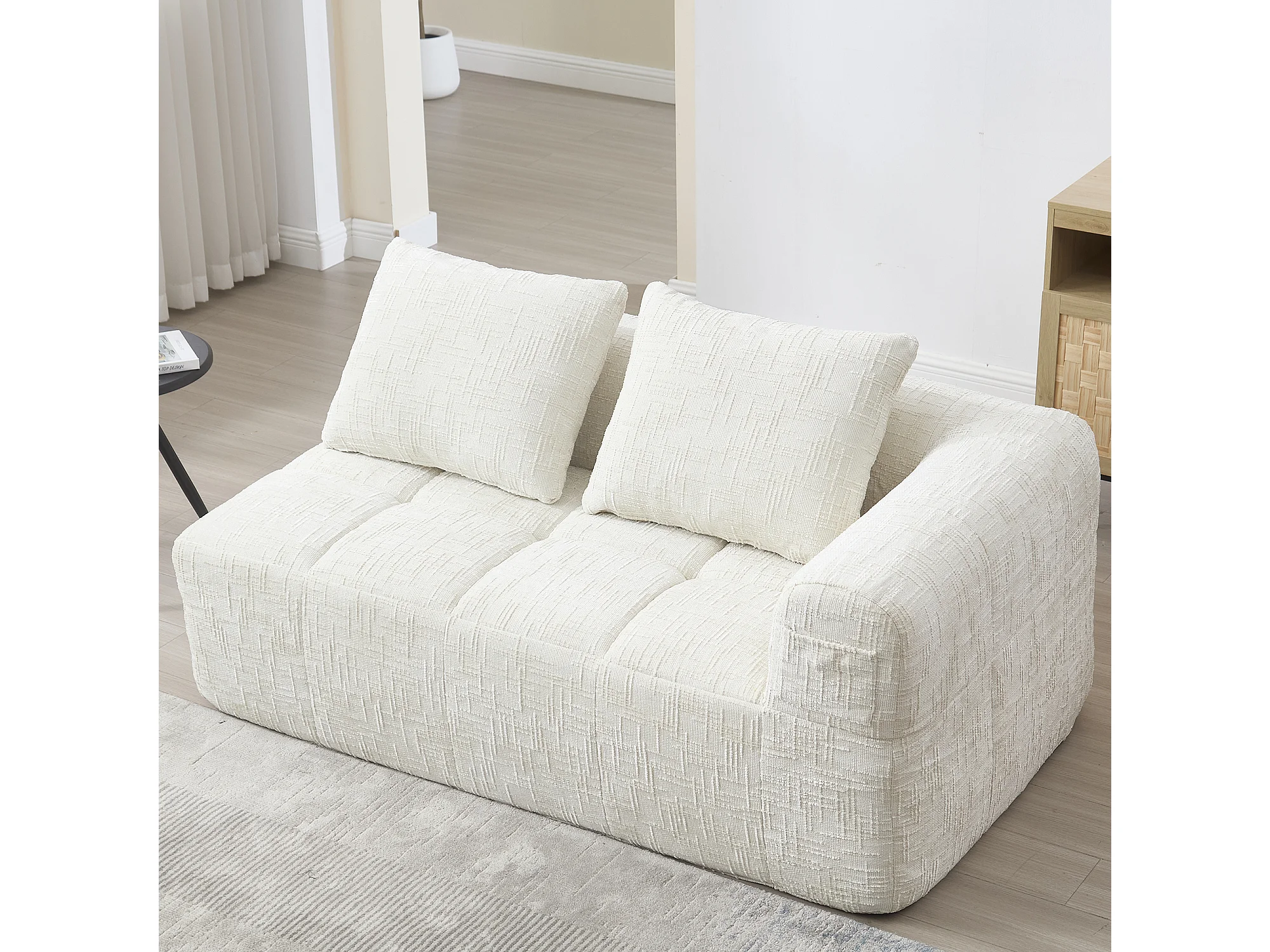Canapé 2 places beige - Canapé droit avec Coussins et Poches de Rangement - motif neige